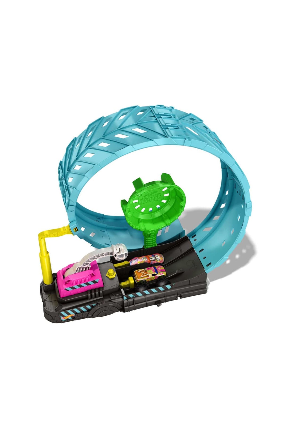 Hot Wheels Monster Trucks Karanlıkta Parlayan Çemberde Yarış Seti HBN02, ışıklar söndüğünde bile heyecanı dorukta tutan epik bir yarış deneyimi sunuyor! Devasa döngü ve karanlıkta parlayan pist elemanlarıyla, çocuklar yan yana yarışarak ödül kupasına ulaşmak için kıyasıya mücadele edecek. Set içeriğinde bulunan Monster Truck ve 1:64 ölçekli yarış arabası da karanlıkta parlayarak gece yarışlarını daha da etkileyici hale getiriyor. Hot Wheels Monster Trucks Karanlıkta Parlayan Çemberde Yarış Seti HBN02 ile gece yarışlarının heyecanını keşfedin ve destansı çarpışmalara katılın!