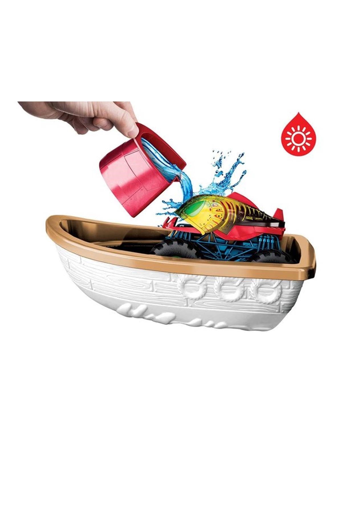 Hot Wheels Monster Trucks Renk Değiştiren Araçlar Timsahtan Kaçış Oyun Seti, çocuklara aksiyon ve sürpriz dolu bir yarış deneyimi sunuyor. Fırlatıcıyı kullanarak Color Shifters Piran-ahhh aracını timsahın buzlu suyla dolu ağzına gönderin ve anında renk değiştirme etkisini izleyin. Daha sonra, ılık su dolu tekneye yönlendirerek aracın tekrar renk değiştirmesini sağlayabilirsiniz.