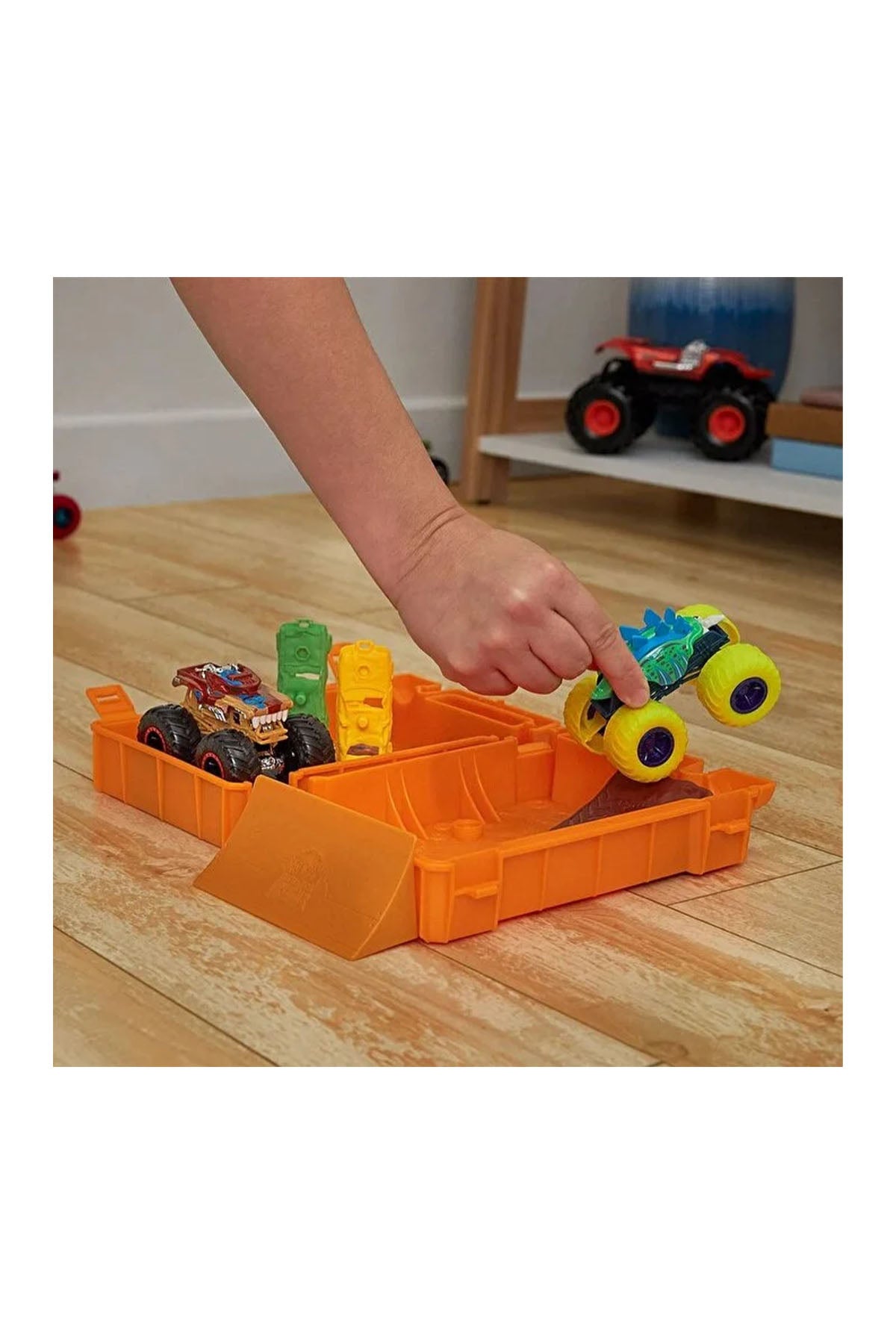 Hot Wheels Monster Trucks Taşınabilir Oyun Seti HXT04, dev rampalar, engeller ve etkileyici Monster Trucks gösterileriyle dolu heyecan verici bir oyun deneyimi sunuyor. Benzin bidonu şeklindeki kompakt tasarımı sayesinde hem evde hem de dış mekanda rahatça taşınabilir ve her yerde eğlence dolu oyunlar oynanabilir. Çocuklar, Motosaurus Monster Truck’ı asansöre bindirerek onarım yapabilir, ardından rampadan hızla aşağı inip çarpışmalar gerçekleştirebilir. Setin içinde iki çarpışma arabası, rampalar ve özel engeller bulunur, böylece macera dolu gösteriler oluşturulabilir. Hot Wheels Monster Trucks Taşınabilir Oyun Seti HXT04 ile çocuklar, her yerde Monster Trucks dünyasının heyecan verici çarpışmalarına ve akrobasi hareketlerine katılabilecek!