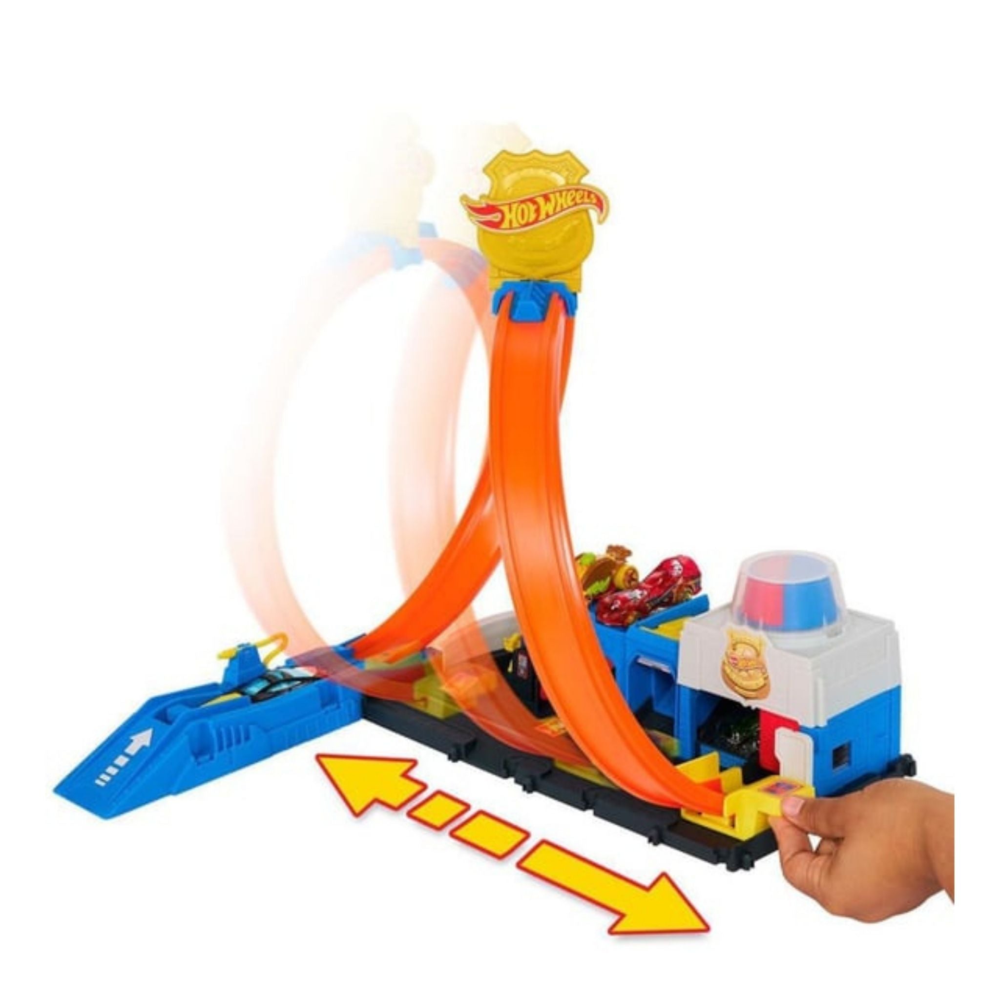 Hot Wheels Polis İstasyonu Oyun Seti, ayarlanabilir pisti sayesinde dört farklı yarış ve akrobasi seçeneği sunarak heyecan dolu bir deneyim yaşatıyor. 1:64 ölçekli metal oyuncak polis arabasıyla maceraya hazır olun!