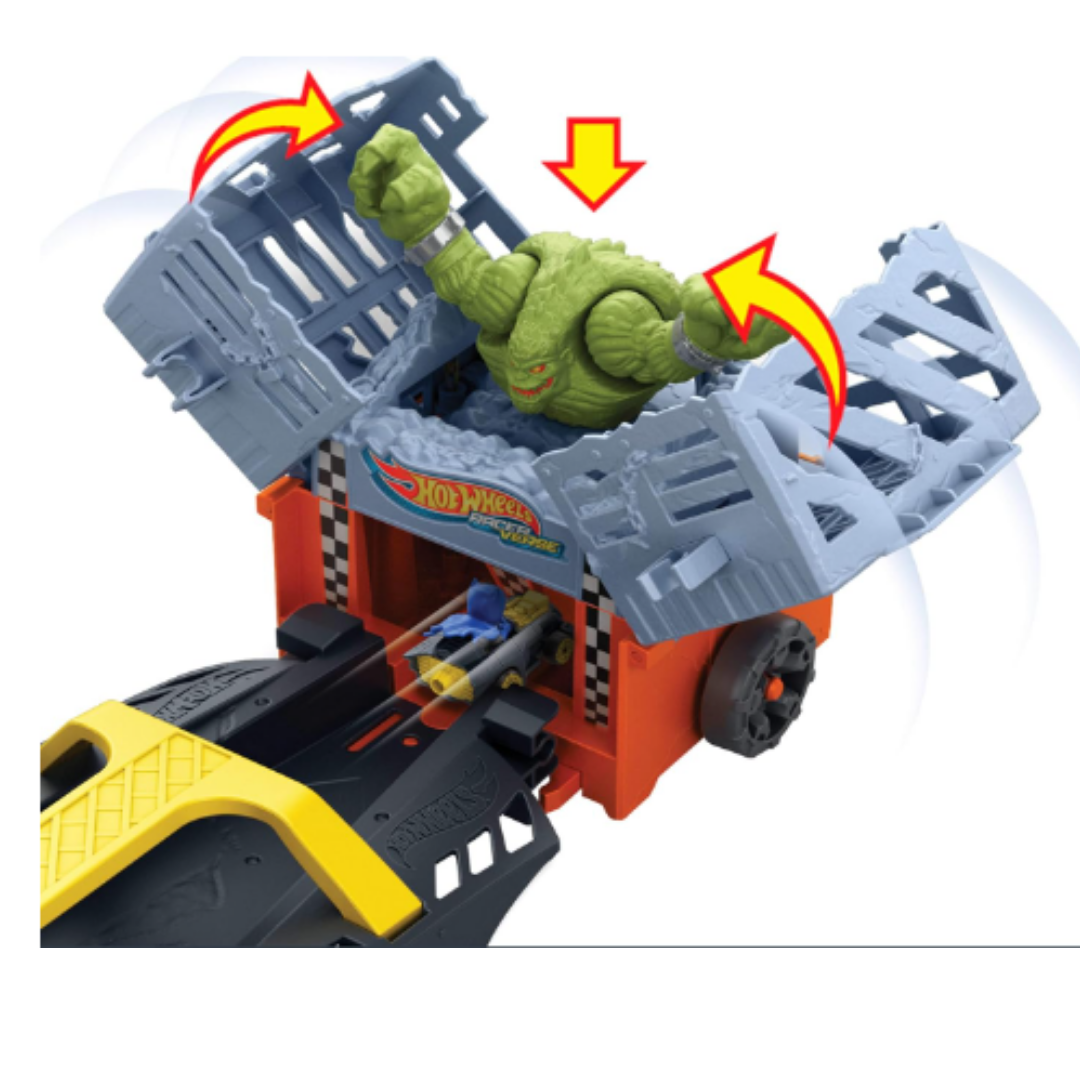 Dönüşebilen Tır: Batman'dan ilham alan grafiklere sahip büyük tır, açıldığında üç şeritli bir yarış pistine dönüşür. Alt kısmında Hot Wheels RacerVerse araçlarını saklama imkânı sunar.