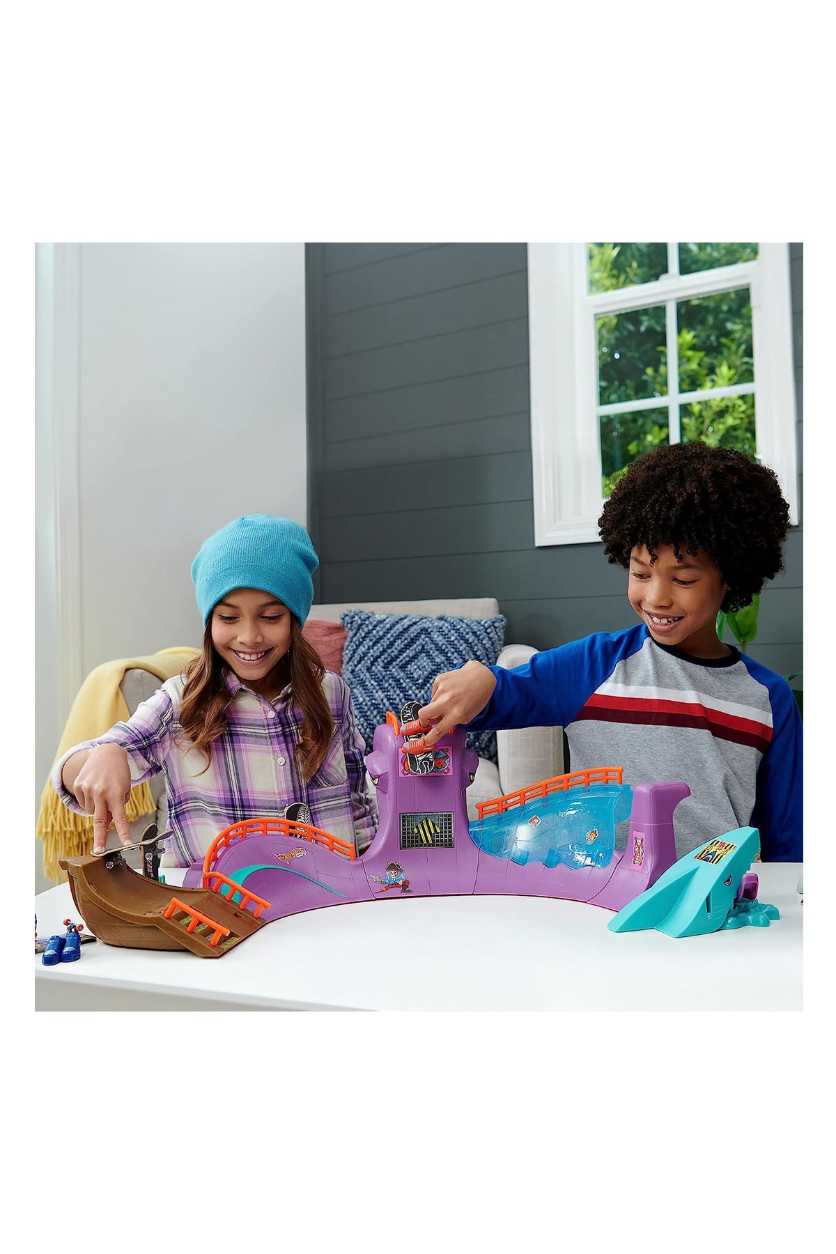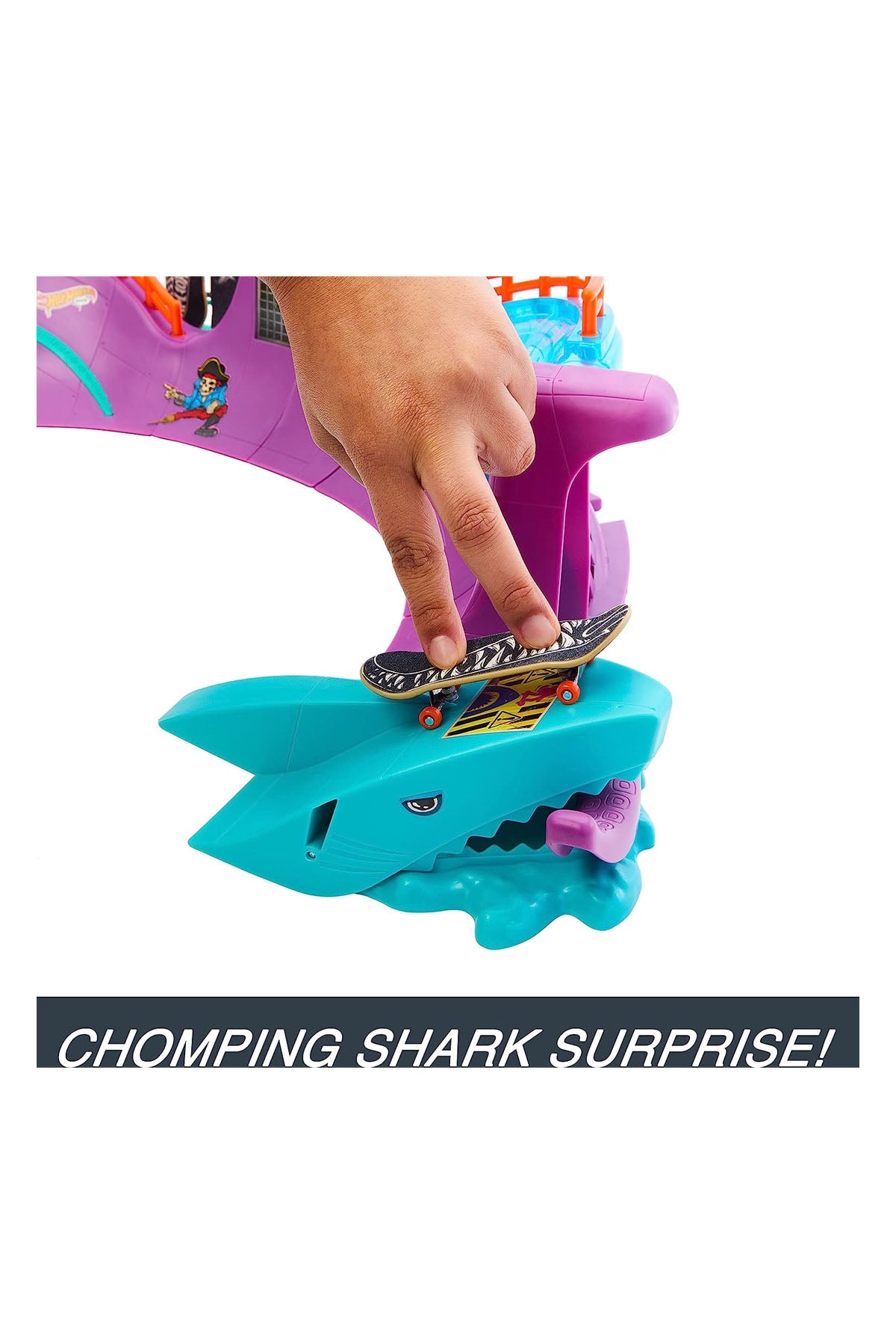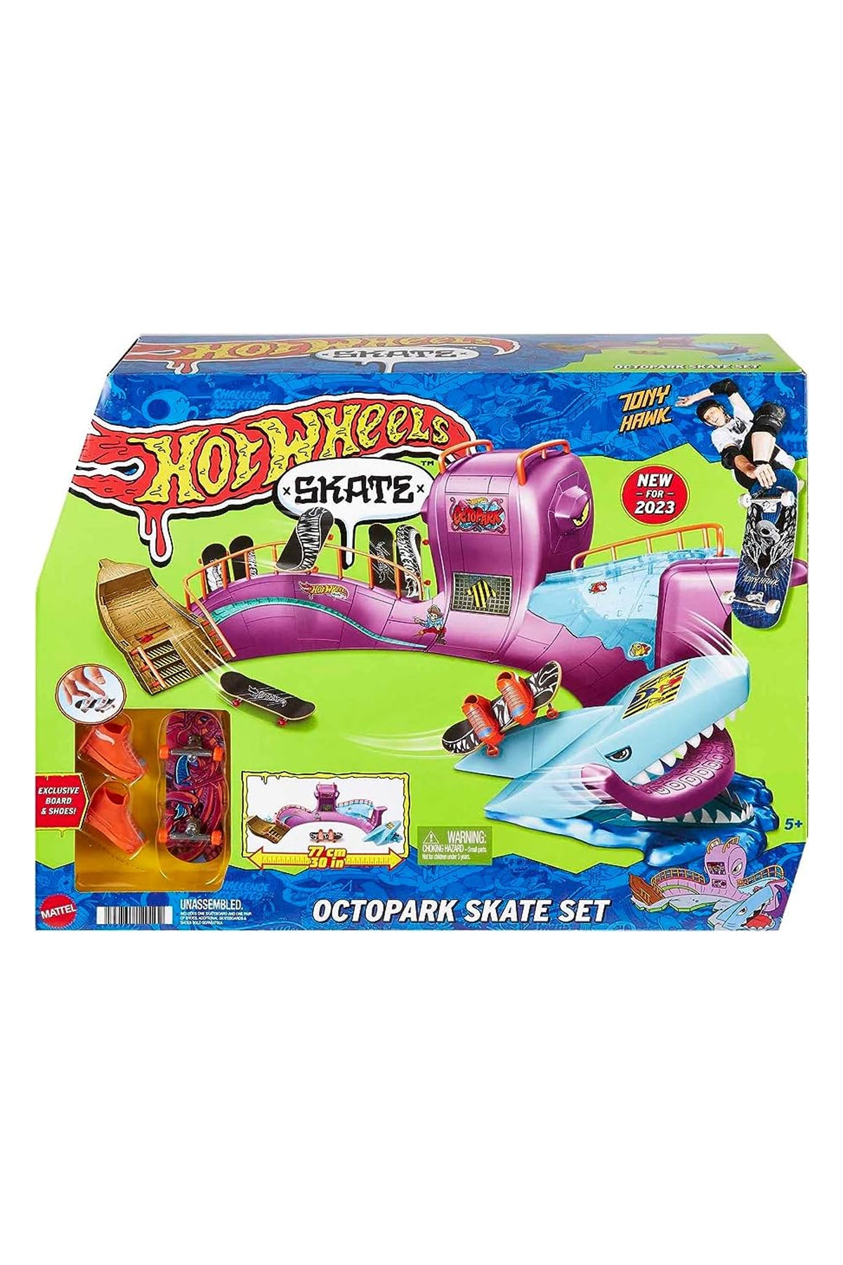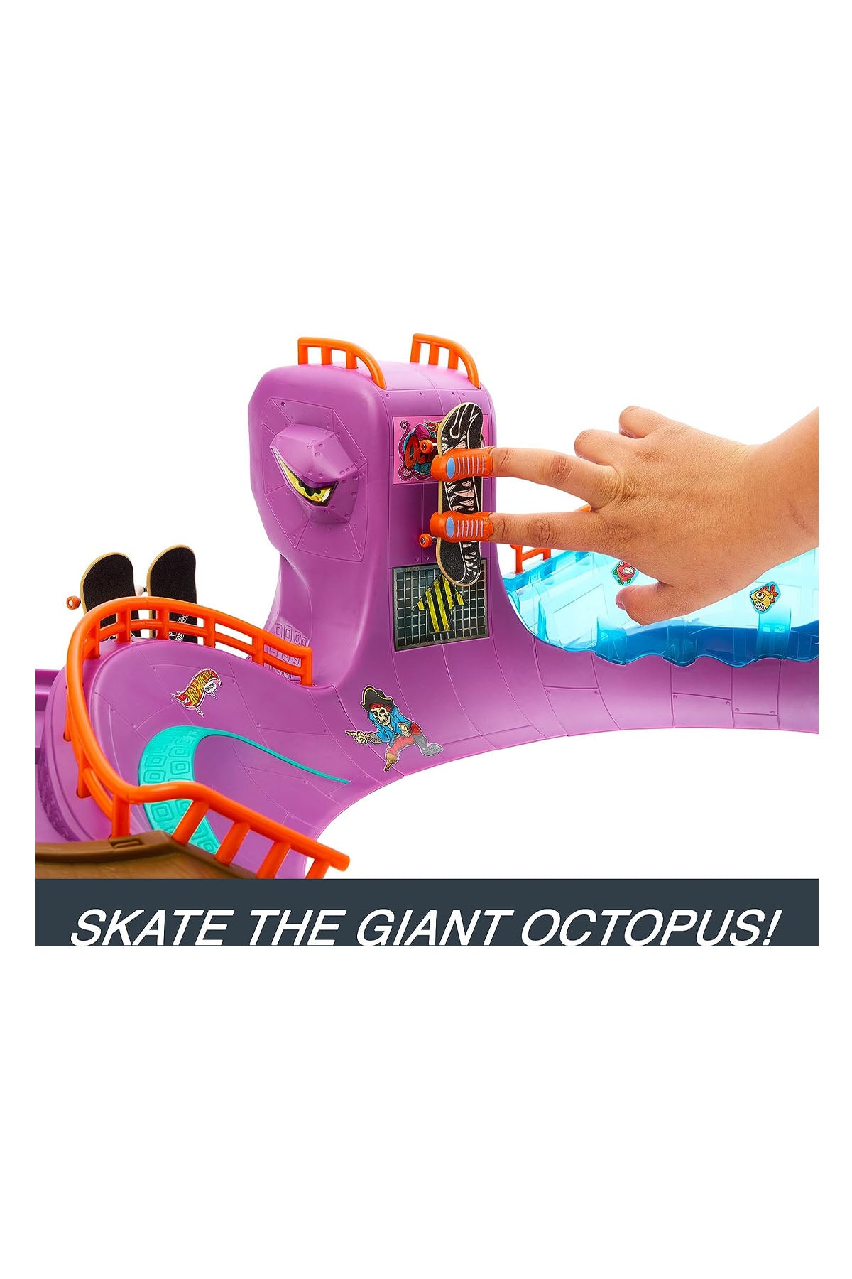 Hot Wheels Skate Ahtapot Kaykay Parkı Oyun Seti, kaykay sever çocuklar için heyecan verici bir oyun alanı sunar. Ahtapot temalı bu set, bol miktarda kaykay yüzeyi ve açık uçlu oyun deneyimi sağlamak için taşlama rayları, dikey çeyrek borular, merdivenler, kaseler ve çıkıntılar içerir. Set içerisinde, yeni başlayanların hileleri öğrenmesine yardımcı olmak için özel olarak tasarlanmış tamamen monte edilmiş bir kaykay ve çıkarılabilir kaykay ayakkabıları bulunur. Ayrıca, tahtayla etkinleştirilen parçalama özelliğine sahip bir köpekbalığı detayı da oyuna ekstra aksiyon katar.