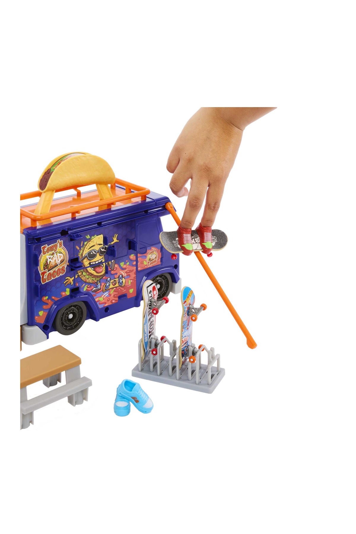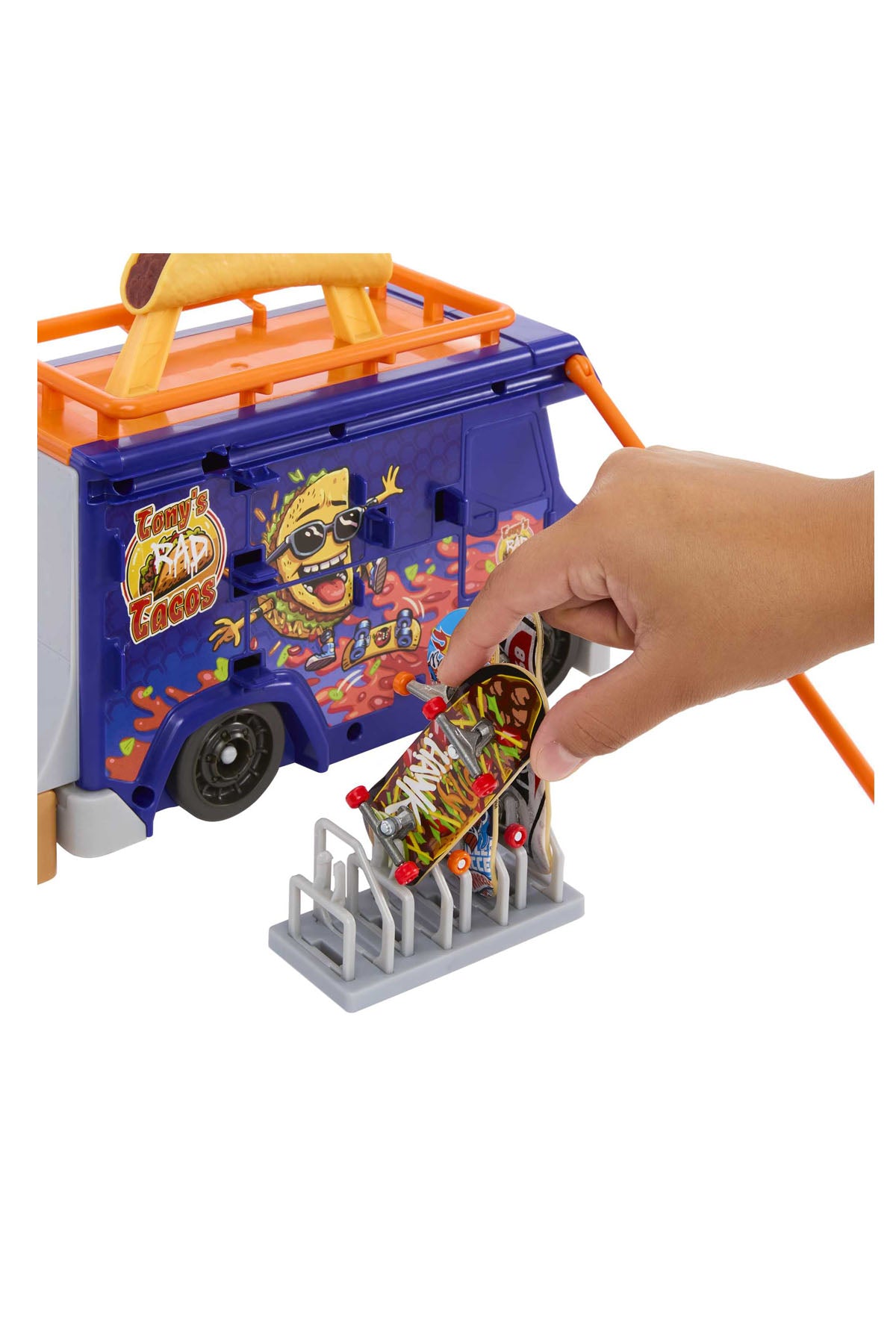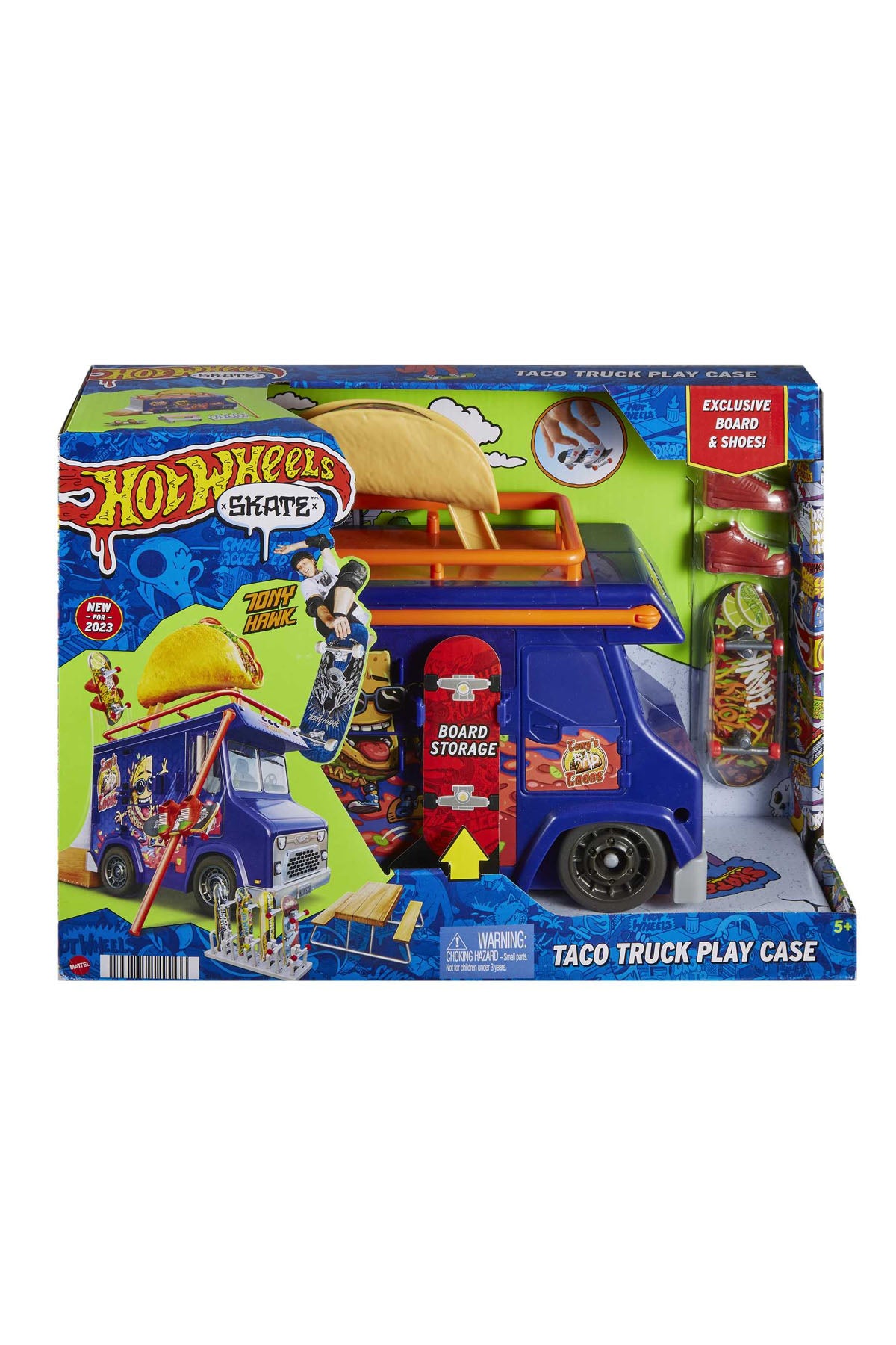 Hot Wheels Skate Taco Arabası Oyun Seti HMK00, kaykay tutkunları için eğlenceli ve dinamik bir oyun deneyimi sunuyor! Baharatlı akrobatik alanlarla dolu bu set, çocukların dev taco çatıdan veya arka rampadan yeni kaykay numaraları denemesine olanak tanıyor. Piknik masası ve kayma rayı gibi ek unsurlar, çocukların farklı akrobasi hareketlerini denemesi için tasarlandı. Üstelik tüm aksesuarlar kamyonun içine veya üzerine saklanarak taşınabilir bir oyun alanı sunuyor. Hot Wheels Skate Taco Arabası Oyun Seti HMK00 ile çocuklar, kaykay yeteneklerini geliştirerek eğlence dolu anlar yaşayacak!