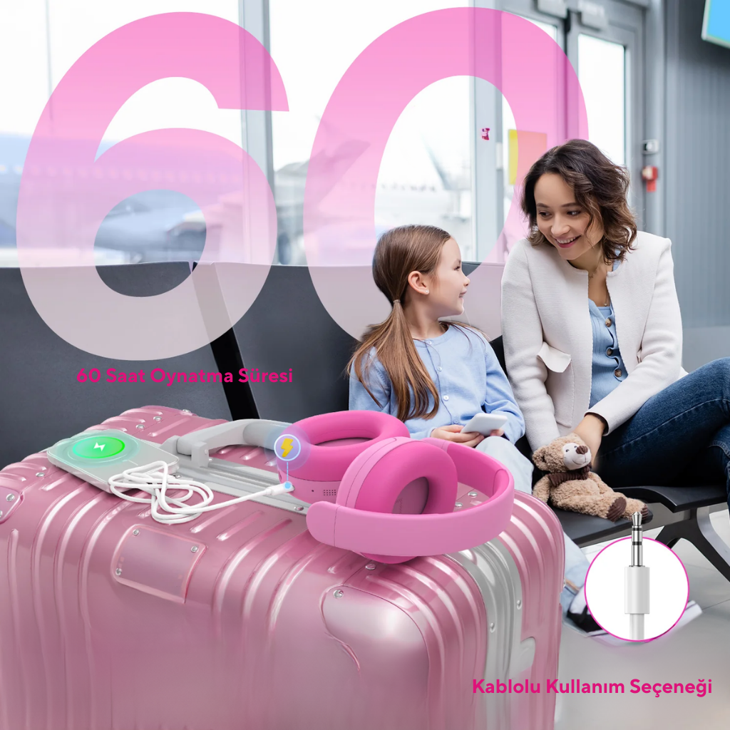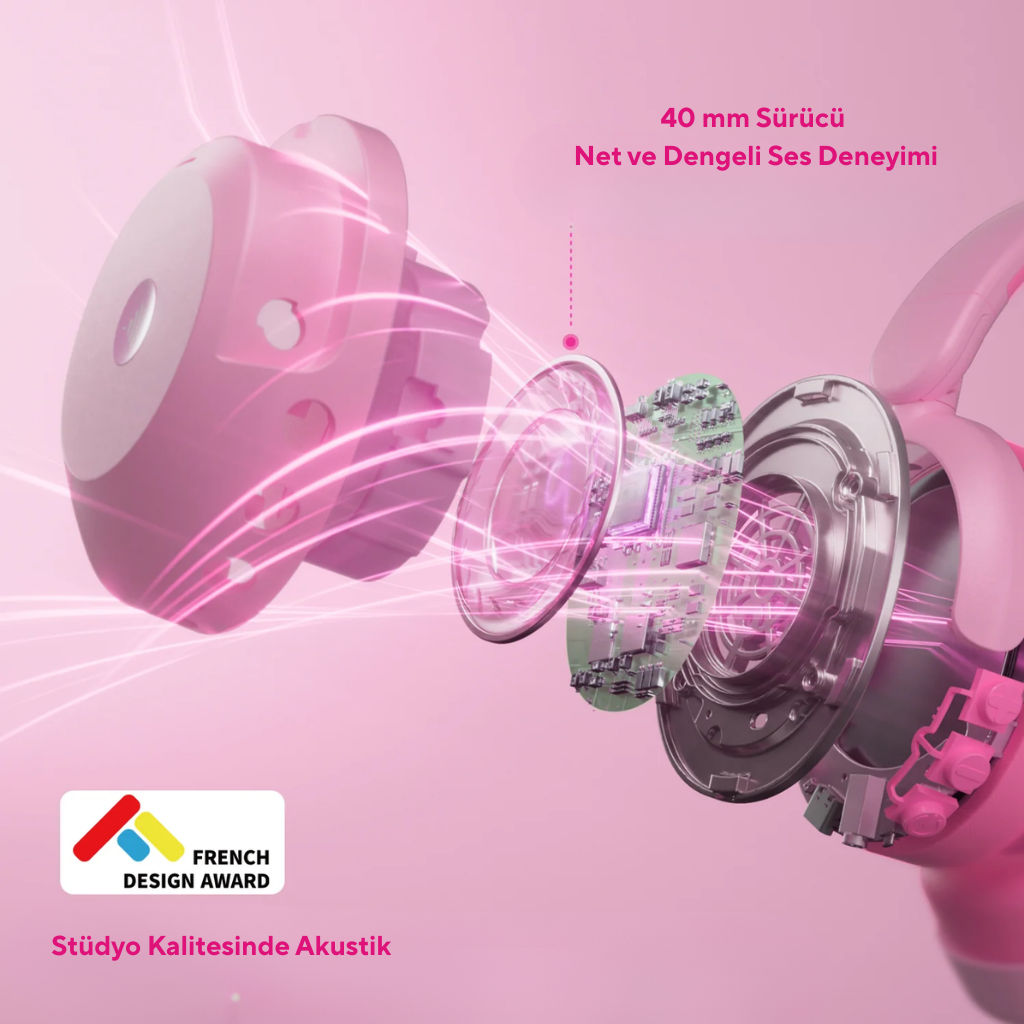 iClever BTH20 Gürültü Engelleme Özellikli Kulaklık Pembe, çocukların müzik dinleme, eğitim içerikleri izleme ve oyun oynama deneyimini daha konforlu ve güvenli hale getirmek için geliştirilmiş modern bir kulaklıktır. Aktif gürültü engelleme teknolojisi, güvenli ses seviyesi ve uzun pil ömrü ile hem eğlence hem de öğrenme süreçlerinde çocuklara kaliteli bir ses deneyimi sunar. Aktif Gürültü Engelleme (ANC) teknolojisi sayesinde çevredeki rahatsız edici sesleri azaltarak çocukların daha net ve odaklanmış bir şekilde müzik veya video içeriklerini dinlemesine yardımcı olur. İki farklı gürültü azaltma modu bulunan bu teknoloji, özellikle seyahatlerde, okul ortamında veya kalabalık alanlarda daha rahat bir kullanım sağlar. Gürültü azaltma derinliği yaklaşık 40 dB seviyesine kadar ulaşabilir. Çocukların hassas işitme sağlığını korumak amacıyla geliştirilen güvenli ses teknolojisi, maksimum 80 dB ses sınırı ile uzun süreli kullanımda bile kulakların korunmasına yardımcı olur. Bu sayede çocuklar güvenli bir dinleme deneyimi yaşarken ebeveynler de iç rahatlığıyla kullanım sağlayabilir. Uzun pil ömrü sunan iClever BTH20, ANC kapalıyken 60 saate kadar, ANC açıkken ise yaklaşık 35 saate kadar kullanım süresi sunar. Hızlı şarj teknolojisi sayesinde yalnızca 10 dakikalık şarj ile yaklaşık 5 saat kullanım elde edilebilir. Bu özellik, özellikle seyahatlerde veya yoğun kullanımda büyük avantaj sağlar. Ergonomik tasarımı, yumuşak kulak yastıkları ve ayarlanabilir kafa bandı sayesinde çocukların baş yapısına kolayca uyum sağlar. Hafif ve esnek yapısı ile uzun süreli kullanımlarda konfor sunarken, dayanıklı gövdesi aktif çocukların kullanımına uygun şekilde geliştirilmiştir. Ayrıca Bluetooth bağlantısı sayesinde telefon, tablet ve bilgisayar gibi cihazlarla kolayca eşleşir. Canlı pembe renk tasarımı ise çocukların tarzına hitap eden eğlenceli ve modern bir görünüm sunar. Günlük kullanımda hem şık hem de fonksiyonel bir kulaklık deneyimi sağlar.