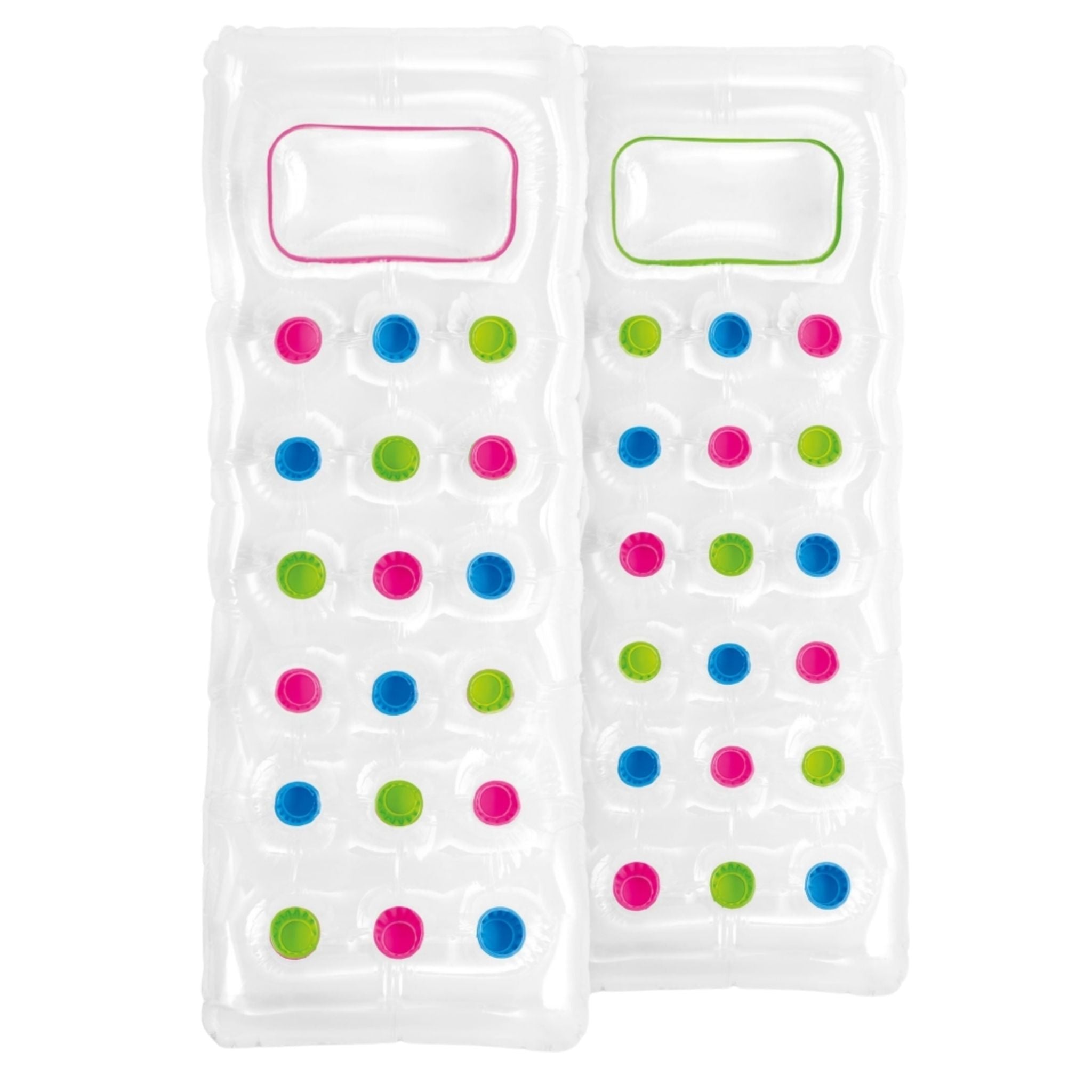 Havuzda ve denizde rahatça güneşlenmek ve suyun üzerinde keyif yapmak için pratik bir çözümdür. Şeffaf gövde ve renkli detaylar modern bir görünüm sağlar; entegre bardaklık dinlenirken içeceğinizi yanınızda tutar. Dayanıklı vinil malzeme uzun ömür ve form koruması sunar, ergonomik tasarım vücuda uyum sağlar.