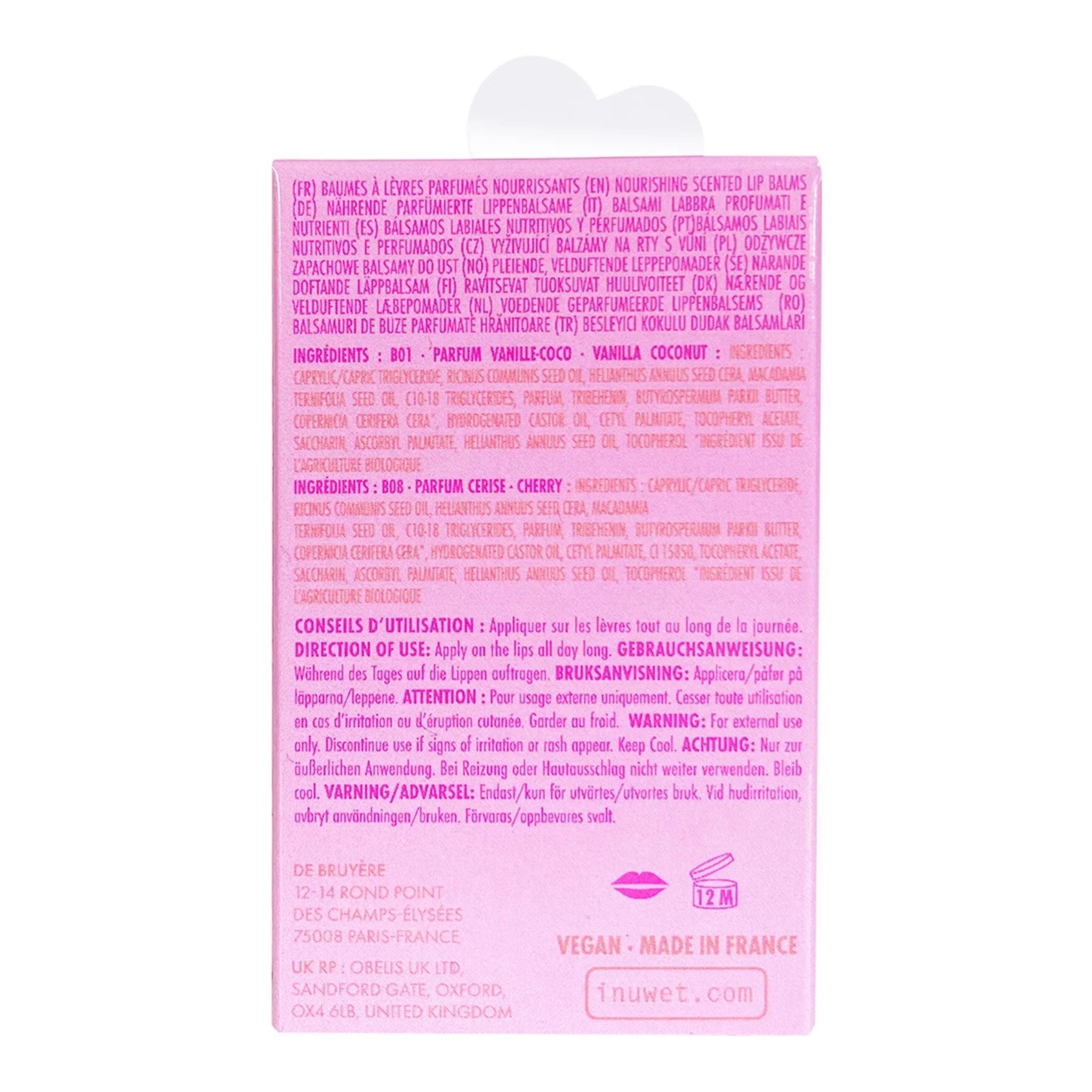 Dudak bakımında hem etkili sonuç hem de keyifli aromalar arayanlar için özel olarak tasarlanmış bu set, günlük kullanımda üstün bir bakım deneyimi sunar. Shea yağı, macadamia yağı ve organik carnauba mumu ile zenginleştirilen formülü, dudakları yoğun biçimde besleyerek kuruluğu azaltır, onarır, yumuşatır ve koruyucu bir bariyer oluşturur. %95,1’e kadar doğal kaynaklı içeriğe sahip olmasıyla güven verir. Vegan yapısı ve Fransa üretimi olmasıyla da tercih sebebidir. Dermatolojik olarak test edilen balsamlar, 3 yaş ve üzeri çocuklar için de uygundur. Bu özel set, iki farklı aromayı bir arada sunar: Vanilya–Hindistan Ceviz'inin sıcak ve tatlı kokusu ile Kiraz’ın ferah ve meyvemsi aroması. Günlük dudak bakımına keyif katar, ruj altına makyaj bazı olarak kullanılabilir ve dudakları gün boyu nemli tutar.