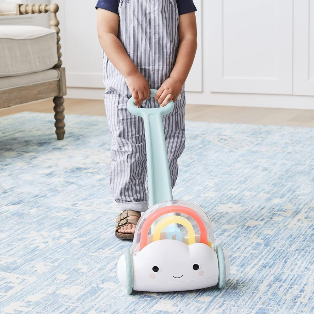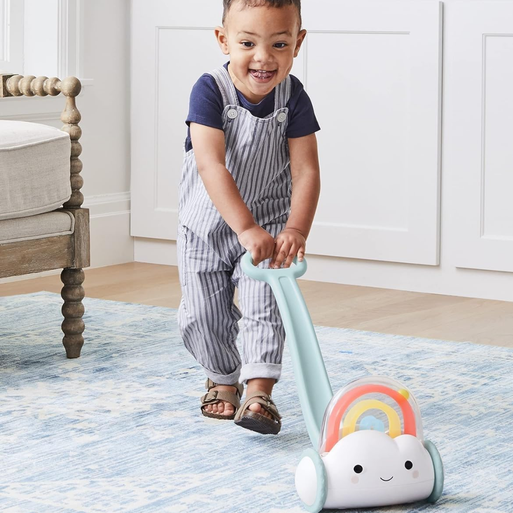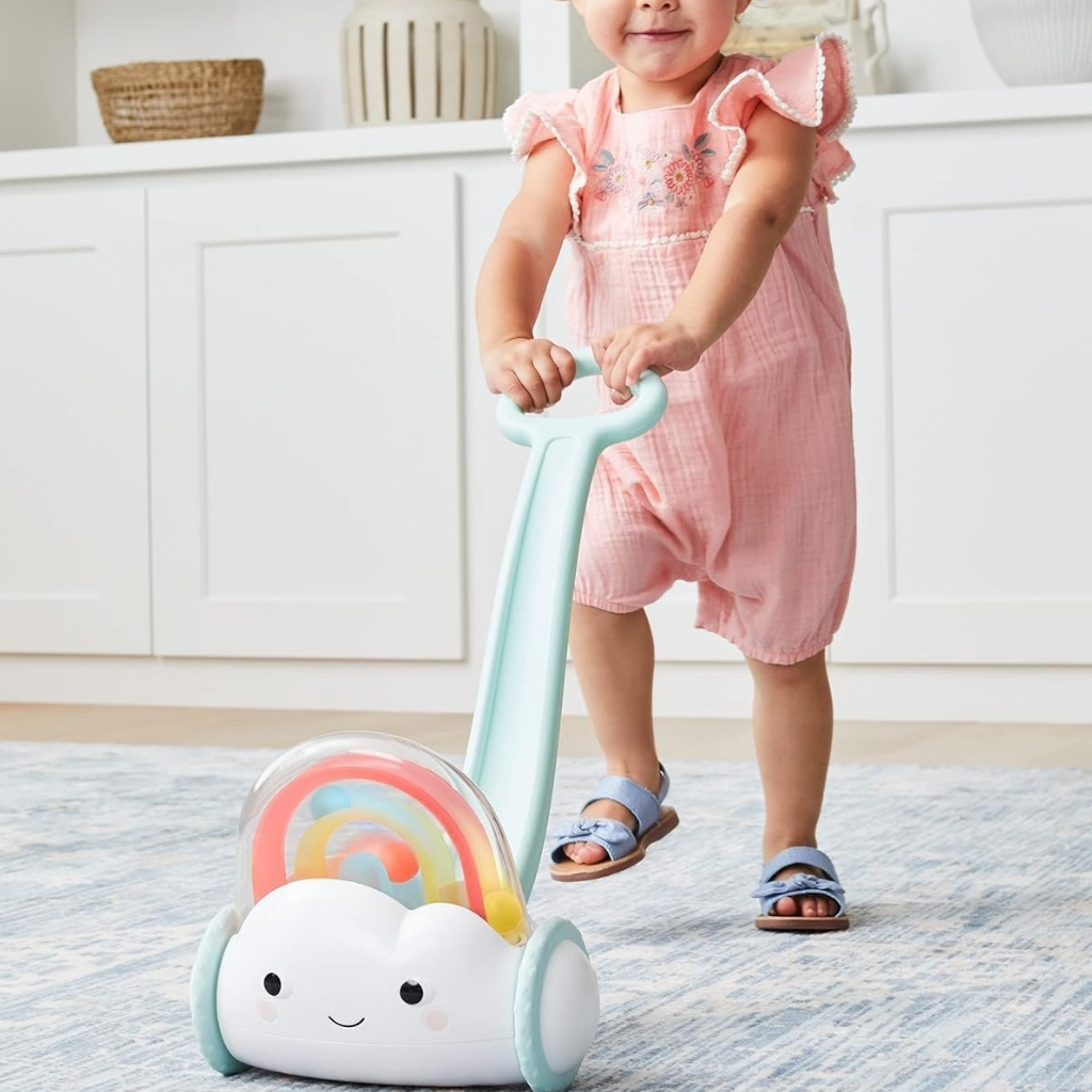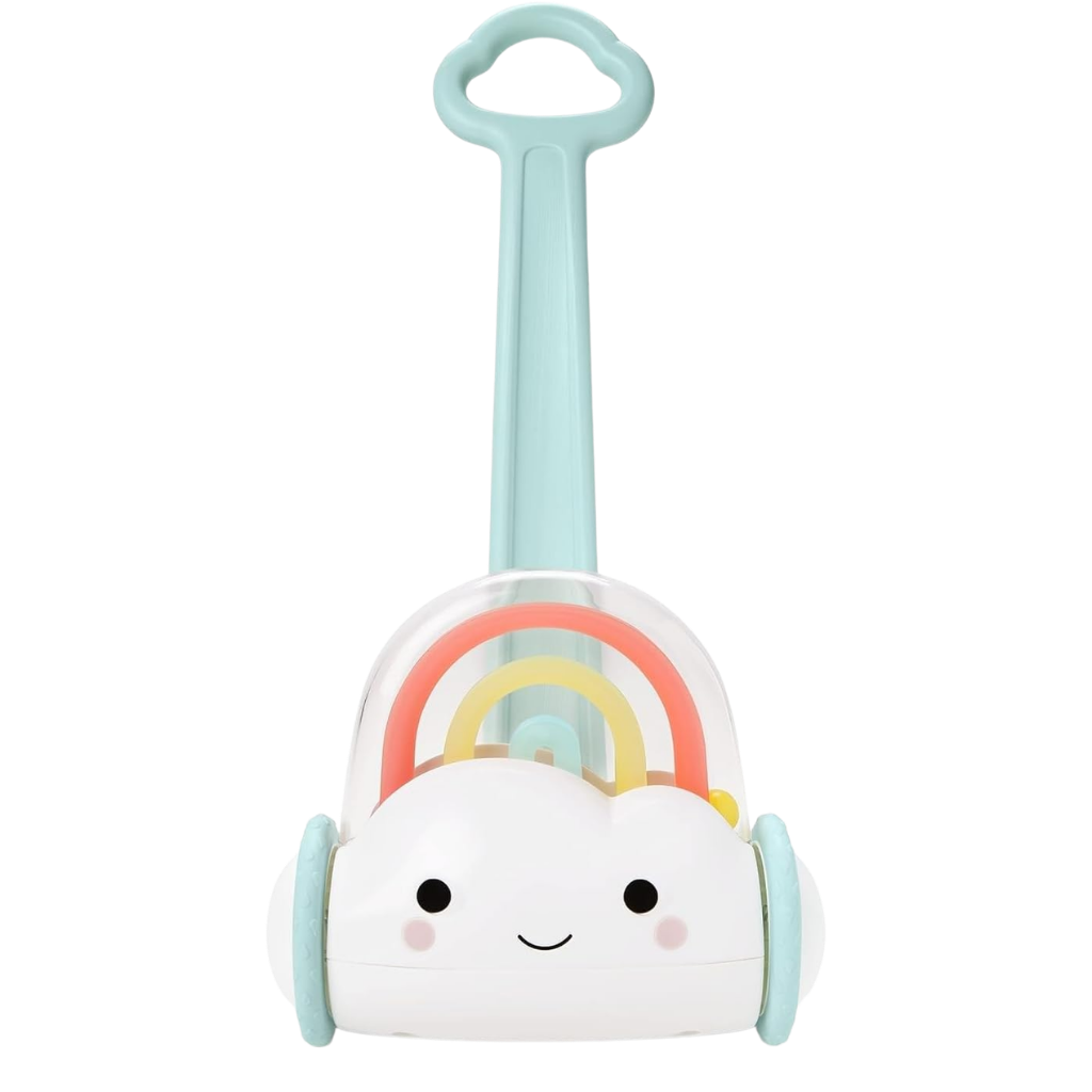 Skip Hop İtmeli Oyuncak Bulut, bebeğinizin ilk adımlarını güvenle desteklemek için tasarlanmış eğlenceli ve gelişim odaklı bir yürüme arkadaşıdır. Gökkuşağı renklerindeki tasarımı ve hareket ettikçe çıkan eğlenceli patlama sesleri sayesinde her adımda bebeğinizi motive eder. Hem oyun hem de gelişim sürecini bir araya getiren fonksiyonel bir itmeli oyuncaktır. Skip Hop tarafından tasarlanan bu model, Silver Lining Cloud koleksiyonu ile uyumludur. Renkli toplar hareket sırasında ses çıkararak bebeğin yürümeye devam etmesini teşvik eder. Bu özellik, sebep sonuç ilişkisini anlamasına yardımcı olurken öğrenmeyi eğlenceli hale getirir. Kolay kavranabilir ergonomik tutamağı sayesinde küçük eller için uygundur. İtmeli yapısı kaba motor becerilerinin gelişimini destekler. Denge kurma, koordinasyon sağlama ve özgüven geliştirme süreçlerine katkı sağlar. Özellikle yürümeyi yeni öğrenen çocuklar için ideal bir destek ürünüdür. 1 yaş ve üzeri çocuklar için uygun olan Skip Hop İtmeli Oyuncak Bulut, hafif nemli bir bezle silinerek temizlenebilir. Muhafaza etmeden önce tamamen kurulanması önerilir. Skip Hop İtmeli Oyuncak Bulut, bebeğinizin yürümeyi öğrenme sürecini destekleyen, eğlenceli ve öğretici bir gelişim oyuncak alternatifidir.