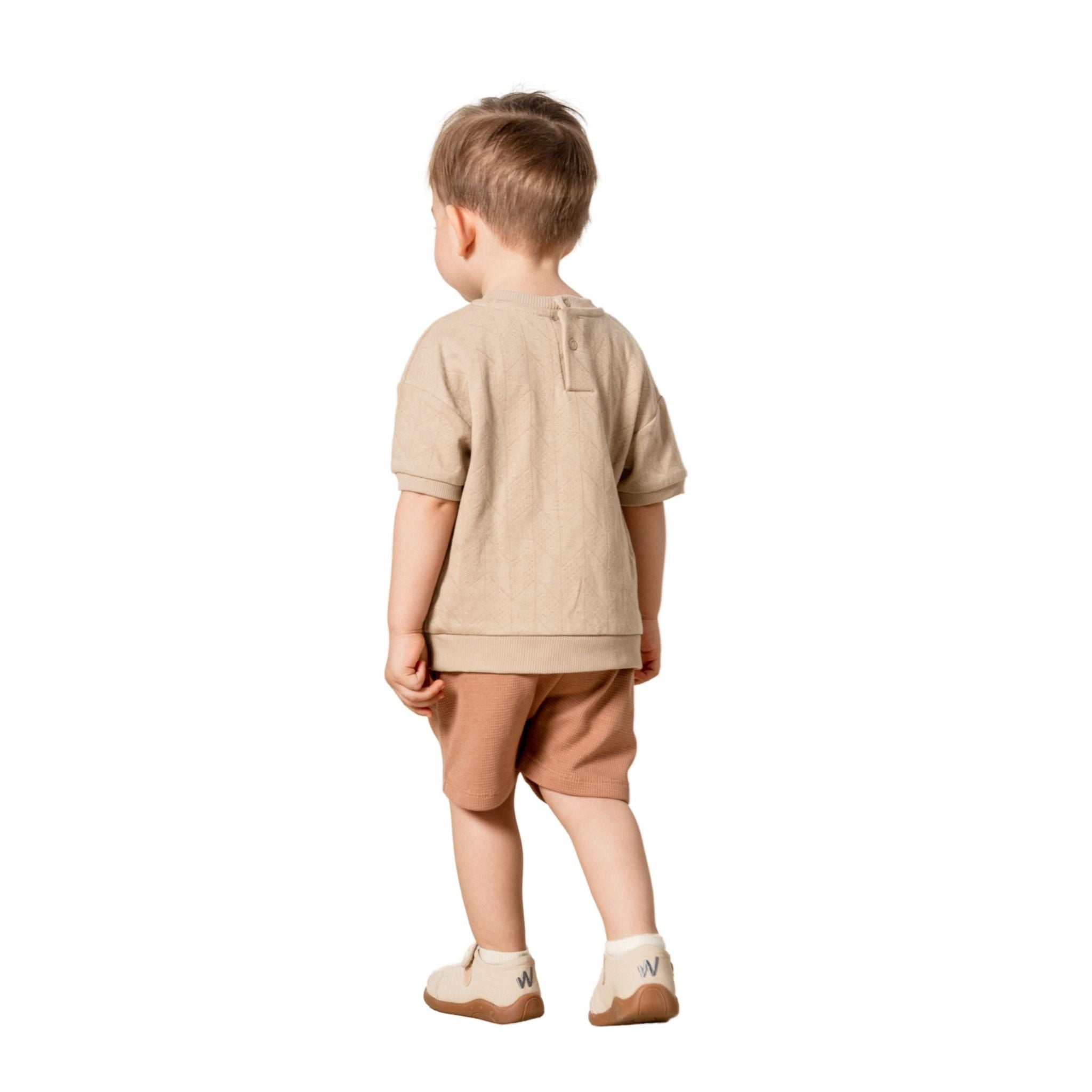 Joviel Baby 2'li Takım, yaz aylarında miniklerin gün boyu ferah ve özgür hissetmesini sağlayan şık bir bebek giyim setidir. Doğal yapısı sayesinde hassas ciltlere dost olan bu takım, sade ve zarif görünümüyle hem ebeveynlerin hem de bebeklerin favorisi olacak şekilde tasarlanmıştır. Set, kısa kollu yumuşak bir tişört ve tam uyumlu, rahat kesimli bir şort içerir. Hareket kabiliyetini destekleyen yapısıyla oyun saatlerinden dış gezilere kadar her an için uygundur. Modern detaylarla zenginleştirilmiş olan bu takım, aynı zamanda yaz mevsiminin sıcak havasına karşı nefes alabilen konforlu bir çözümdür.