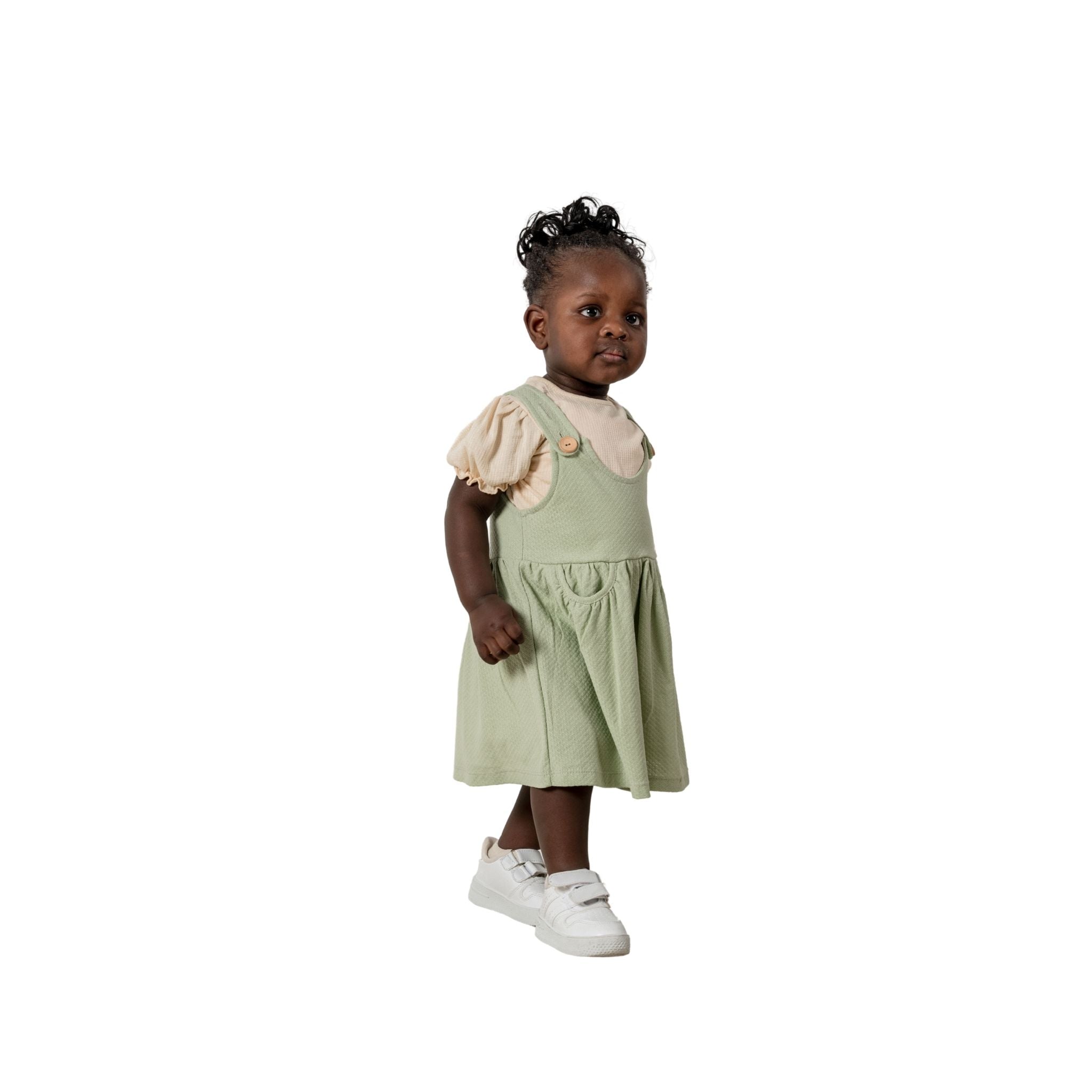 Joviel Elbise İkili Takım, kız bebekler için hem şıklığı hem de rahatlığı bir araya getiren özel bir tasarımdır. %100 pamuk kumaştan üretilen elbise ve alt takımı, gün boyu konforlu bir kullanım sunar. Nefes alabilen yumuşak dokusu sayesinde hassas ciltlerde tahriş oluşumunu önler. Hafif yapısı, bebeğin vücut hareketlerine uyum sağlar ve özgürce hareket etmesine olanak tanır. Zarif ve sade tasarımı, ince dikiş detaylarıyla tamamlanarak doğal bir şıklık yaratır. Takımın içinde yer alan parça uyumu sayesinde kombin yapma derdi ortadan kalkar. Hem günlük kullanımda hem de özel günlerde tercih edilebilecek kadar şıktır. Modern pastel renkleri ve düz desenleriyle öne çıkan Joviel Elbise Takımı, bebek gardırobunun vazgeçilmez parçalarından biri olmaya adaydır. 30 derece sıcaklıkta yıkanabilir oluşu, kullanım kolaylığı sağlarken ürünün formunu uzun süre korumasına yardımcı olur. Her detayı düşünülerek tasarlanmış bu ikili takım, ebeveynlerin beklentilerini karşılayan bir konfor ve estetik sunar.