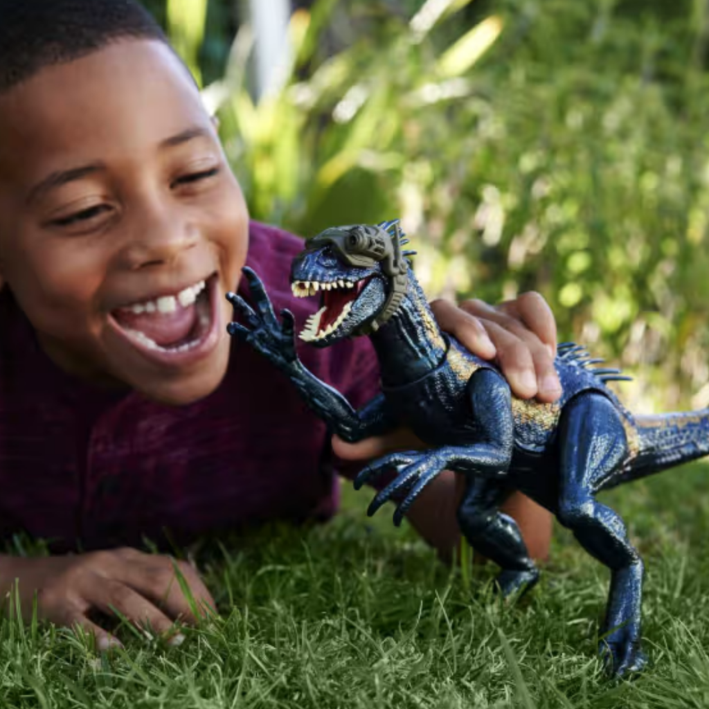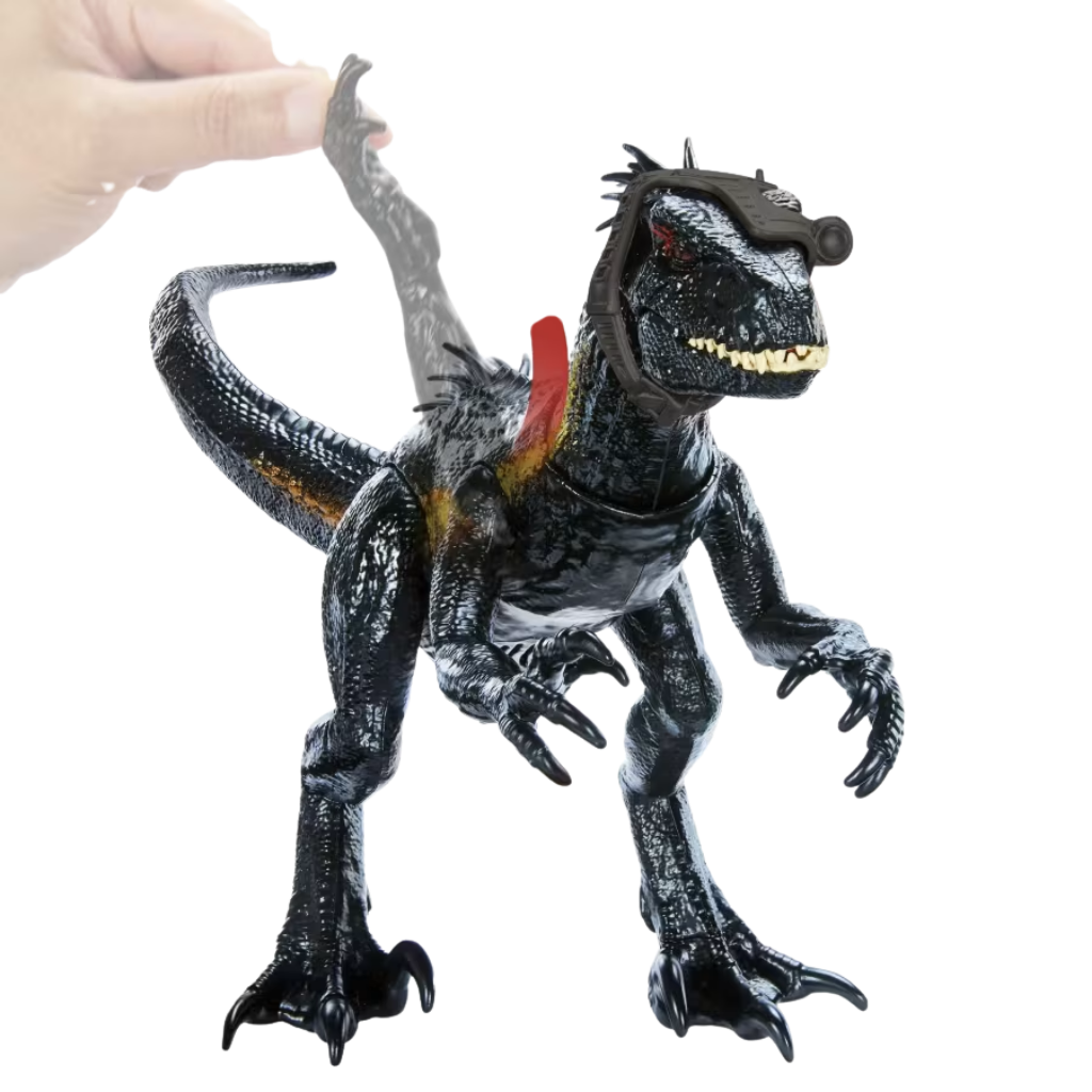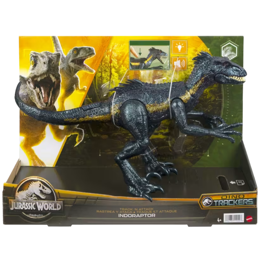 Jurassic World serisinden ilham alınarak tasarlanan Avcı Indoraptor, ürkütücü detayları, ışık ve ses efektleriyle aksiyon dolu oyun sahneleri oluşturmak için geliştirilmiştir. Parıltılı orman tonlarındaki süslemeleri, dev pençeleri ve dikkat çekici kırmızı gözleri ile filmdeki korkutucu görünümünü yansıtan bu figür, dinozor sever çocuklar için etkileyici bir koleksiyon parçasıdır. Çıkarılabilir izleme başlığı sayesinde Indoraptor avını takip etmeye hazır görünür. Figür iki ayağı üzerinde dengede durabilir ya da saldırı pozisyonu için öne eğilebilir. Koldan çekme mekanizması sayesinde başını farklı yönlere çevirebilir, kol serbest bırakıldığında ise saldırı hareketi gerçekleştirir. Sola ve sağa yapılan saldırılar sırasında kükreme sesleri çıkarır ve kırmızı gözleri ışıldar. Arka bölümde bulunan düğmeye basıldığında ise ısırma saldırısı aktif hale gelir. Artırılmış gerçeklik özelliği ile oyun deneyimi dijital ortama taşınır. Figür üzerindeki gizli İzleme Kodu, ücretsiz Jurassic World Facts uygulamasında tarandığında dinozor artırılmış gerçeklikte canlanır. Uyumlu Android veya iOS cihaz üzerinden termal mod ve röntgen mod gibi özel dijital aktiviteler keşfedilebilir. Çocuklar farklı habitatlarda dinozorları takip edebilir, yakalayabilir ve doğru yaşam alanlarına yönlendirebilir. Hikâye kurma, rol yapma ve aksiyon senaryoları oluşturma becerilerini destekleyen bu figür, 4 yaş ve üzeri çocuklar için hem fiziksel hem dijital oyun deneyimini bir arada sunar. Jurassic World hayranları için güçlü, hareketli ve etkileyici bir dinozor figürüdür.