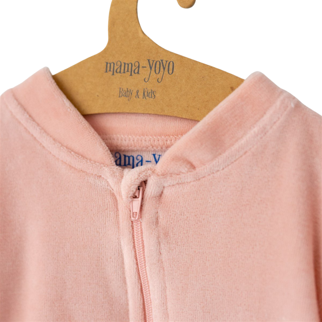 Mama Yoyo Kadife Uyku Tulum Leopar Açık Pembe, bebeğinizin uyku zamanını konfor ve şıklıkla buluşturan özel bir tasarımdır. %100 pamuk kadifeden üretilen bu tulum, yumuşak dokusu ile bebeğinizin hassas cildine nazikçe dokunur. Organik baskı teknolojisi sayesinde zararlı kimyasallar içermeyen ürün, sağlıklı ve çevre dostu bir seçenek sunar. Sevimli leopar desenleri ve açık pembe tonu, ürüne modern ve eğlenceli bir görünüm kazandırırken, önden fermuarlı tasarımı sayesinde kolayca giydirilip çıkarılmasını sağlar. Yaka kısmındaki koruma detayı ise ekstra güvenlik sunarak, bebeğinizin rahat bir uyku çekmesine yardımcı olur.