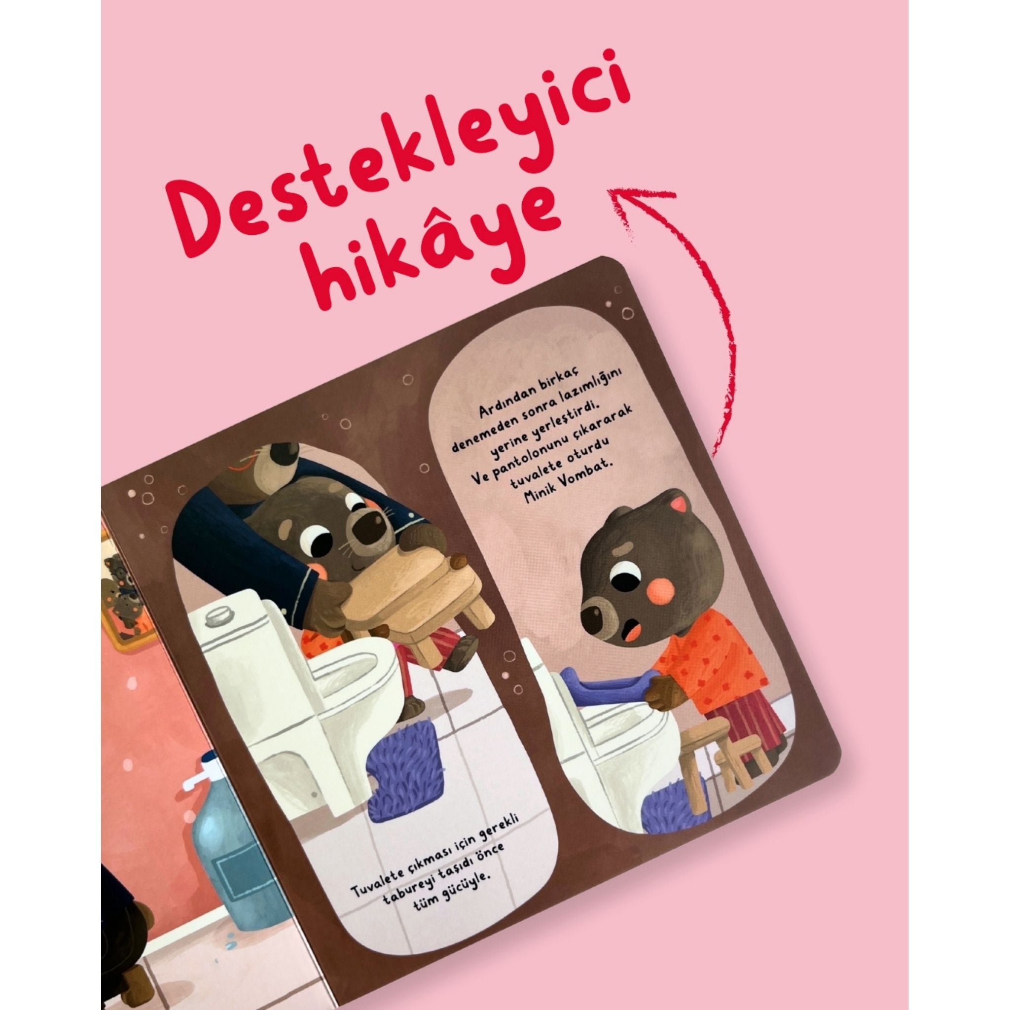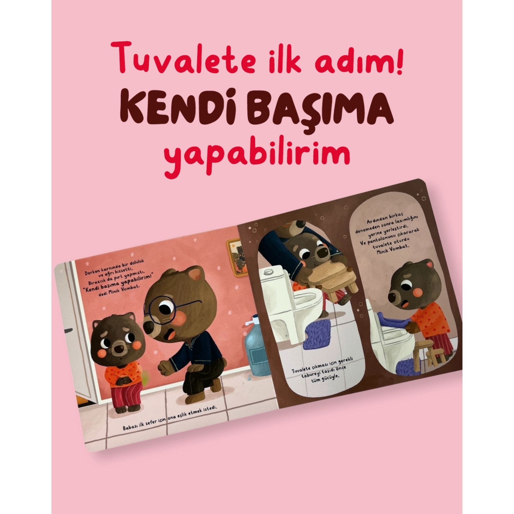 Kendi Başıma Tuvalet, miniklerin tuvalet alışkanlığı kazanma sürecinde onlara eşlik eden sade, anlaşılır ve eğlenceli bir hikâye sunar. Sincap Kitap tarafından hazırlanan bu boncuklu hikâye serisi, 0-4 yaş aralığındaki çocukların gelişim dönemine uygun olarak tasarlanmıştır. Minik Vombat’ın kendi başına tuvalete hazırlanma süreci, adım adım ilerleyen anlatımıyla çocukların bağımsızlık duygusunu destekler. Renkli illüstrasyonlar, yalın bir anlatım dili ve yönlendirici mesajlar ile hazırlanan bu kitap, tuvalet eğitimi sürecini hem çocuklar hem de ebeveynler için daha kolay ve keyifli hale getirir. Kitapta yer alan boncuklu takip yapısı, çocukların dikkatini toplamaya ve ince motor becerilerini desteklemeye yardımcı olur. Dayanıklı sıvama kapak ve yüksek kaliteli Bristol kağıt yapısı sayesinde uzun süreli kullanım için idealdir.