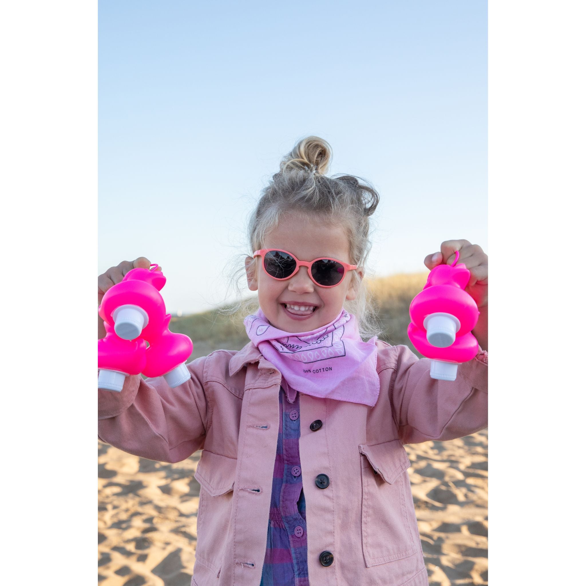 Kietla Wazz Güneş Gözlüğü Çocuk 2-4 Yaş Grapefruit, Küçük maceraperestlerin güneşin zararlı etkilerinden korunurken tarzlarını da yansıtabilecekleri harika bir seçenektir. Bu göz alıcı güneş gözlükleri, çocukların hassas gözlerini güneşin zararlı UV ışınlarından korumak için üst düzey koruma sunar. Dayanıklı yapısı ve eğlenceli tasarımıyla çocuklarınızın favorisi olacak. Seyahatlerde, açık hava etkinliklerinde veya günlük kullanımda mükemmel koruma ve tarz sunar.