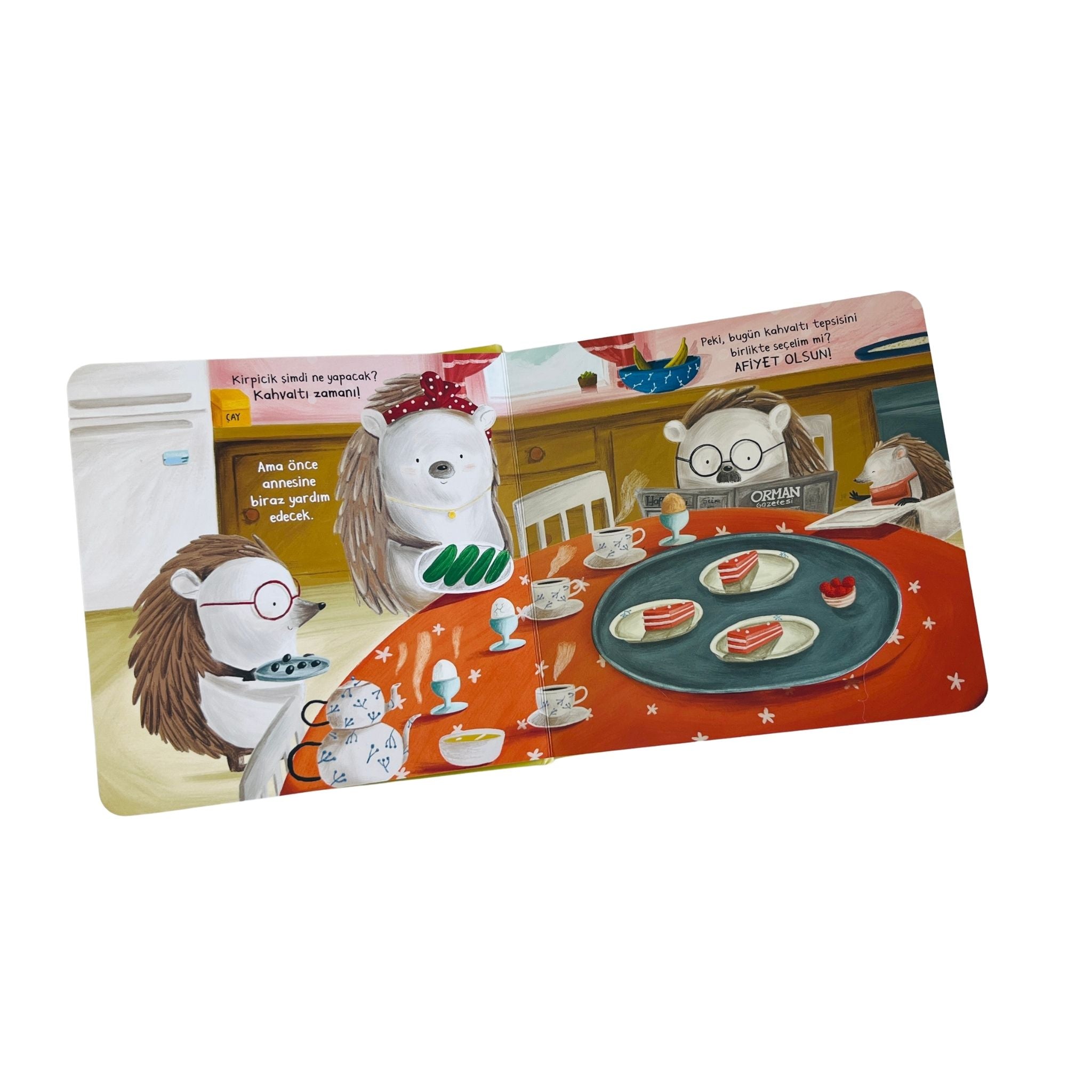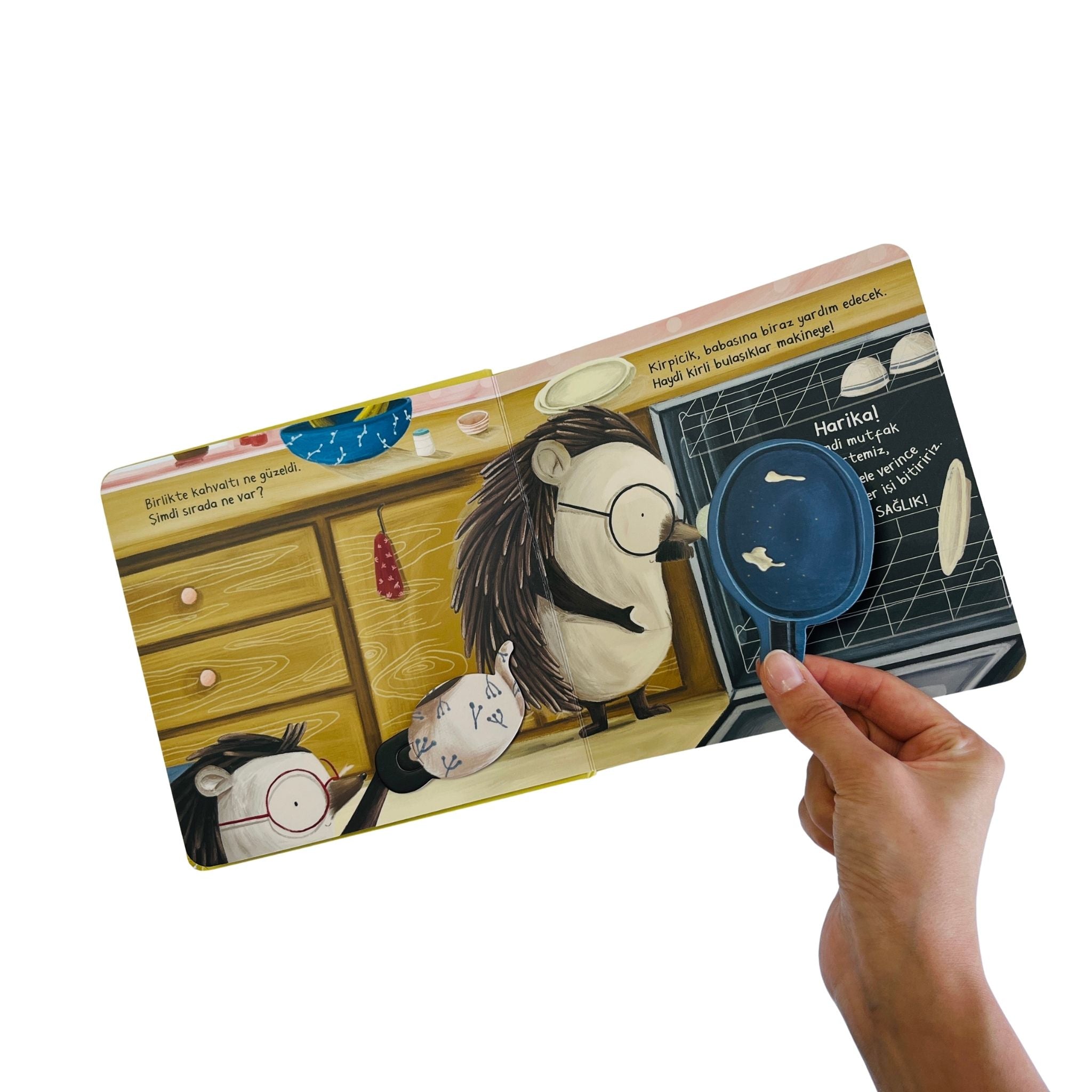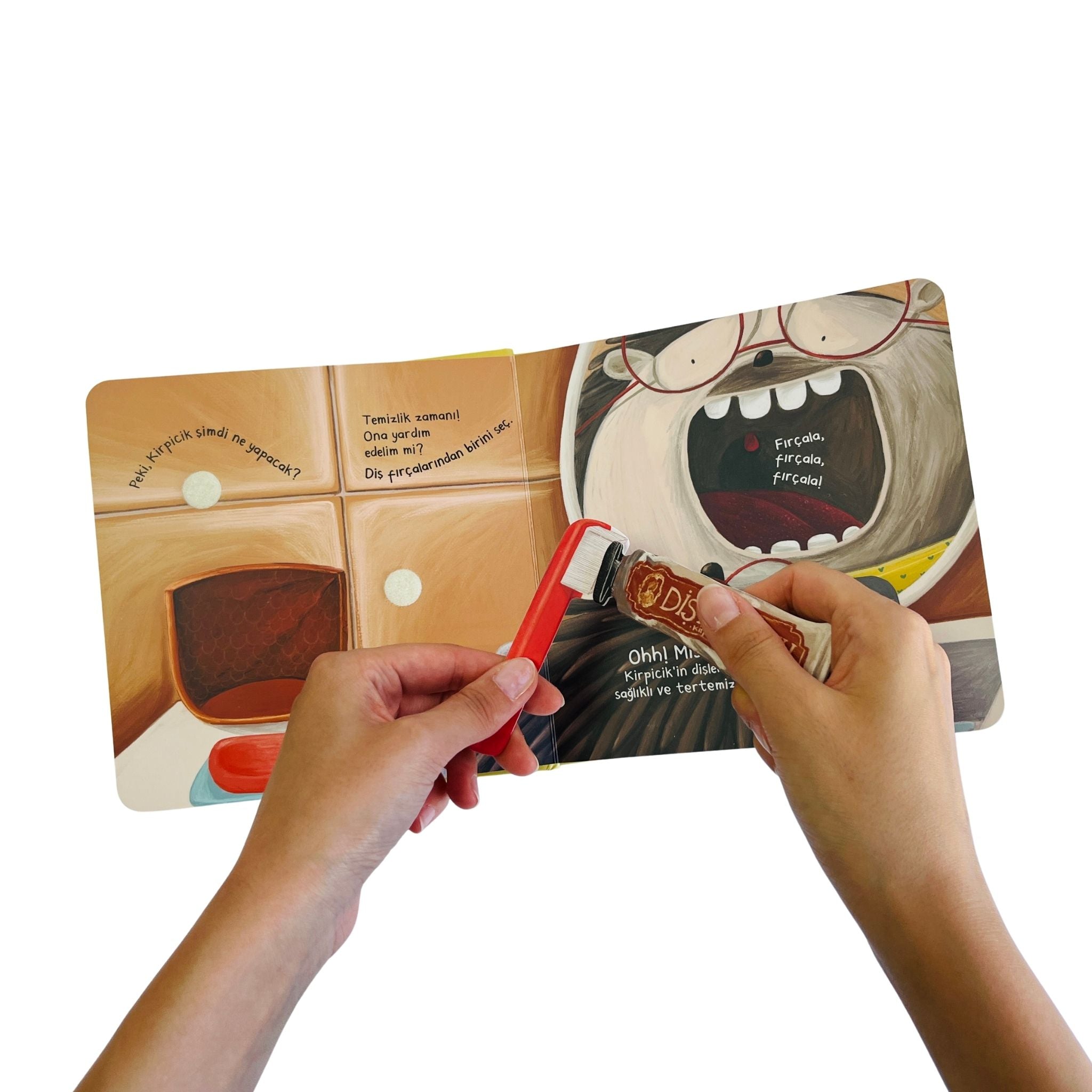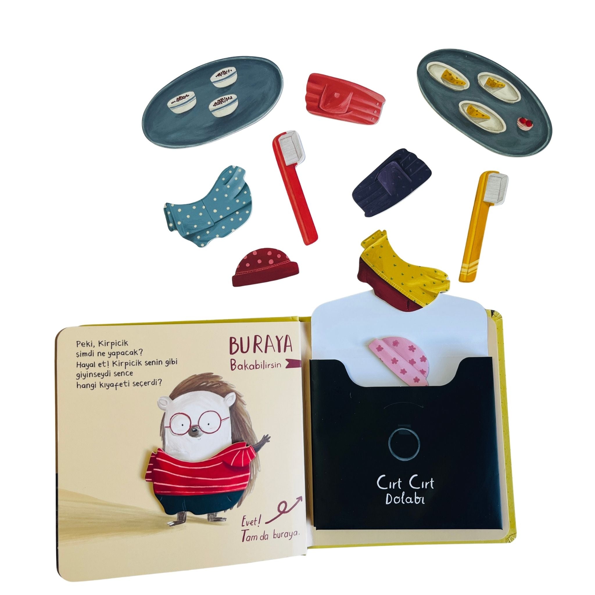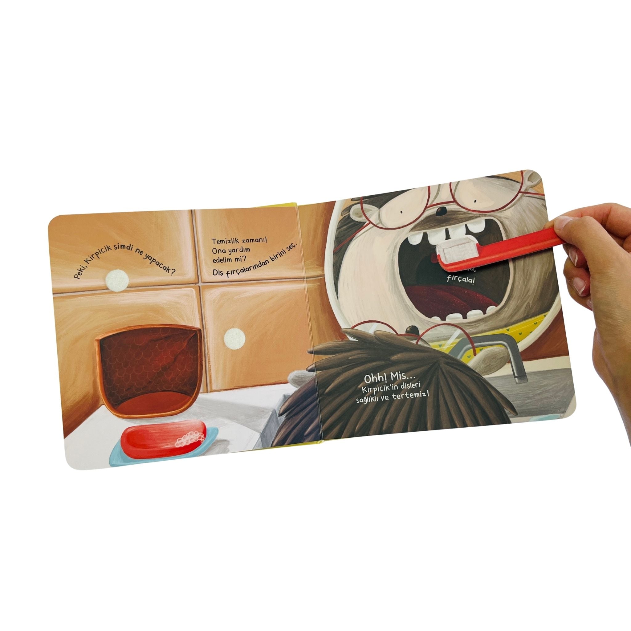 Kirpicik Peki Şimdi Ne Yapacak? Uyku Zamanı, miniklere uyku rutini oluşturmayı oyunla öğreten interaktif bir hikâye kitabıdır. Kirpicik ’in uykuya hazırlanırken yapması gereken adımlar arasında seçim yapma fırsatı sunan bu kitap, çocukların sürece aktif şekilde katılmasını sağlar. Diş fırçalamak, pijama seçmek ve ışıkları kapatmak gibi günlük alışkanlıklar oyunlaştırılarak anlatılır. Cırt cırtlı parçaları sayesinde çocuklar hikâye boyunca Kirpicik’e yardımcı olurken, karar verme yetenekleri ve el göz koordinasyonları gelişir. Renkli ve sevimli çizimler, uyku öncesi okuma rutinini daha keyifli hale getirir. Bu interaktif kitap, 2-4 yaş grubu için hem eğitici hem de eğlenceli bir kaynaktır.