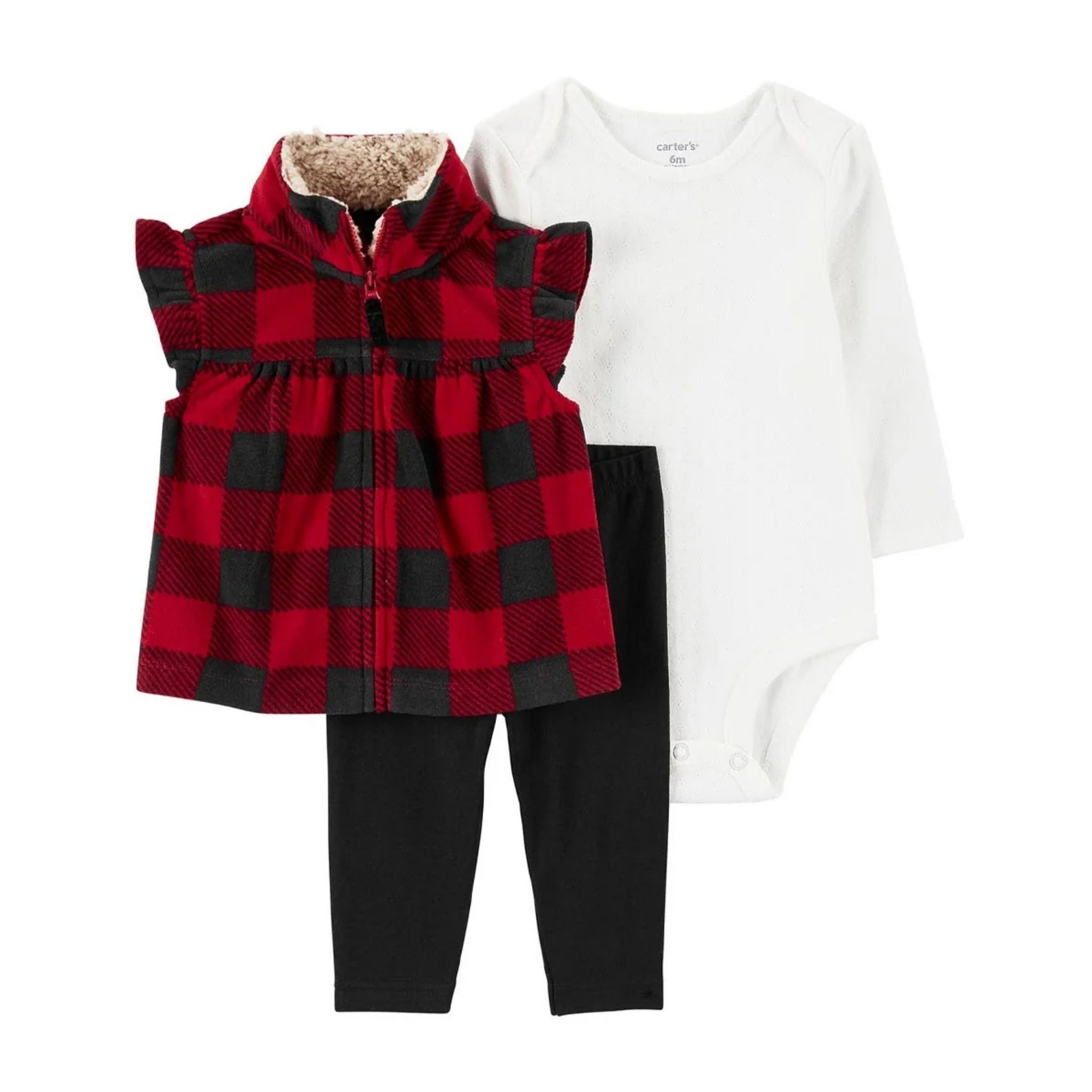 Carter's Kız Bebek 3'lü Yelek Set Yelekli Kırmızı, miniklerin gün boyu konforla hareket edebileceği ve sevimli görüneceği şekilde tasarlanmıştır. Set; yumuşacık pamuklu uzun kollu body, mikro polar yelek ve esnek bel bantlı tayttan oluşur. Günlük kullanım için ideal olan bu kombin, serin havalarda bebeğinizin sıcak kalmasına yardımcı olur. Body’nin dayanıklı çıtçıtları sık kullanıma ve yıkamaya karşı dirençliyken, yeleğin fermuarlı yapısı kolay giydirme imkânı sunar. Elastik bel bantlı tayt ise bebeğinizin rahatça hareket etmesini sağlar. Üç parça uyumlu bu set hem pratik hem de şık bir giyim alternatifi sunar.