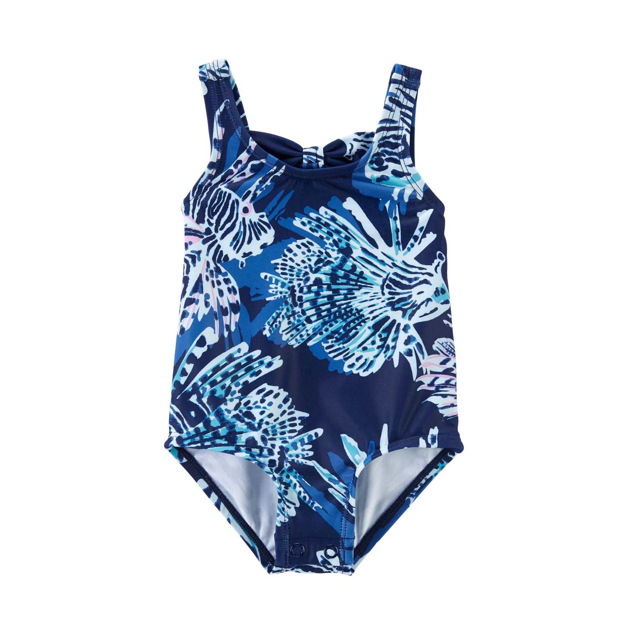 Carter's Kız Bebek Mayo Desenli Lacivert, yaz aylarında plaj ve havuz keyfini güvenli ve konforlu hale getiriyor. UPF 50+ güneş koruması sunan bu sevimli mayo, bebeğinizin cildini zararlı UV ışınlarına karşı korurken çabuk kuruyan kumaşı ile pratik bir kullanım sağlar. Kolsuz yapısı ve tam astarlı iç kısmı sayesinde hem konforlu hem de güvenlidir. %83 polyester, %17 elastan karışımı esnek kumaşı ile rahat bir kullanım sunan bu mayo, OEKO-TEX® standartlarına uygun olarak üretilmiştir.