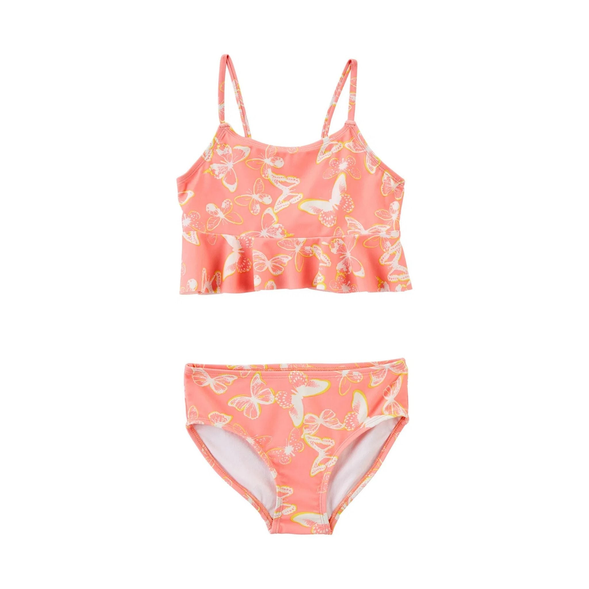Carter's Kız Çocuk Bikini Set Kelebek Çok Renkli, rengârenk kelebek desenleriyle süslenmiş enerjik tasarımı sayesinde yaz tatilinin en sevimli parçalarından biri olmaya aday. Plaj ve havuz keyfini güvenle yaşamak isteyen minikler için özel olarak üretilen bu iki parçalı mayo takımı, rahat kalıbı ve güneş koruması ile dikkat çeker. Kolsuz üst tasarımı sayesinde çocukların özgürce hareket etmesini sağlayan bu bikini seti, UPF 50+ güneş koruma özelliği ile cildi zararlı UV ışınlarına karşı korur. Hafif ve çabuk kuruyan kumaşıyla tüm gün konfor sunar.