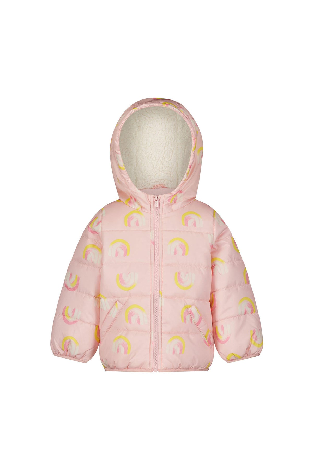 Carter's Kız Çocuk Mont Sarı Pembe Desenli, canlı renkleri ve gökkuşağı baskılı tasarımıyla miniklerin soğuk havalarda stilini tamamlayan sevimli bir mont seçeneğidir. İç kısmında yer alan yumuşak ekru polar astarı, soğuk havalarda vücut ısısını koruyarak maksimum konfor sunar. Boyuna kadar uzanan fermuar yapısı, yüz ve boyun bölgesini rüzgâra karşı korurken; kapüşon ve kol uçlarındaki lastikli detaylar başı ve bilekleri sararak ısıyı içeride tutar. İç astar üzerinde bulunan etiket alanı, isim ve telefon bilgisi yazımı için pratik bir çözüm sunar. İki yanda yer alan cepler ise fonksiyonelliği artırır.