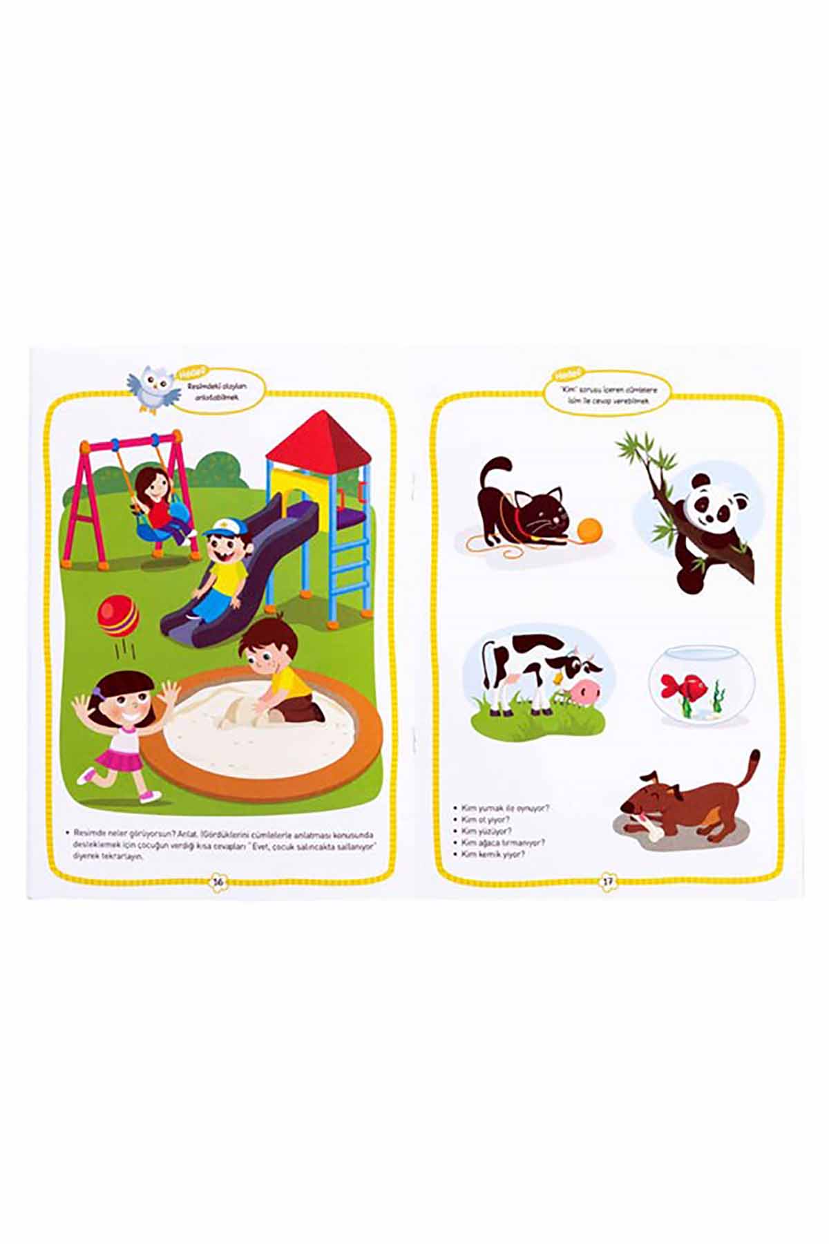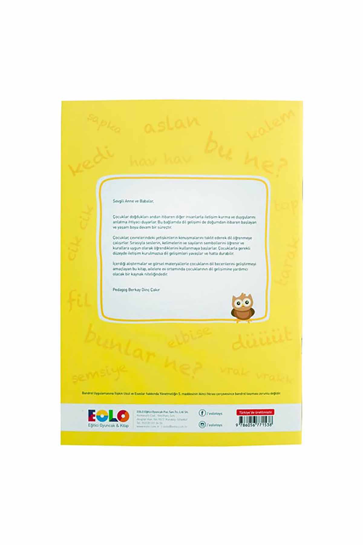 Eolo Konuşma zamanı eğitici kitap ile çocuklar, dil bilgisi kurallarına uygun iki ya da daha fazla sözcükten oluşan cümleler kurabilir, “Kim” sorusu içeren cümlelere isim ile cevap verebilir, “Ne yapıyor” sorusuna cevap verebilir, “Nerede” sorusu içeren cümlelere cevap verebilir, konuşmalarında hayır ya da değil kelimelerini kullanabilir, kelimelerin çoğul hallerini kullanabilir, resimde gördüğü olayları anlatabilir, İsimlerin mülkiyet bildiren hallerini kullanabilir. Çocuklar eğitici kitaplar ile eğlenerek öğrenecek!