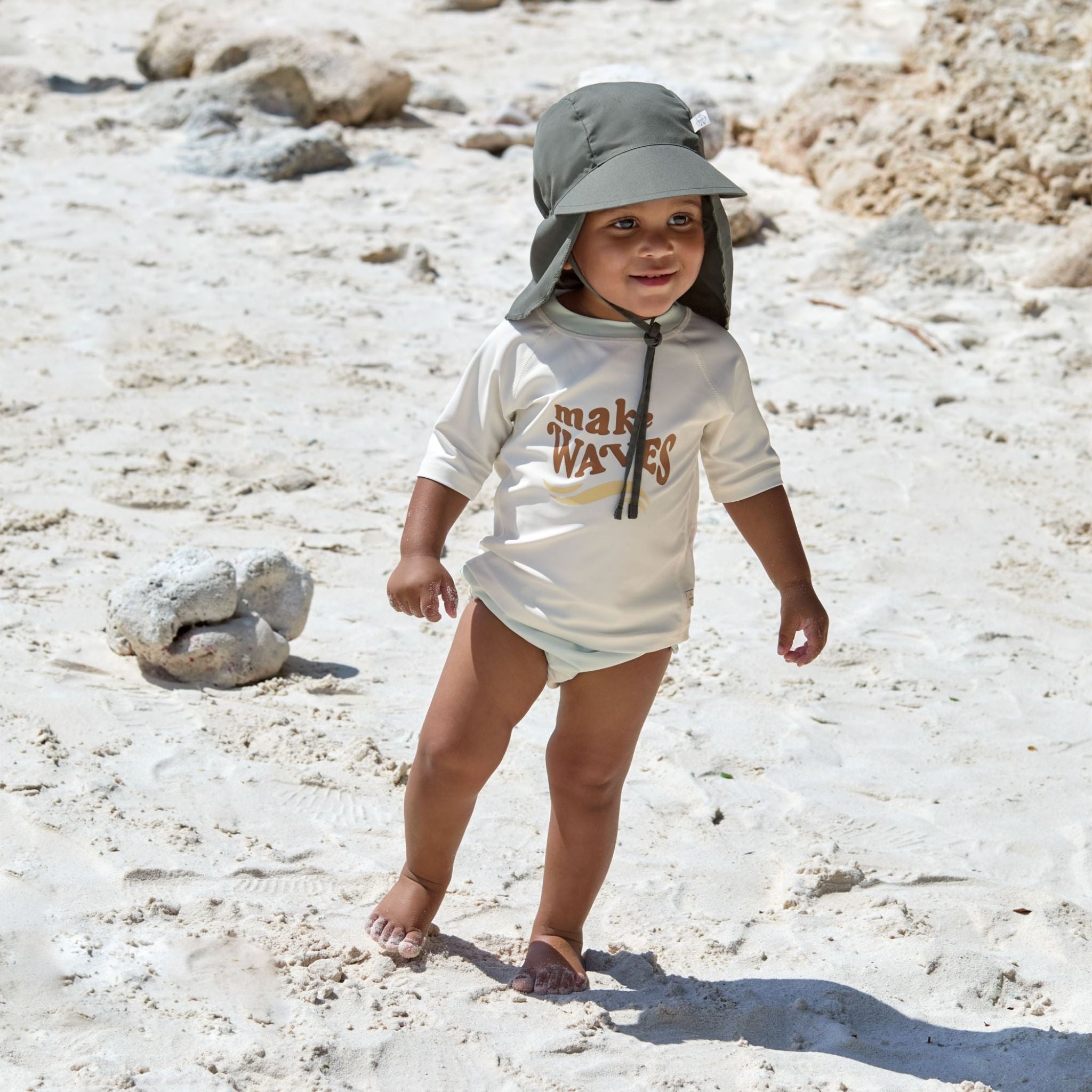 Yaz aylarında çocuklarınızın güneşin zararlı etkilerinden korunmasını sağlarken aynı zamanda konforlu hissetmesini istiyorsanız, Lassig Flap Hat UV Korumalı Şapka Deep Olive ideal bir seçimdir. Doğadan ilham alan koyu yeşil tonu ve işlevsel tasarımıyla bu şapka, hem stil hem de güvenlik sunar. UV 80 koruma faktörü sayesinde çocuğunuzun başını, yüzünü ve ense bölgesini doğrudan gelen güneş ışınlarına karşı etkili şekilde korur. Uzatılmış arka flap tasarımı, enseyi tam kapatarak ekstra koruma sağlar. Hafif ve nefes alabilen kumaş yapısı, sıcak havalarda terlemeyi en aza indirirken, hızlı kuruyan özelliği ile su aktiviteleri sonrasında da konfor sunar. Rüzgarlı havalarda ya da hareket halindeyken şapkanın sabit kalması için çene altından bağlanabilen yapısı ebeveynlere ekstra güvenlik sağlar. Geri dönüştürülmüş polyester malzemeden üretilmiş olması ise bu ürünü sadece fonksiyonel değil, aynı zamanda çevre dostu bir tercih haline getirir.