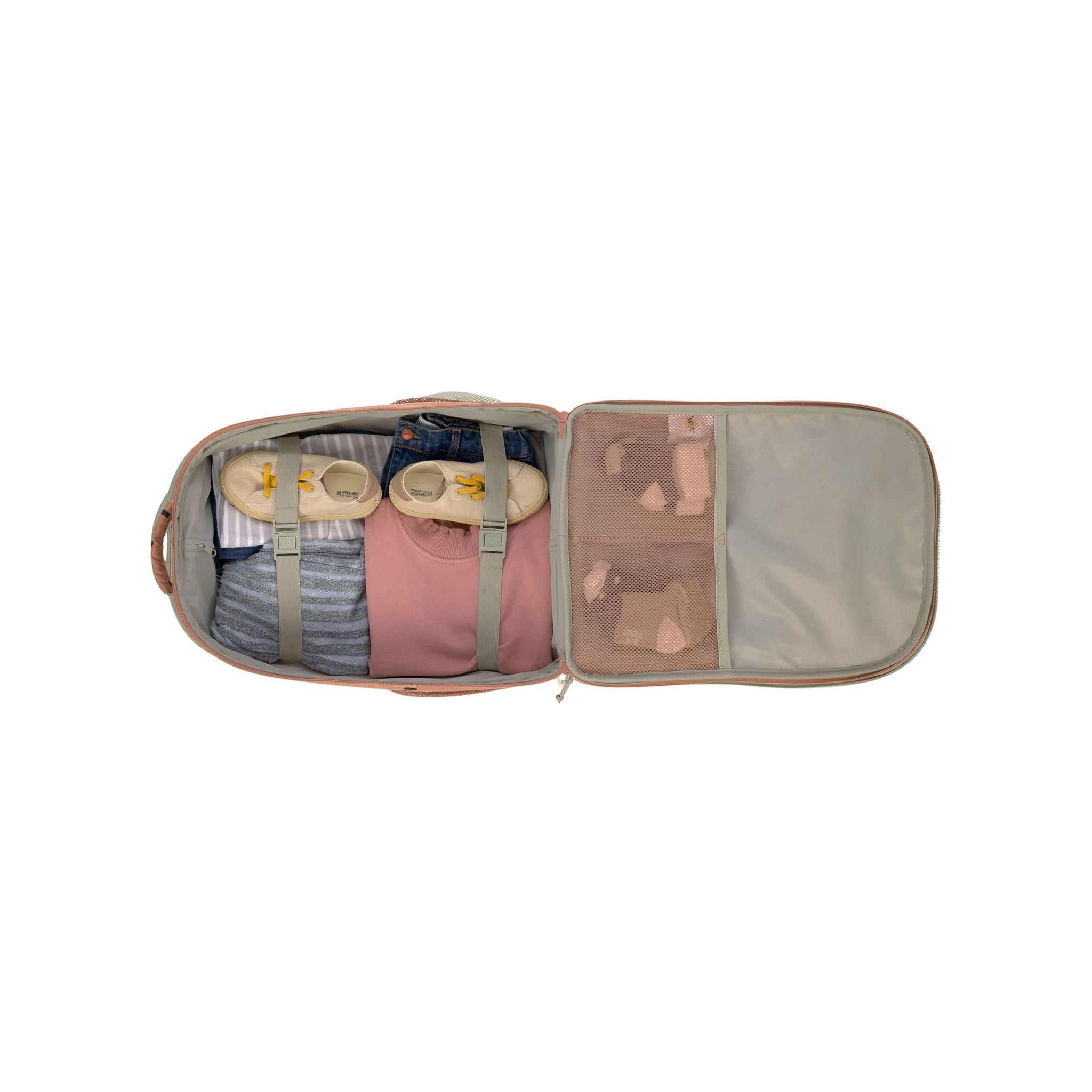 Lassig Happy Prints Çocuk Çekçekli Çanta, sade ama kişiselleştirilebilir tasarımıyla hem işlevsel hem de eğlenceli bir seyahat arkadaşıdır. Karamel rengiyle öne çıkan bu şık çocuk valizi, minik gezginlerin tatillerinde ve kısa seyahatlerinde tüm ihtiyaçlarını düzenli bir şekilde taşımasını sağlar. Valizin geniş ana bölmesi, kıyafetleri ve eşyaları güvenle saklamak için ideal bir alan sunar. İç kısımdaki çapraz paketleme kayışları, eşyaların sabit kalmasını sağlarken; ön tarafta yer alan fermuarlı cep ve yan cepler, küçük aksesuarlar ve kolay ulaşılması gereken eşyalar için ek depolama alanı oluşturur. Lassig Happy Prints koleksiyonuna özel yamalar ile çocuklar bavullarını kişiselleştirme imkânına sahiptir. Çıtçıtlı halkalara kolayca takılıp çıkarılabilen bu yamalar, seyahati daha eğlenceli hale getirir. Hafif yapısı, kolay döner tekerlekleri ve iki kademeli teleskopik sapı sayesinde çocuklar bavulu rahatça taşıyabilir. İç kısmındaki isim etiketi, karışıklıkları önleyerek kişisel kullanım kolaylığı sunar. Ayrıca, PFC içermeyen su tutmaz dış yüzeyi, her türlü yolculukta güvenli bir kullanım sağlar. Lassig Happy Prints Karamel Çocuk Bavulu, dayanıklı yapısı, fonksiyonel bölmeleri ve kişiselleştirilebilir tasarımıyla küçük gezginlere konforlu ve keyifli bir seyahat deneyimi sunar.