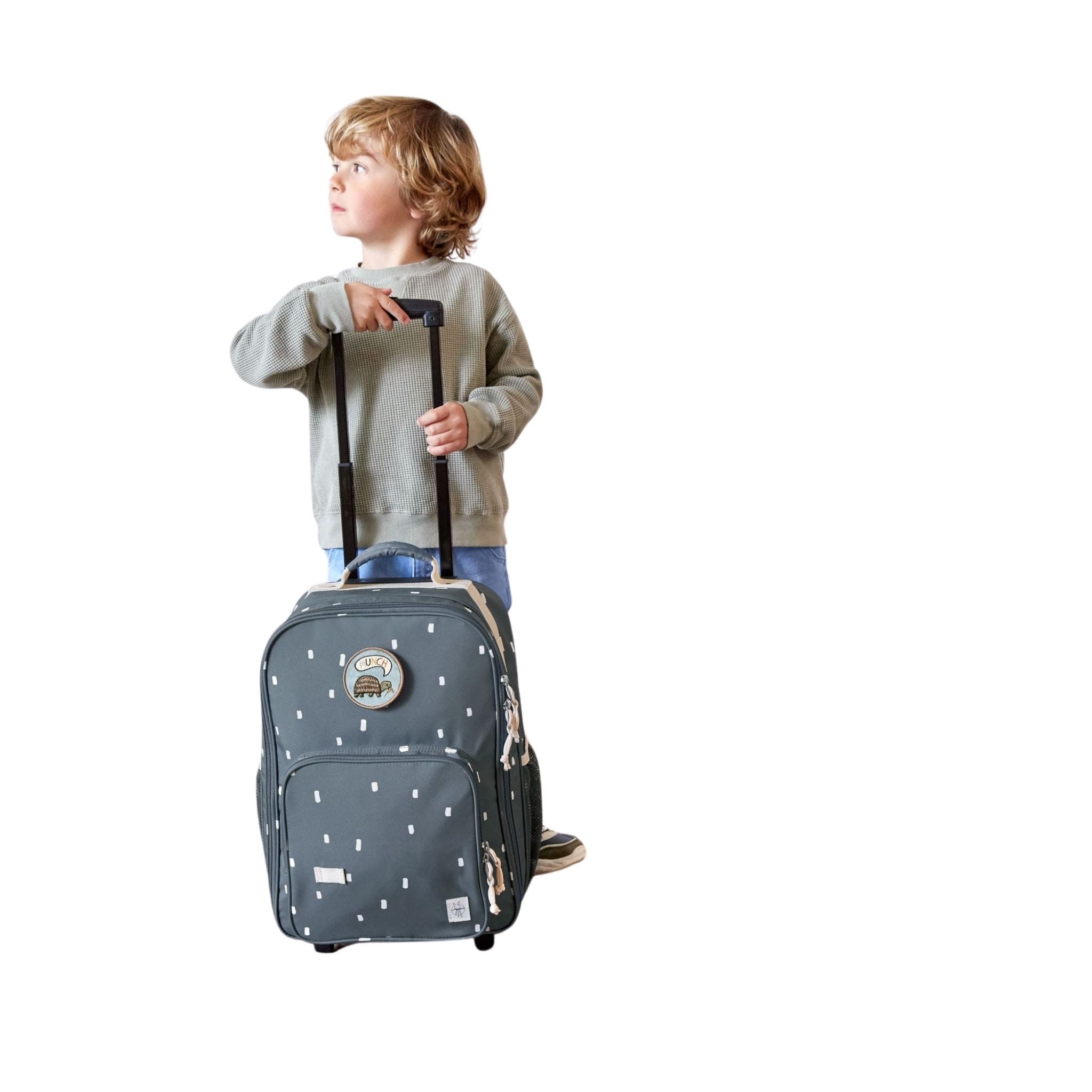 Lassig Happy Prints Çocuk Çekçekli Çanta, gece mavisi rengi ve sade çizgileriyle hem modern hem de işlevsel bir seyahat çantasıdır. Çocukların seyahatlerini daha keyifli ve pratik hale getirmek için tasarlanan bu bavul, kişiselleştirilebilir yapısıyla da öne çıkar. Valizin geniş ana bölmesi, tatil veya kısa yolculuklar için gerekli kıyafetlerin ve eşyaların düzenli bir şekilde taşınmasına imkân tanır. İç kısımda bulunan çapraz sabitleme kayışları, eşyaların güvenli şekilde sabitlenmesini sağlar. Ayrıca, ön kısımdaki fermuarlı bölme ve iki yan cep, küçük aksesuarlar veya sık kullanılan eşyalar için pratik depolama alanı sunar. Lassig’in Happy Prints koleksiyonuna özel çıkarılabilir yamalar, çocukların kendi bavullarını istedikleri gibi kişiselleştirmelerine imkân tanır. Çıtçıtlı halkalara kolayca takılan bu yamalar, seyahati hem eğlenceli hem de yaratıcı bir deneyim haline getirir. Dayanıklı ve hafif yapıya sahip olan valiz, iki kademeli teleskopik sapı ve kolay döner tekerlekleri sayesinde çocuklar tarafından rahatça taşınabilir. İç kısımda yer alan isim etiketi, valizin kişiye özel kullanımını kolaylaştırır. PFC içermeyen suya dayanıklı dış yüzeyi ile farklı hava koşullarında güvenle kullanılabilir. Lassig Happy Prints Gece Mavisi Çocuk Bavulu, geniş iç hacmi, dayanıklı yapısı ve kişiselleştirilebilir tasarımıyla küçük gezginler için hem şık hem de kullanışlı bir seyahat çözümü sunar.