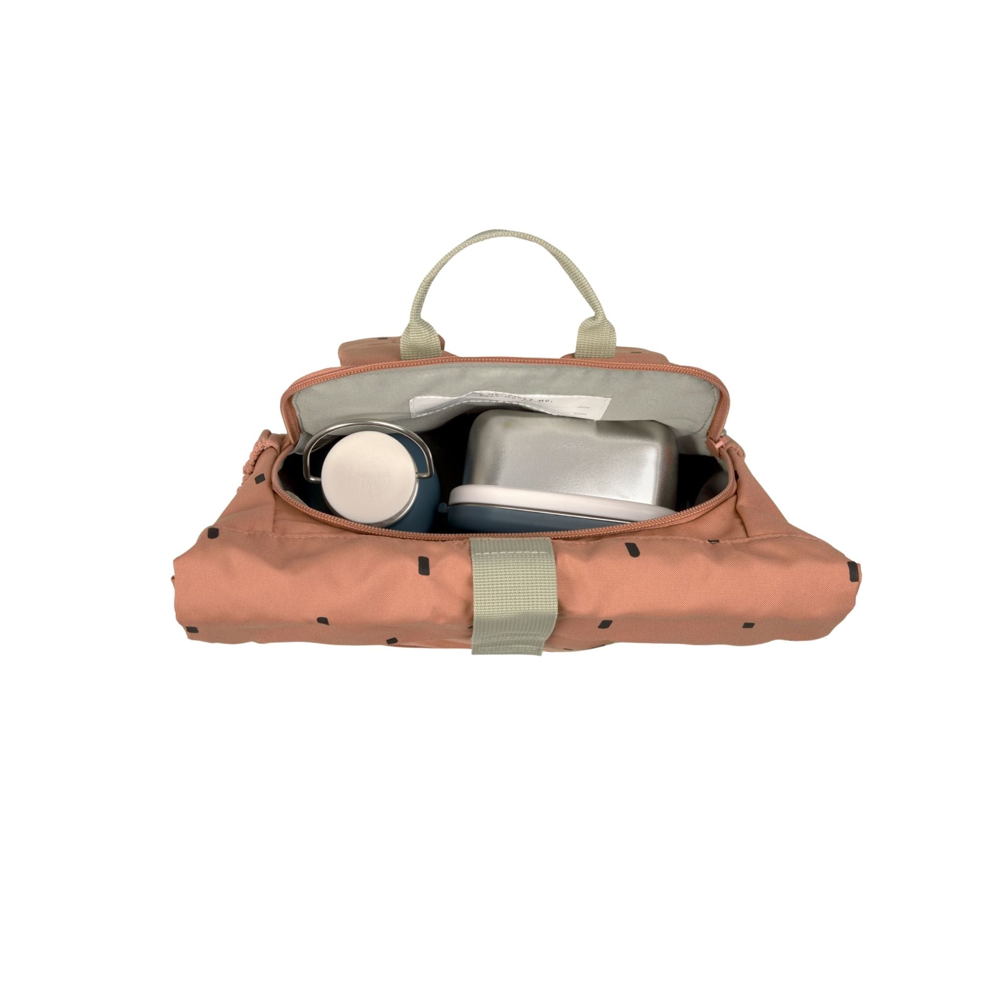 Lassig Happy Prints koleksiyonundan Mini Rolltop sırt çantası, şık karamel rengiyle hem estetik hem de fonksiyonel bir kullanım sunar. Çocuklar için özel olarak tasarlanan bu sırt çantası, anaokulunda, gezilerde ve günlük yaşamda ihtiyaç duyulan pratik çözümleri bir arada sunar. Rolltop tasarımı sayesinde çantanın hacmi kolayca genişletilebilir. 9 litrelik kapasite, üst kısmı açıldığında 11 litreye çıkar ve böylece ek eşyalar için ekstra depolama alanı sağlar. Rolltop kısmı, cırt cırtlı tokalarıyla hızlı ve güvenli bir şekilde açılıp kapatılabilir. Ayrıca arka kısımdaki fermuar, çantanın ana bölümüne doğrudan erişim imkânı verir. Geniş ana bölme, yedek kıyafet, atıştırmalık, oyuncak veya okul malzemelerini kolayca taşımaya uygundur. Yanlarda yer alan elastik cepler, su şişesi ya da şemsiye için ekstra alan sağlar. Çantanın tabanındaki özel bölme, beslenme çantası veya ıslak eşyaları ayırmak için idealdir. Reflektörlü detaylar ve isim etiketi, güvenlik ve kişiselleştirme avantajı sunar. Su geçirmez dış yüzeyi, her hava koşuluna uyum sağlar. Dolgulu omuz askıları ve göğüs kemeri, çocuğun bedenine göre ayarlanabilir; dolgulu arka panel ise konforlu bir taşıma deneyimi sunar. Sade görünümünün yanında, çocukların yaratıcılıklarını kullanarak yamalarla kişiselleştirebileceği bu model, fonksiyonellik ve şıklığı bir arada sunarak günlük yaşamda vazgeçilmez hale gelir.