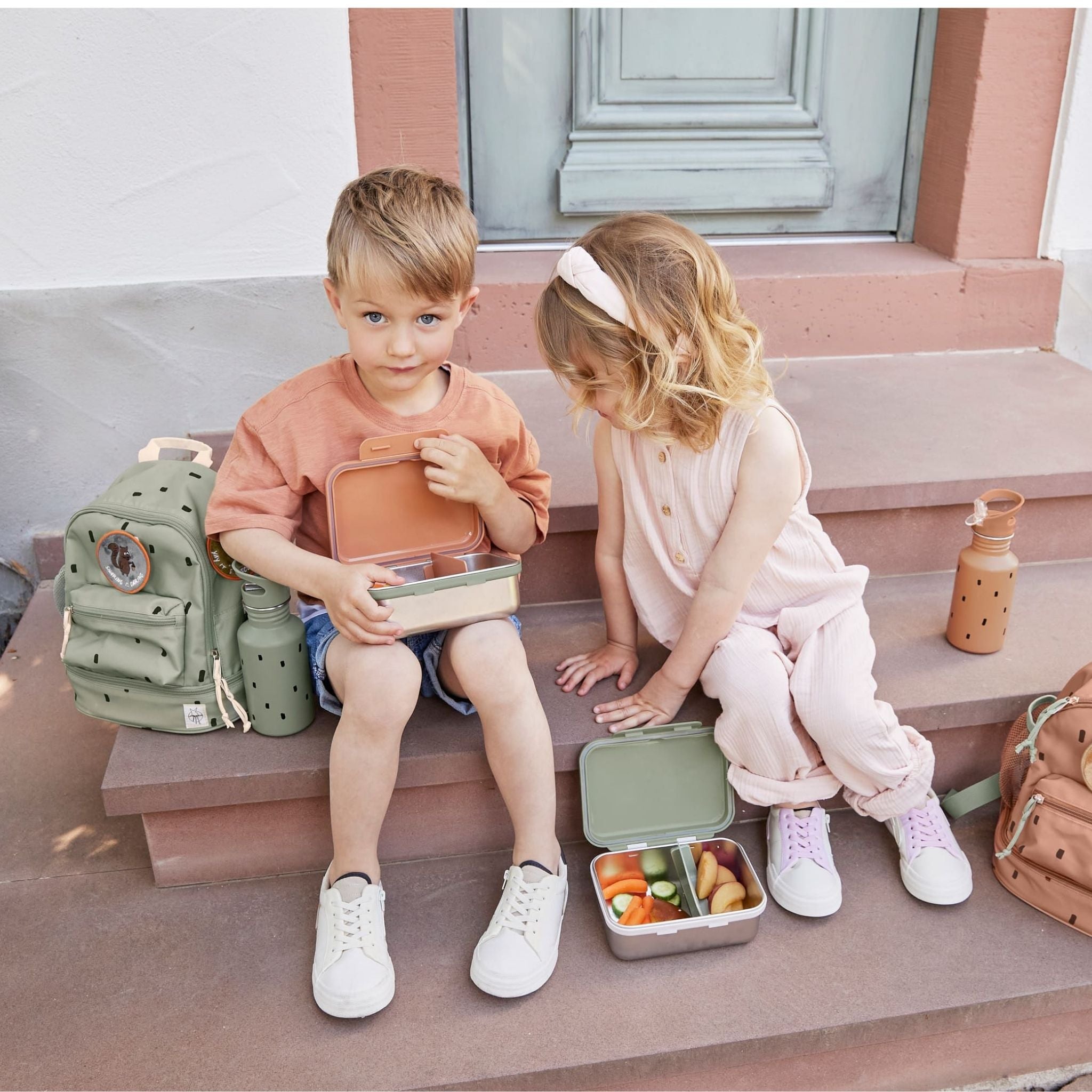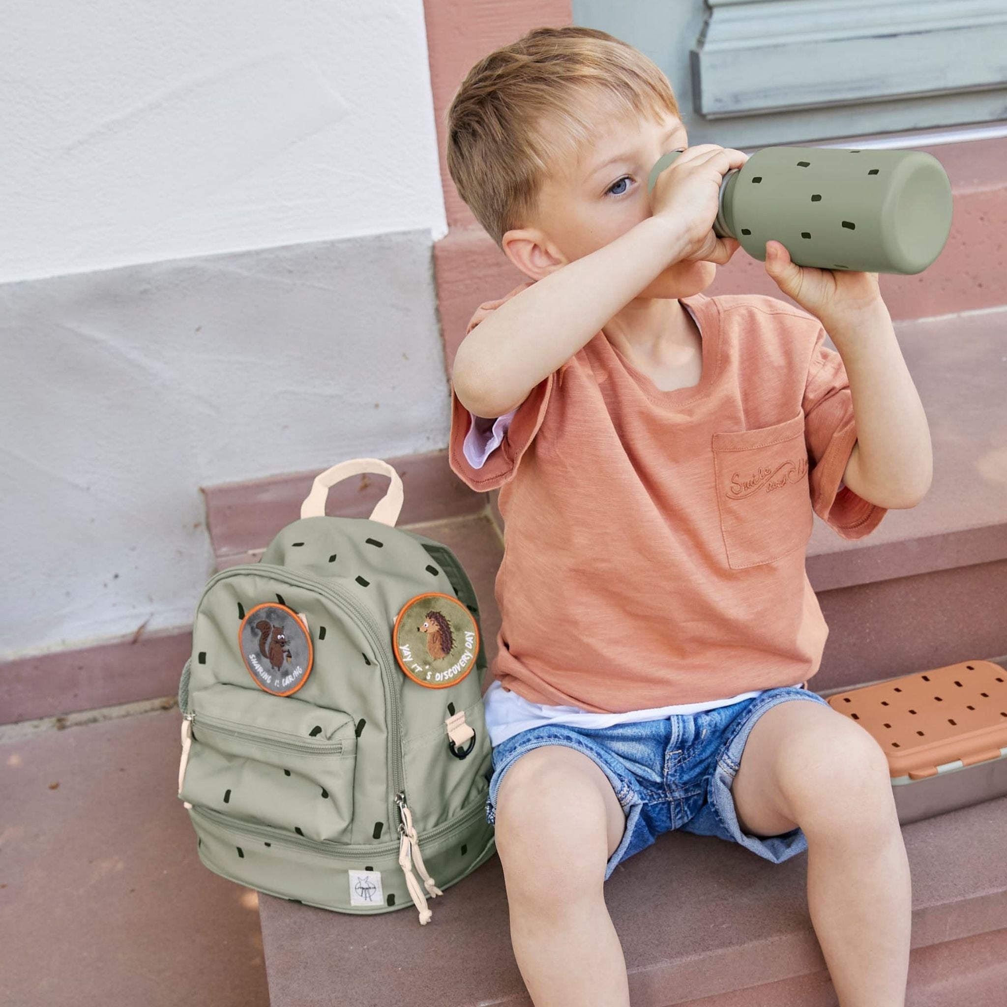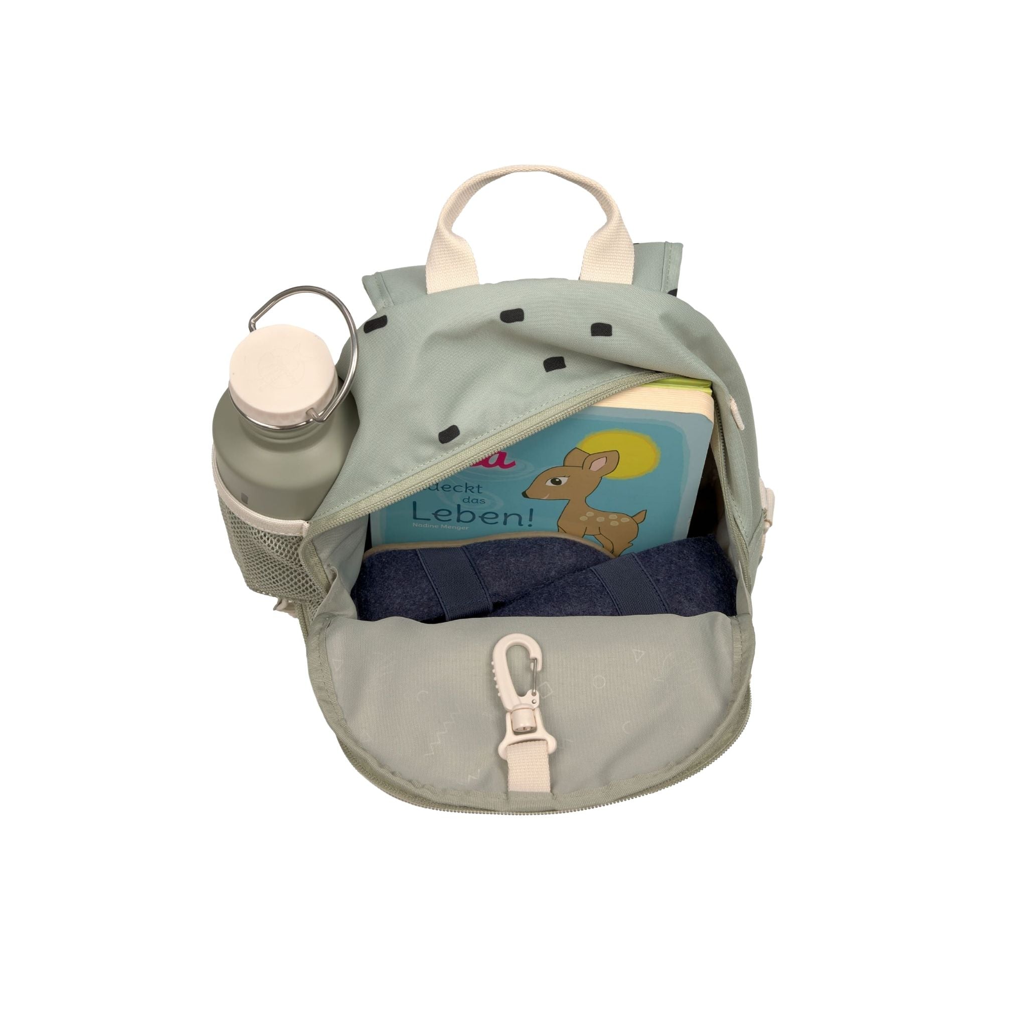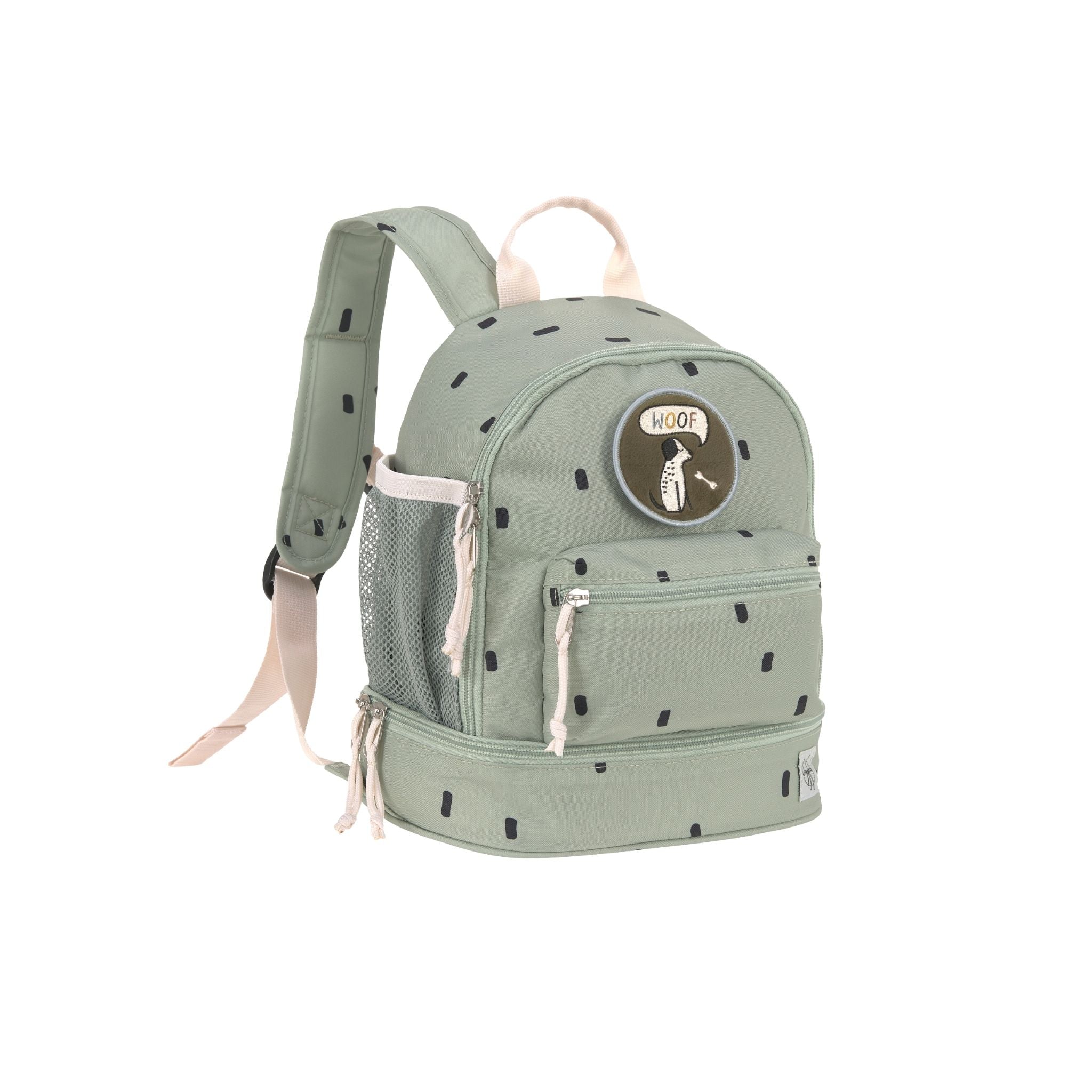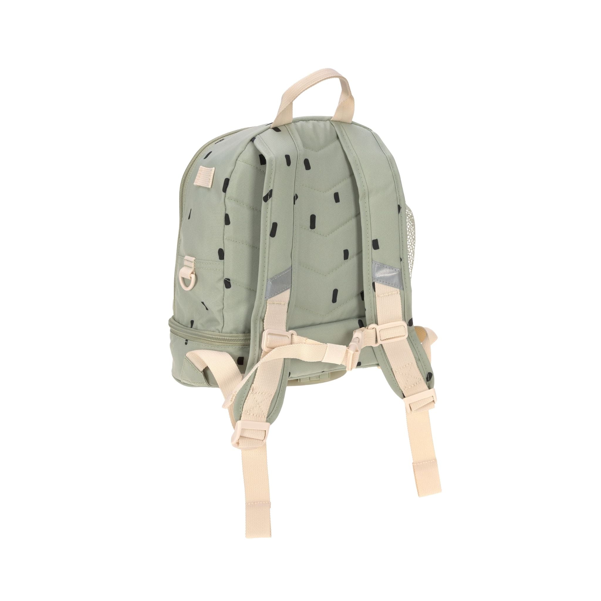 Lassig Happy Prints koleksiyonunun açık zeytin yeşili mini sırt çantası, çocukların hem günlük yaşamda hem de küçük maceralarında yanlarından ayırmak istemeyecekleri şık ve işlevsel bir modeldir. Modern ve sade tasarımıyla dikkat çeken bu çanta, kişiselleştirilebilir yapısıyla çocukların yaratıcılığını ön plana çıkarır. Çıtçıtlı halka sayesinde sevimli hayvan yamaları kolayca takılıp çıkarılabilir, böylece minikler çantalarını kendi zevklerine göre süsleyebilir. Su geçirmez dış malzemesi sayesinde yağmurlu günlerde bile içindekiler güvenle korunur. Dolgulu omuz askıları ve ayarlanabilir göğüs kemeri, çocuğun bedenine uygun konforlu bir kullanım sağlar. Geniş ana bölmesi, öğle yemeği kutusu, meyve, atıştırmalıklar ve yedek kıyafetler için yeterli alana sahiptir. Ayrıca alt kısımdaki özel bölmede buz torbası sabitlenerek yiyeceklerin taze kalması sağlanır. Ön cep ve ek küçük cepler, anahtar gibi küçük eşyaların güvenle saklanmasına imkân tanırken, yan file cep ise su şişesi için idealdir. İç kısımda yer alan isim etiketi sayesinde karışıklıkların önüne geçilir. Hem pratik hem de çevre dostu olan bu mini sırt çantası, PETA onaylı vegan ve PFC içermeyen kaplamasıyla öne çıkar.
