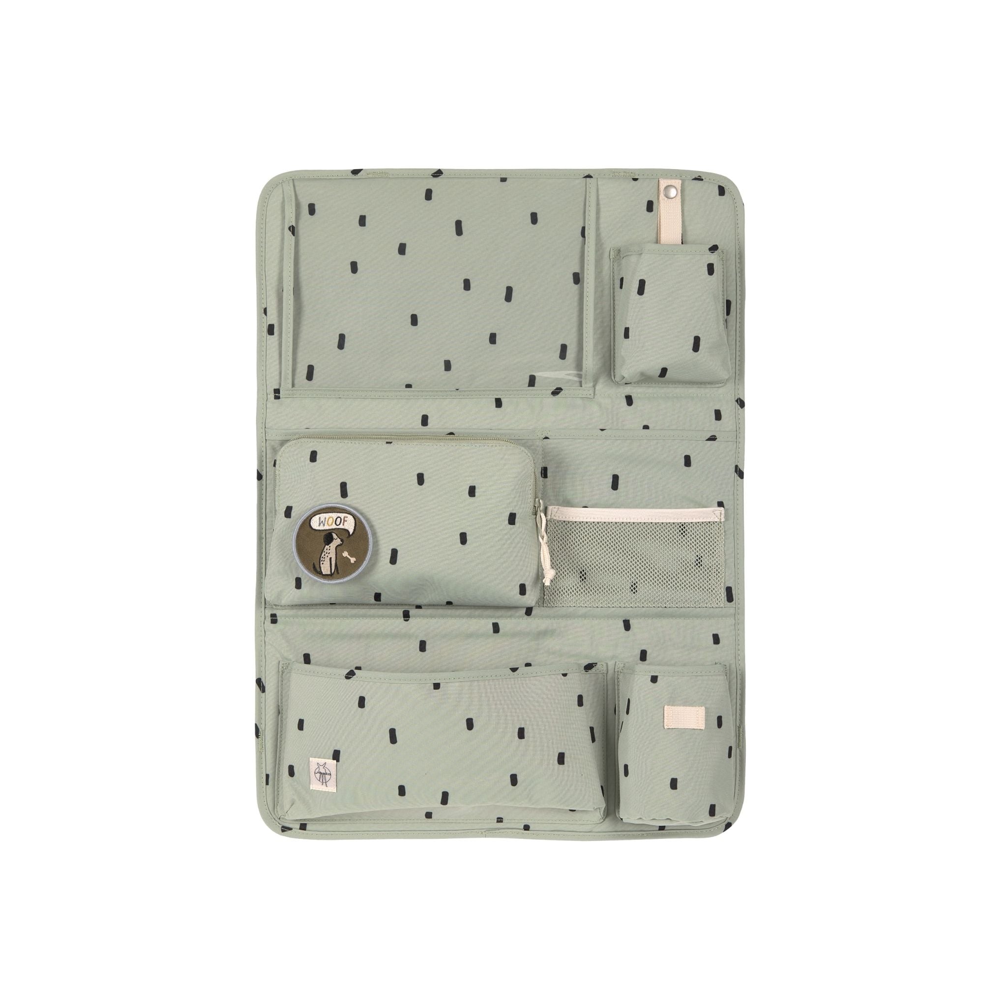 Lassig Happy Prints koleksiyonundan Açık Zeytin araç kaplaması, çocuklu aileler için konforlu ve düzenli yolculukların anahtarıdır. Arabanın koltuk arkasına kolayca takılabilen bu pratik düzenleyici, uzun ya da kısa yolculuklarda çocukların ihtiyaç duyduğu tüm eşyaları el altında tutar. Oyuncaklardan kitaplara, atıştırmalıklardan tabletlere kadar her şey için özel saklama bölmeleri bulunur. Fermuarlı ve cırt cırtlı cepler sayesinde eşyalar güvenle saklanır ve yolculuk sırasında kolayca erişilebilir. Ayrıca 26 x 18,5 cm ölçülerindeki şeffaf tablet cebi, çocukların favori çizgi filmlerini ve videolarını rahatça izlemelerine imkân tanır. Yan kısımdaki sabitleme halkası ise kulaklık gibi aksesuarlar için pratik bir çözüm sunar. Su geçirmez dış yüzeyi sayesinde dökülmelere ve küçük kazalara karşı dayanıklıdır; nemli bir bezle kolayca temizlenebilir. Çocuklar için eğlenceli hale getirilen bu organizer, Lassig ’in sevimli hayvan yamalarıyla kişiselleştirilebilir. Böylece işlevselliğin yanı sıra yaratıcılığı da destekler.
