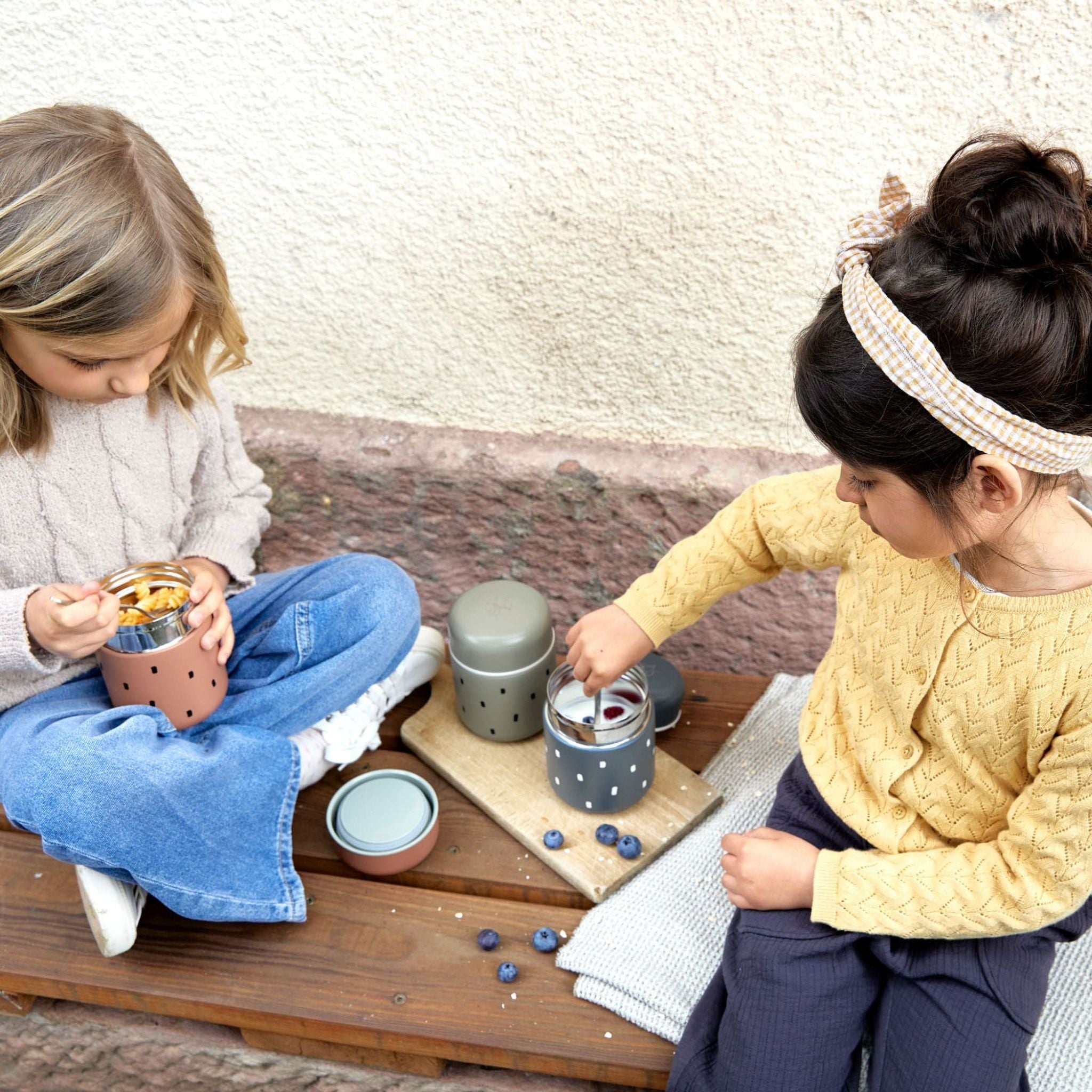 Lassig ’in Happy Prints koleksiyonundan karamel renkli orta boy gıda kavanozu, şıklığı ve işlevselliği bir araya getirerek günlük yaşamda pratik kullanım sunuyor. Çift cidarlı paslanmaz çelik yapısı sayesinde yiyecekleri uzun süre taze tutar ve ideal sıcaklıkta korur. 350 ml kapasitesiyle çocukların okul, kreş, park veya seyahatlerde yanlarında kolayca taşıyabilecekleri ideal bir termos kaptır. Yoğurt, çorba, meyve ya da sağlıklı atıştırmalıkların güvenle saklanmasına olanak tanır. Sızdırmaz silikon contalı kapağı sayesinde dökülme ve akma riski ortadan kalkar, ebeveynlere gönül rahatlığı sağlar. Kompakt ve hafif tasarımı çantalara kolayca sığar, geniş ağız kısmı sayesinde doldurması, kullanması ve temizlemesi oldukça rahattır. BPA içermeyen malzemelerden üretilmiş olması güvenli kullanım sunarken sağlam ve kırılmaz yapısı uzun süreli kullanım için dayanıklılık sağlar. Happy Prints koleksiyonunun modern ve sade tasarımıyla dikkat çeken Lassig karamel gıda kavanozu, hem estetik görünümü hem de fonksiyonel yapısıyla çocukların günlük hayatındaki en pratik yardımcılarından biri olacak.