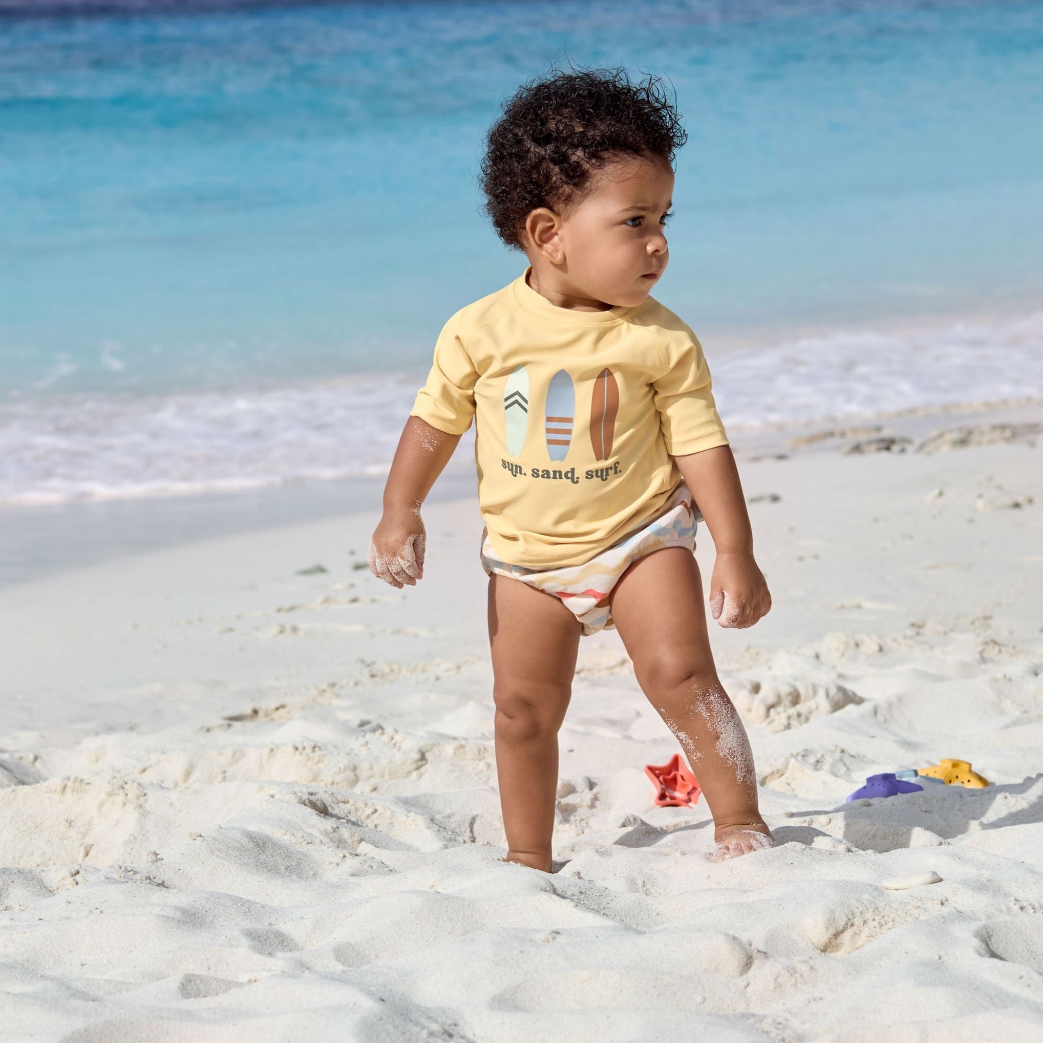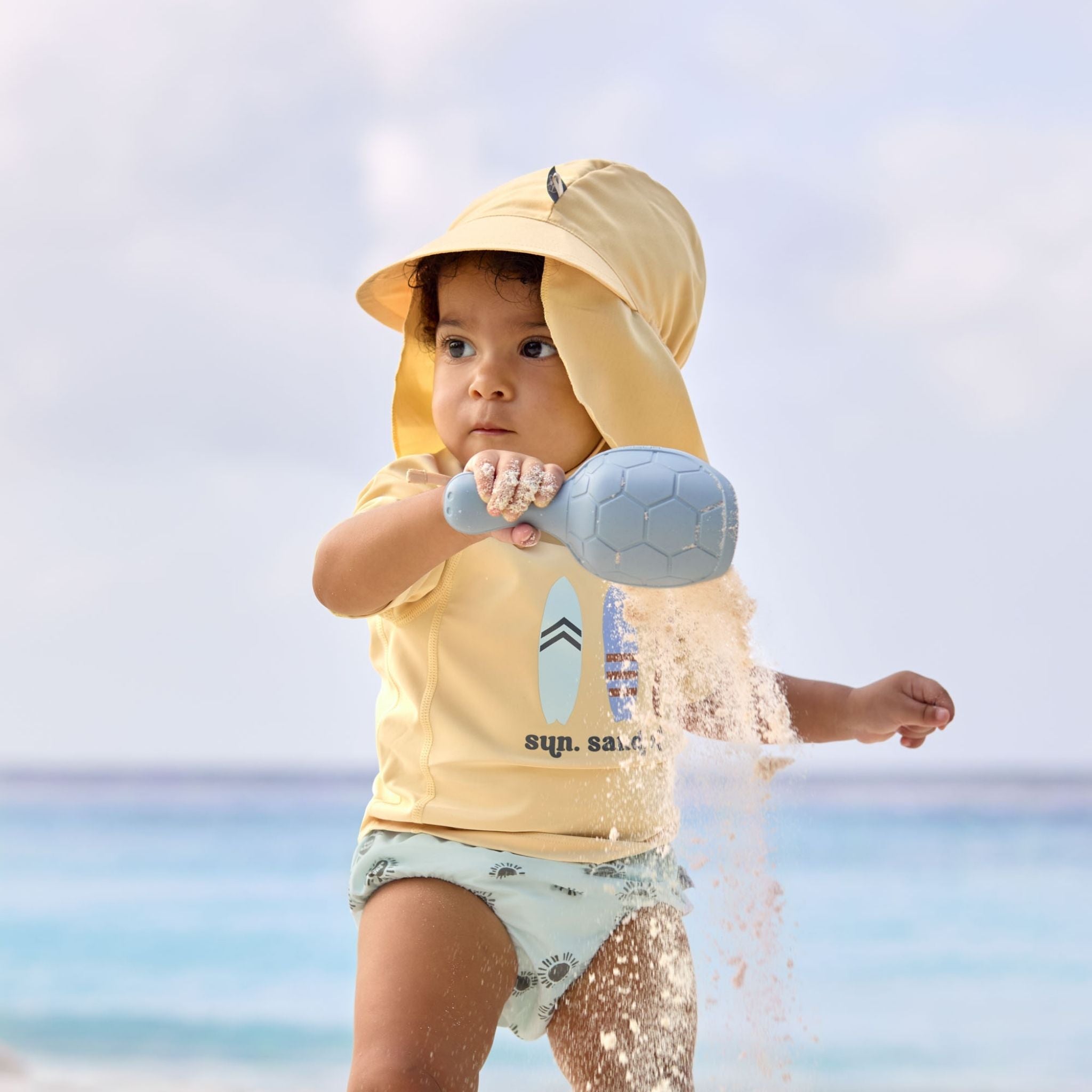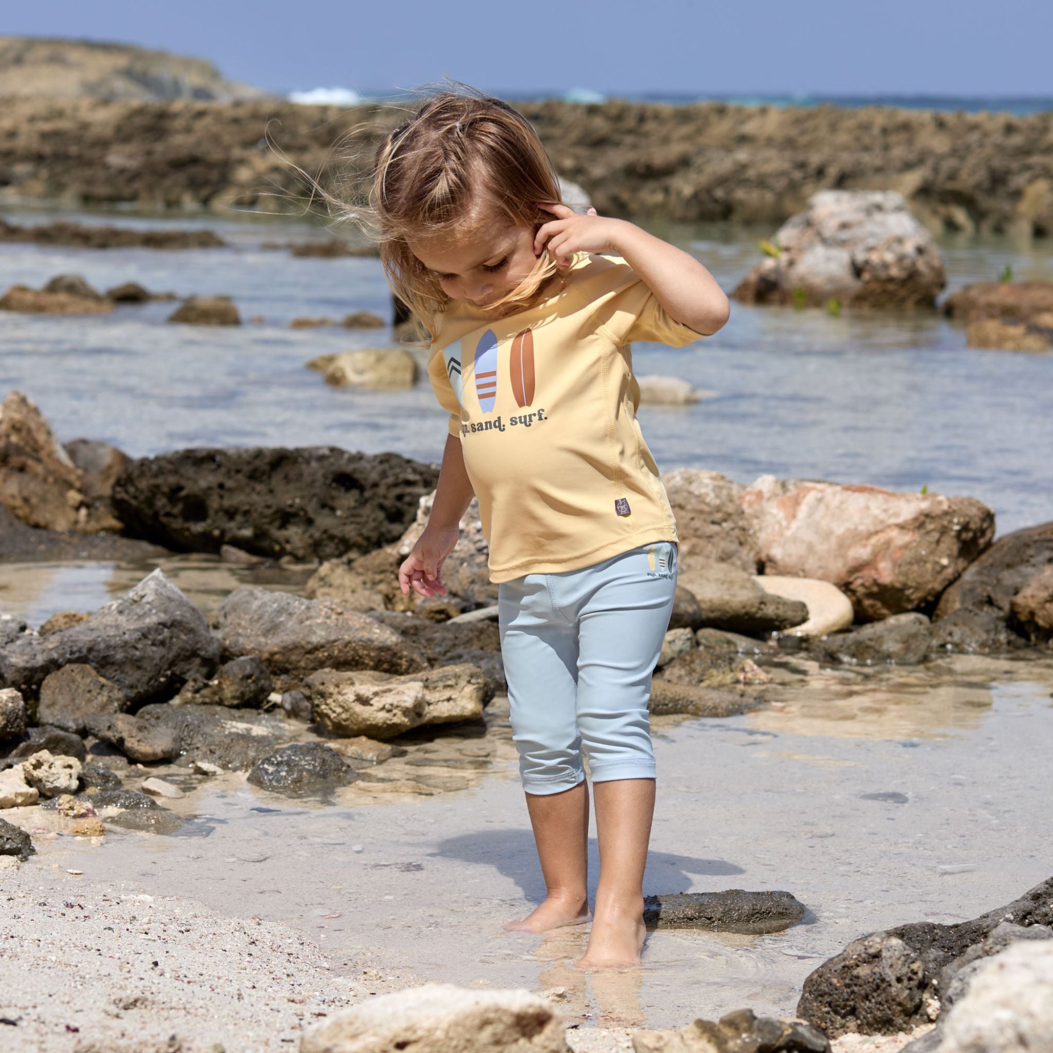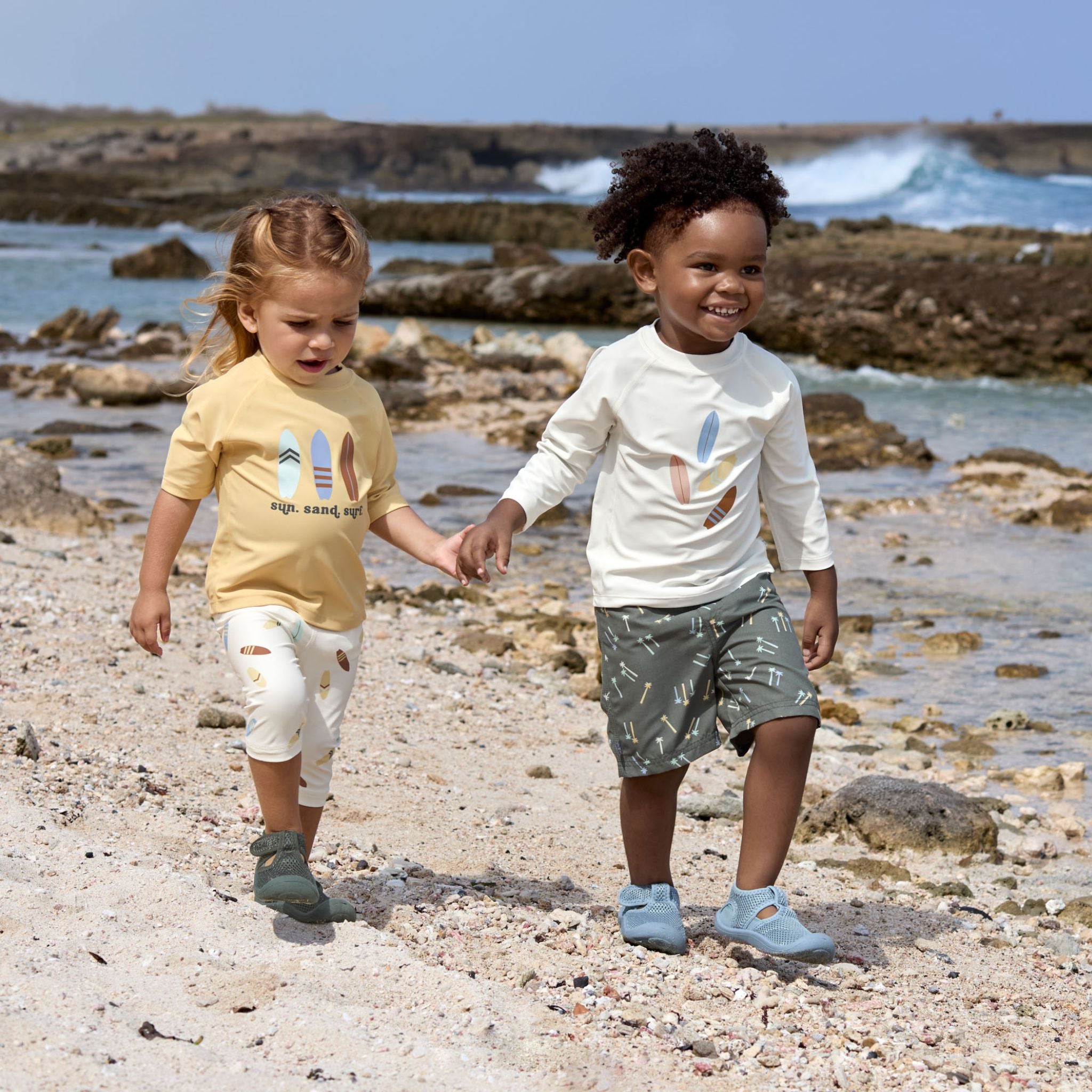 Lassig Surfboards UV Korumalı Kısa Kollu Mayo Tişört Vanilla; sade zarafeti deniz tutkusuyla buluşturan özel bir yaz tasarımıdır. Doğal tonların huzurunu taşıyan bu mayo tişört, sörf tahtası desenleriyle hareketlendirilmiş ve çocukların güneşli günlerde hem korunmasını hem de şıklığını ön planda tutacak şekilde geliştirilmiştir. Krem rengin yumuşaklığı, güneş ışığını nazikçe yansıtırken, Lassig ’in geri dönüştürülmüş malzeme kullanımı sayesinde doğaya saygılı bir tercih sunar. Hafif yapısı, hızlı kuruyan dokusu ve esnek kumaşıyla çocukların deniz kenarında, havuz başında veya açık hava oyunlarında rahatlıkla kullanabileceği bir üründür. UPF faktörü olmadan da güneşten doğal koruma sağlayan kumaş, hassas ciltler için güvenli bir bariyer görevi görür.