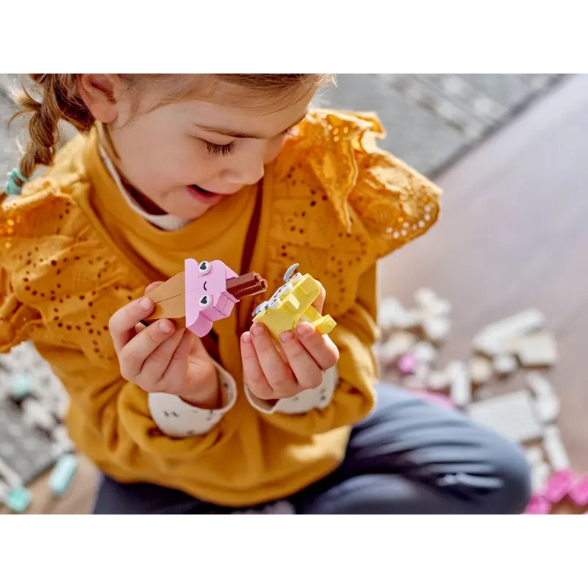 LEGO Classic Yaratıcı Pastel Eğlence (11028) ile minik model severlere ilham verin. Hızlı inşa edilebilir modeller ve sınırsız serbest yapım eğlencesi sunan bu göz alıcı set, çocuklara sanat ve tasarım tutkusu aşılar. Pastel seçmeli yaratıcı oyunlar Bu yaratıcı yapım seti, çeşitli şekillerde, boyutlarda ve pastel renklerde 333 yapım parçası içerir. Yapım parçalarından 18'i, çocukların modellerini canlandırmak için kullanabilecekleri ifadeli gözlere sahiptir. Bulut, dondurma, dinozor, kedi ve robot olmak üzere 5 yapımı kolay model için kolay anlaşılır basılı yapım talimatları dahildir. Yaratıcı öz güvenleri geliştikçe çocuklar, sınırsız serbest yapım eğlencesini keşfedebilir. Setin yapım talimatlarının dijital versiyonuna LEGO Builder uygulamasından da ulaşılabilir. Tüm aile için harika Classic 5+ oyuncakları, çocuklara ilham verici fikirler sunar ve yetişkinlerin, yapım eğlencesini ve gelişimsel aşamaları çocuklarıyla paylaşmaları için mükemmel bir fırsat sunar.