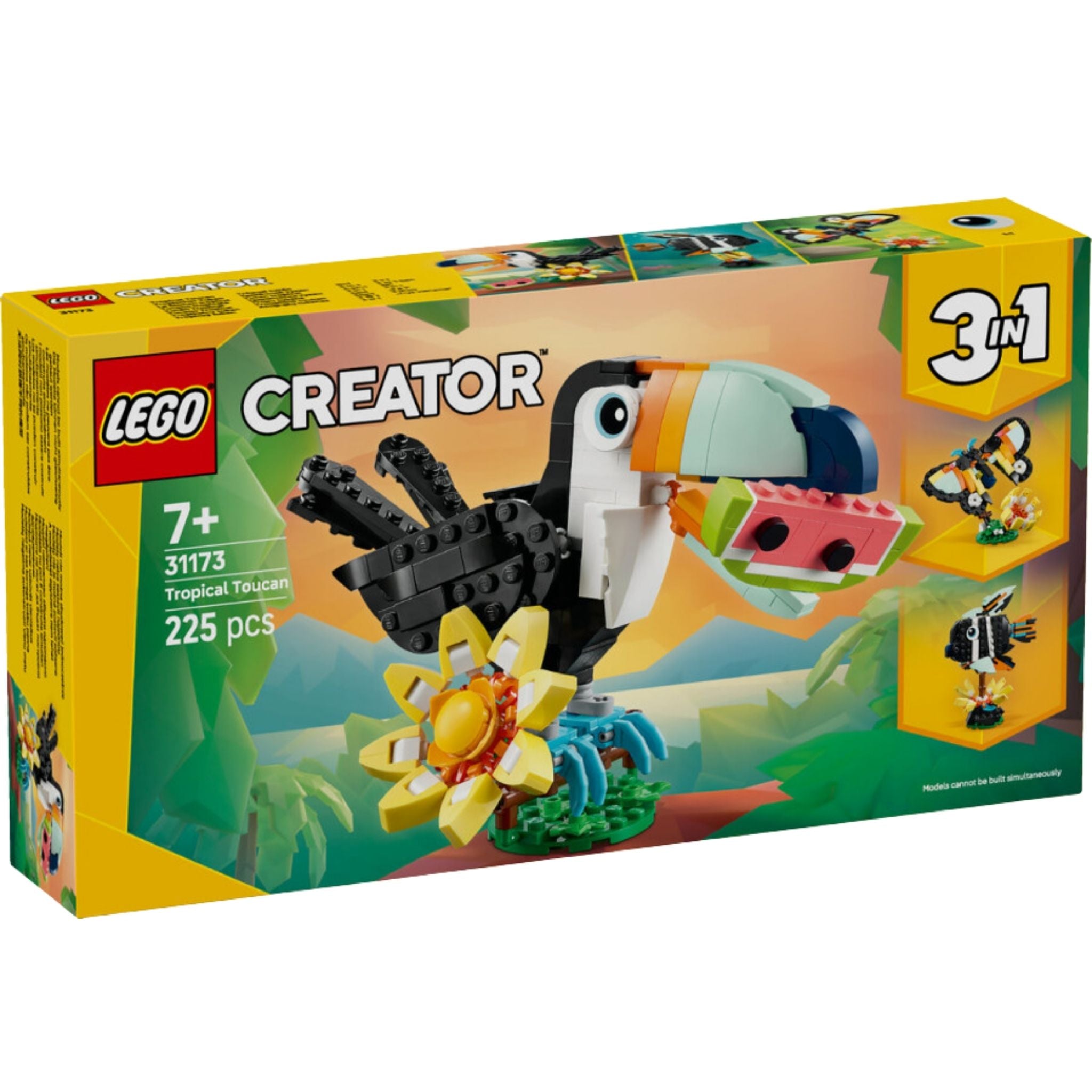 Lego Creator 3 in 1 Vahşi Hayvanlar: Tropikal Tukan Kuşu seti, doğa ve hayvan sevgisini oyunla buluşturuyor. 225 parçadan oluşan bu set, 7 yaş ve üzeri çocuklara üç farklı tropikal hayvan yapma imkânı sunar. Çocuklar ister rengarenk bir tukan kuşu, ister zarif bir kelebek, isterse tropikal bir balık inşa ederek keyifli anlar yaşayabilir. Oyuncak tukan kuş, parçalarla yapılan büyük bir çiçekle kaplı dalın üzerinde durur ve gagası, kanatları ile kuyruk tüyleri hareket ettirilebilir. Kelebek modeli çiçek standında kanatlarını oynatabilir, tropikal balık ise deniz tabanı standında yüzgeçlerini hareket ettirip 360 derece döndürülebilir. Bu özellikler, çocukların oyun deneyimini daha gerçekçi hale getirir. Set, yalnızca eğlenceli bir oyun aracı değil, aynı zamanda şık bir dekor parçası olarak da kullanılabilir. Oyun zamanı bittiğinde hayvan figürleri standlarına yerleştirilerek odalarda sergilenebilir. Lego Creator 3’ü 1 Arada Vahşi Hayvanlar: Tropikal Tukan Kuşu, tropikal hayvanları seven çocuklara hem yaratıcı hem de eğlenceli bir oyun ve sergileme deneyimi sunar.