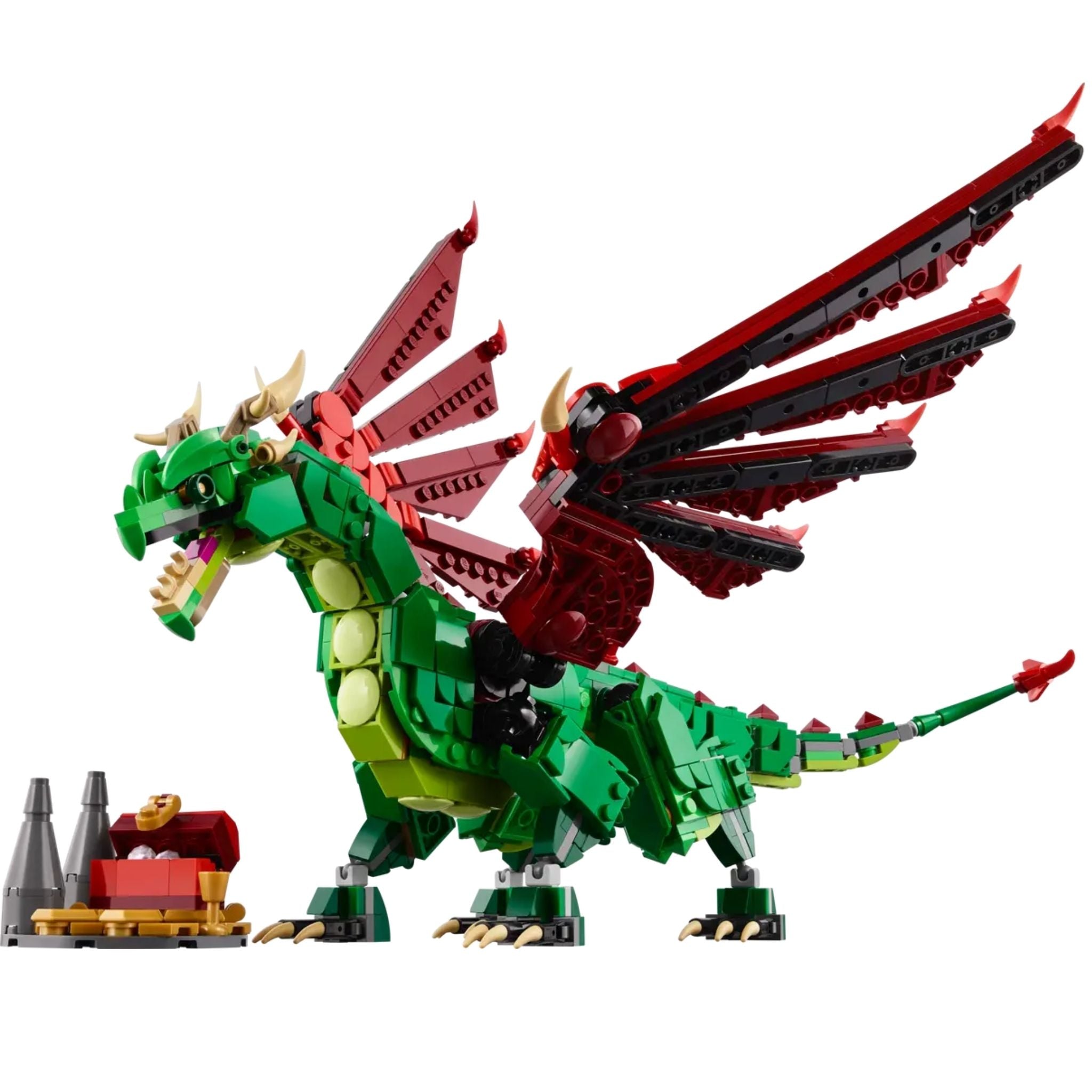 9 yaş ve üzeri çocuklar için tasarlanan Lego Creator Orta Çağ Ejderhası (31161) seti, efsanevi yaratıkları seven küçük maceraperestler için unutulmaz bir oyun deneyimi sunar. Orta çağ temalı bu set, devasa kanatlara sahip ejderha figürü ile çocukların hayal gücünü ateşler. Ejderhanın yukarı-aşağı hareket eden ve içeri-dışarı katlanabilen kanatları, pozlandırılabilir boynu, çenesi, omuzları ve bacakları sayesinde dinamik sahneler oluşturulabilir. Ayrıca kutuda bulunan hazine sandığı, oyun deneyimini daha heyecanlı hale getirir. Lego Creator 3’ü 1 Arada serisinin bir parçası olan bu set, çocuklara tek bir kutu içinde üç farklı fantastik model yapma fırsatı verir. Ejderha dışında, hareketli deniz yılanı veya görkemli Anka kuşu figürü de aynı parçalarla inşa edilebilir. Böylece çocuklar tekrar tekrar inşa ederek sınırsız bir oyun deneyimi yaşar. Ayrıca Lego Builder uygulaması, çocuklara 3D yakınlaştırma ve döndürme özellikleriyle kolay ve eğlenceli bir yapım süreci sunar.