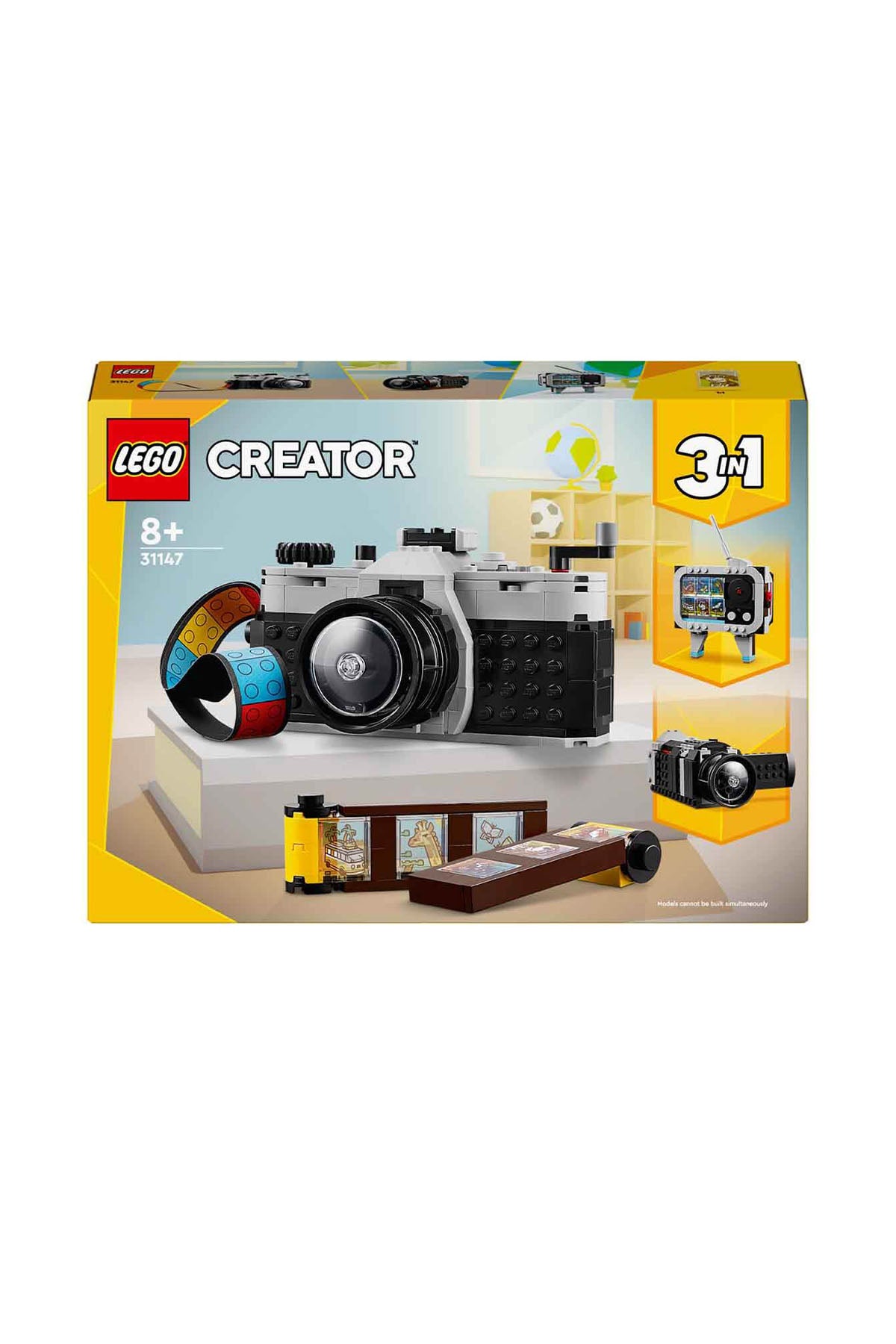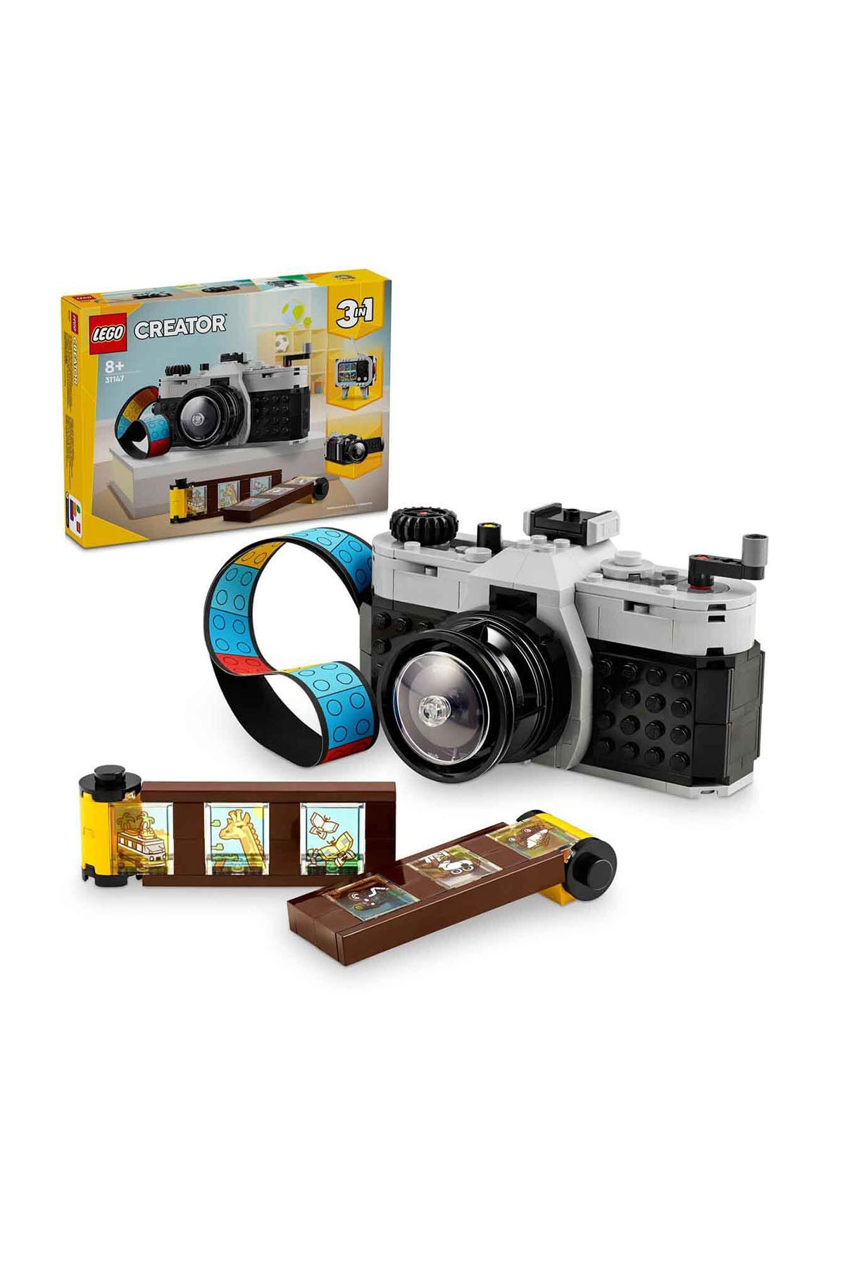 Lego Creator Retro Fotoğraf Makinesi 31147, klasik fotoğraf makinelerinin nostaljik atmosferini Lego parçalarıyla yeniden oluşturmanızı sağlar. Detaylı tasarımı, fonksiyonel parçaları ve dönüşebilir yapısıyla hem yetişkin koleksiyonerlere hem de yaratıcı çocuklara hitap eden özel bir modeldir. Setin ana modeli olan retro fotoğraf makinesi, hareket eden lensi, üstündeki işlevsel düğme tasarımları ve arkadan açılan film bölmesiyle gerçek bir analog makine hissi verir. Modelde kullanılan çok renkli tekstil kayış, tasarıma dekoratif bir dokunuş katar ve sergileme sırasında estetik bir görünüm sağlar. Ayrıca sete dahil edilen altı farklı fotoğraf çıkartması, çocukların çekilmiş fotoğrafı temsil eden eğlenceli detaylar eklemesine olanak tanır. 3’ü 1 arada yapım özelliği sayesinde set, yalnızca fotoğraf makinesine bağlı kalmaz. Aynı parçalarla retro bir video kamera veya antenli klasik bir televizyon modeli de yapılabilir. Her üç model de sergilemek için ideal dekoratif objelerdir. Yaratıcılığı teşvik eden bu set, hem keyifli bir yapım süreci hem de estetik bir sonuç sunar.