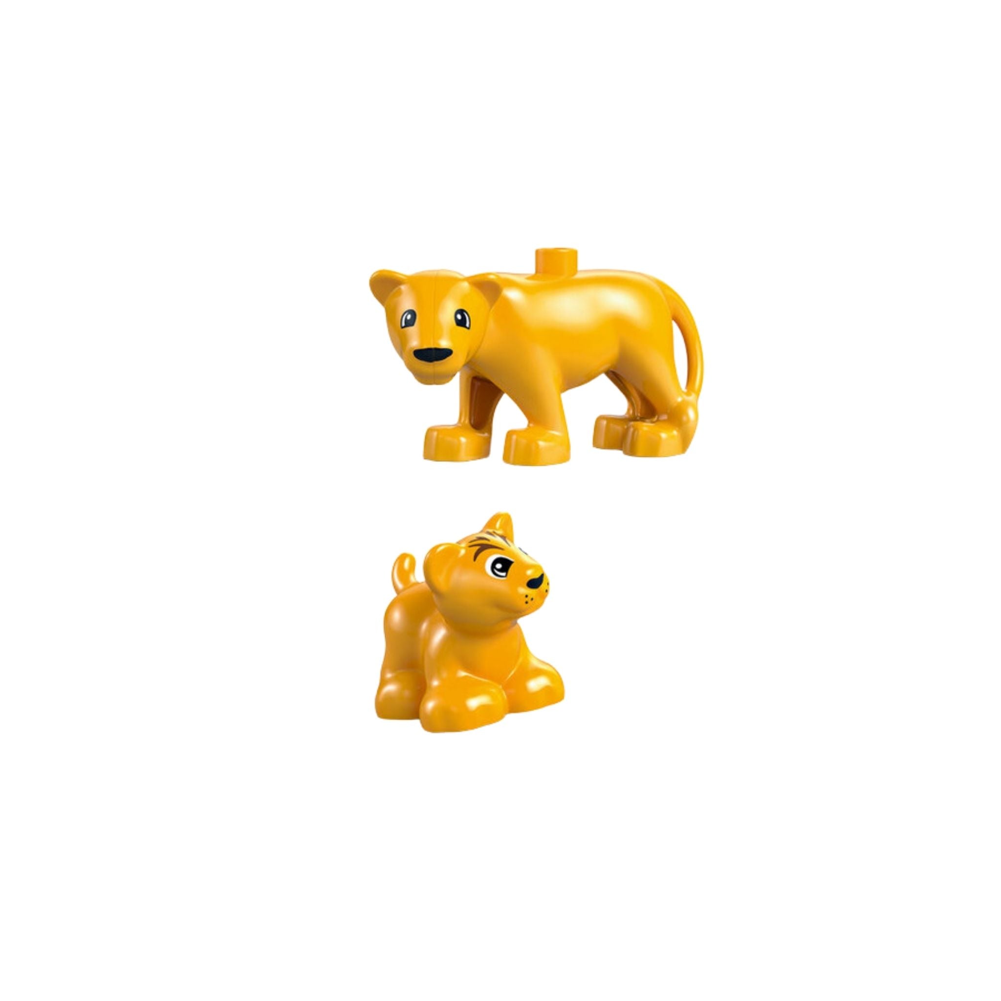 Lego Duplo Penguen ve Aslanlar; 2 yaş ve üzeri minikleri doğa ve hayvan sevgisiyle tanıştıran eğitici bir yapım setidir. Antarktika’nın serinliğiyle Afrika’nın sıcak çayırlarını aynı sahnede buluşturan bu sevimli oyuncak, çocuklara hayal gücüne dayalı oyunlar sunarken ince motor becerilerini de geliştirir. Set içerisinde 2 penguen (ebeveyn ve yavru), 2 aslan (dişi ve yavru), penguenler için bir buz kaydırağı ve aslanlar için çayırlık bir alan bulunur. Bu sayede çocuklar, sıcak-soğuk, büyük-küçük ve ebeveyn-yavru gibi kavramları oyun yoluyla öğrenme fırsatı yakalar. Aile oyunlarına uygun bu set, çocukların sosyal ve duygusal gelişimini desteklemek üzere tasarlanmıştır. Minikler hayvanların yavrularına nasıl baktığını keşfederken, empati kurmayı ve şefkati ifade etmeyi de öğrenirler.