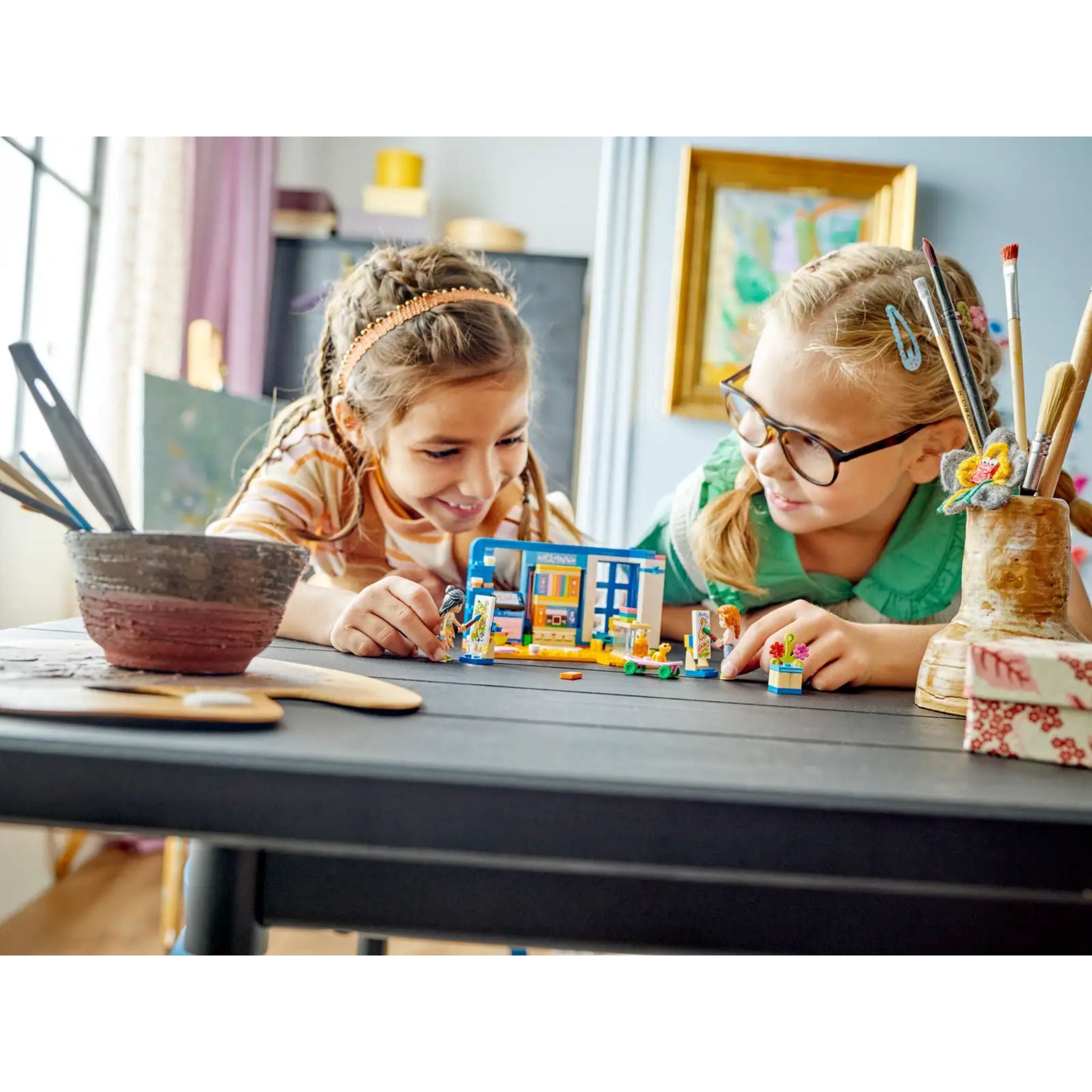Sanatsever çocuklar, resim masası, pencere sediri ve gizli yatağıyla Lego Friends Liann'ın Odası, oyuncak yapım setinde keşfedecek pek çok şey bulacak. Enerjik Liann ve neşeli Autumn arasındaki arkadaşlığı keşfetmeye bayılacaklar. Çocuklar Liann'ın evcil gekosu Popcorn’un resmini çiziyormuş gibi yaparken hayali oyunlar çok kolay. Bu set, ayrıca boya tüpleri, paletler ve şövaleler gibi resim stüdyosu malzemeleriyle yaratıcılığa ilham verecek pek çok aksesuara sahip. Ayrıcaoyuncak donutlar, bardaklar, çizgi romanlar, kaykay, cep telefonu, kalem ve geko Popcorn için teraryum bulunur.