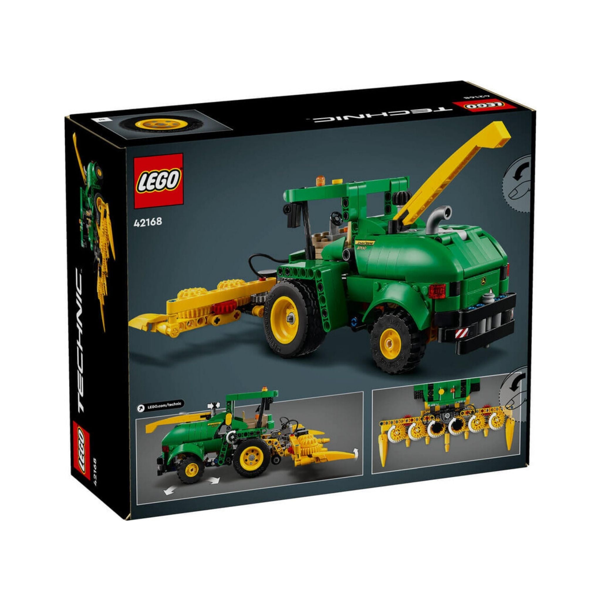 Lego Technic John Deere 9700 Forage Harvester ; tarım makinelerine ilgi duyan 9 yaş ve üzeri çocuklar için tasarlanmış detaylı ve fonksiyonel bir model setidir. 559 parçadan oluşan bu yapı oyuncağı, gerçek John Deere silaj makinelerinden ilham alınarak üretilmiştir. Arka tekerlekten yönlendirme sistemi ve döndürülebilir mısır tablası gibi mekanik fonksiyonlarıyla çocuklara hem oyun hem de mühendislik deneyimi sunar. Model, klasik John Deere renkleriyle dikkat çekerken; mısır tablasının kaldırılıp indirilebilmesi, çocuklara tarım makinelerinin işleyişi hakkında pratik bir bakış açısı kazandırır. Lego Builder uygulamasıyla 3 boyutlu olarak inşa edilebilen model, çocukların problem çözme ve yapım becerilerini geliştirmeye katkı sağlar. Hem koleksiyon hem de oyun için ideal bir tercihtir.