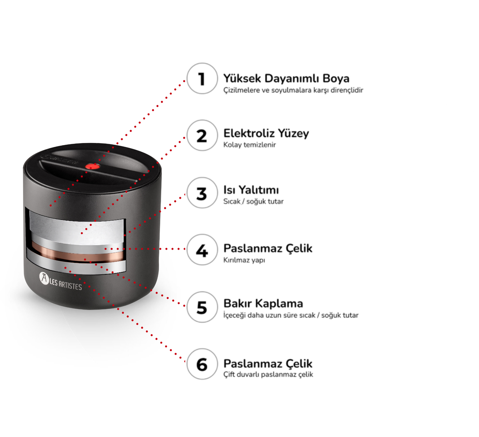 Taşıması kolay ve şık tasarımıyla Les Artistes Paris yemek kutumuz, günlük yaşamınız için ideal bir yol arkadaşıdır. Dayanıklı ve sağlam paslanmaz çelikten üretilen bu kutu, yemeklerinizi güvenli bir şekilde taşımanız için tasarlanmıştır. Hava geçirmez contası ve su geçirmez sistemi, çantanızda veya yolda sızıntı olmamasını sağlar. Ultra dayanıklı kaplaması sayesinde mükemmel dayanıklılık ve kolay bakım garantisi sunar. Les Artistes Paris ile yemeklerinizi güvenle taşımanız için pratik, çevre dostu ve şık bir çözüm seçin.