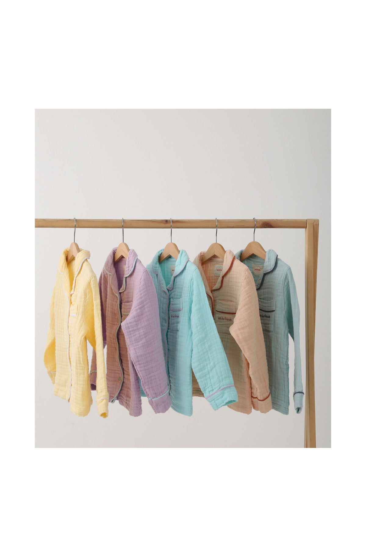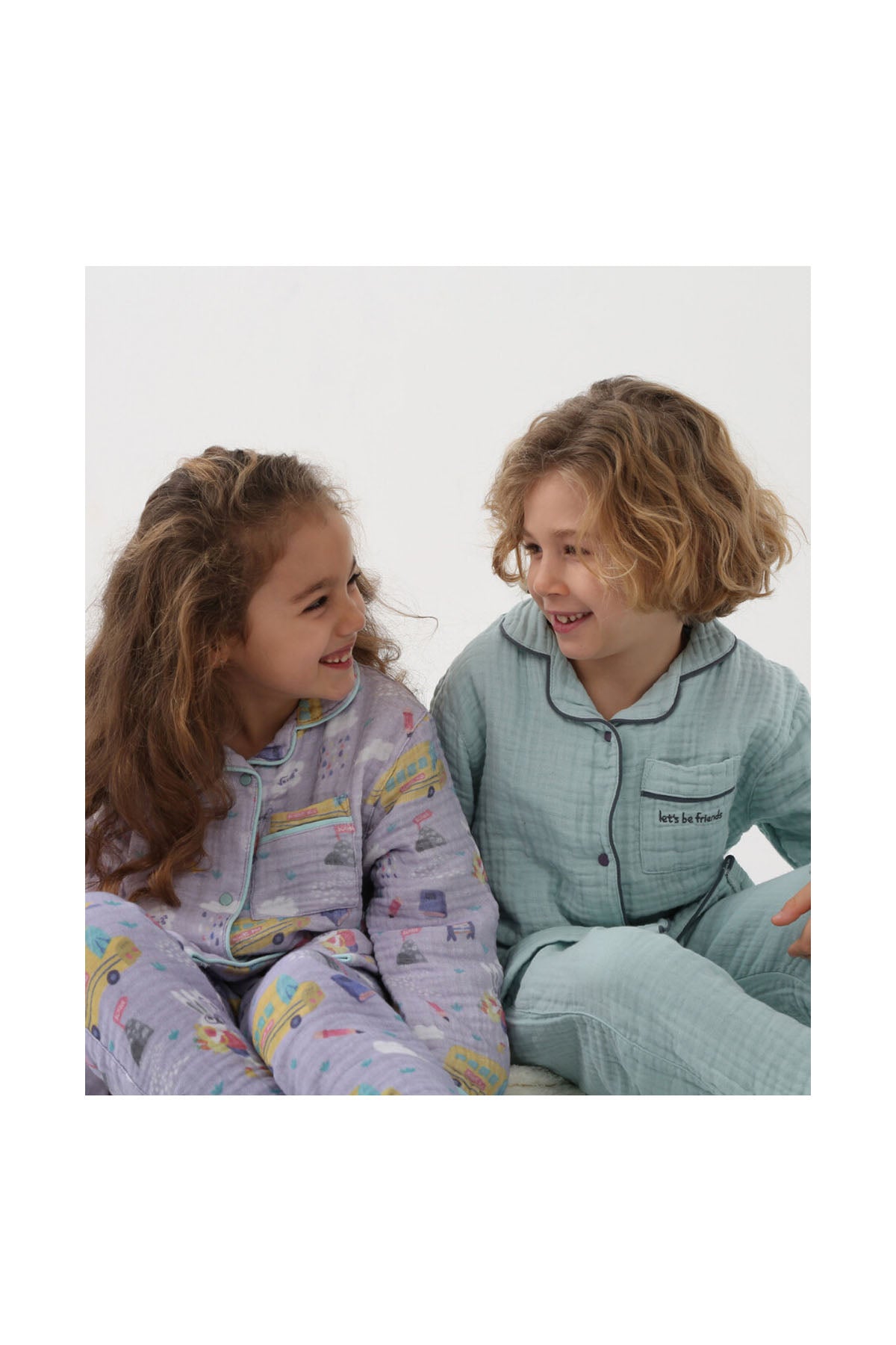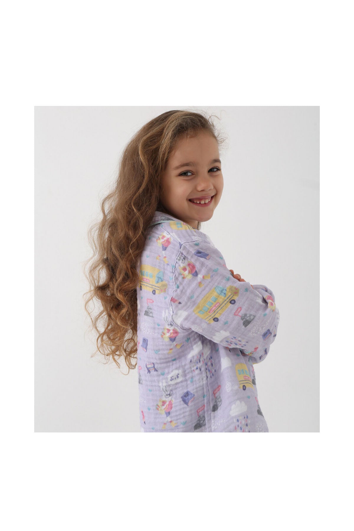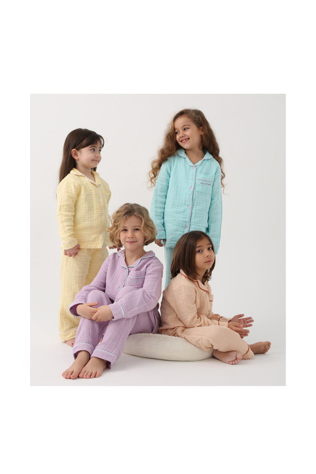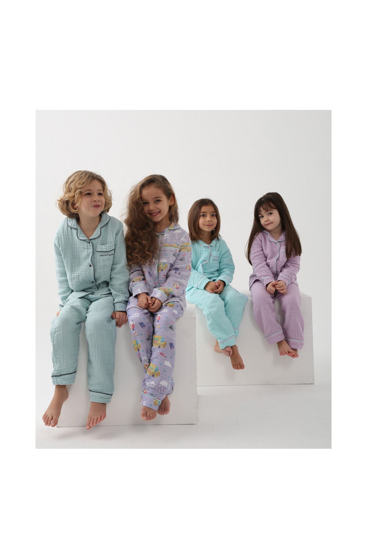 Let's Be Friends Organik Muslin Pijama Takımı Lila;