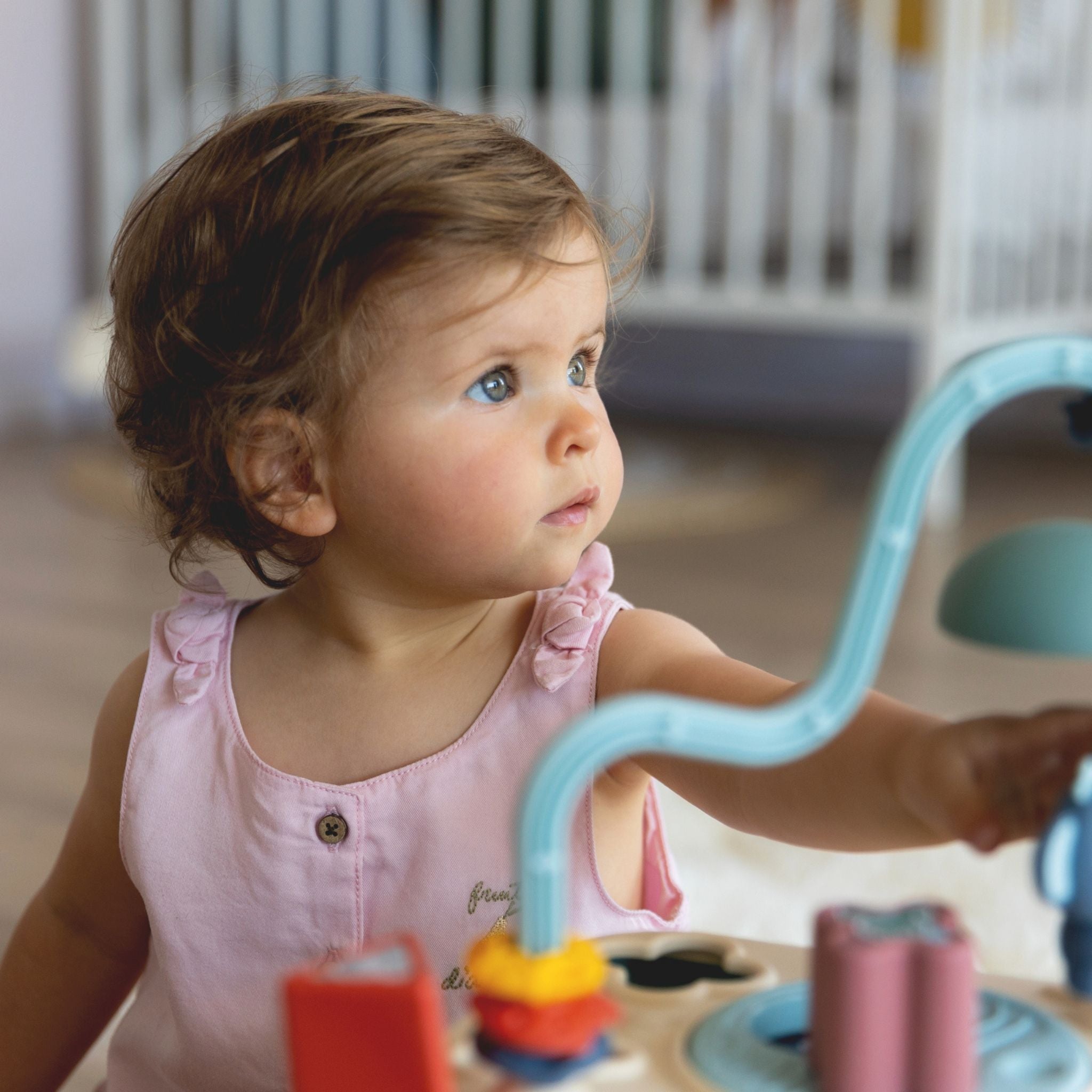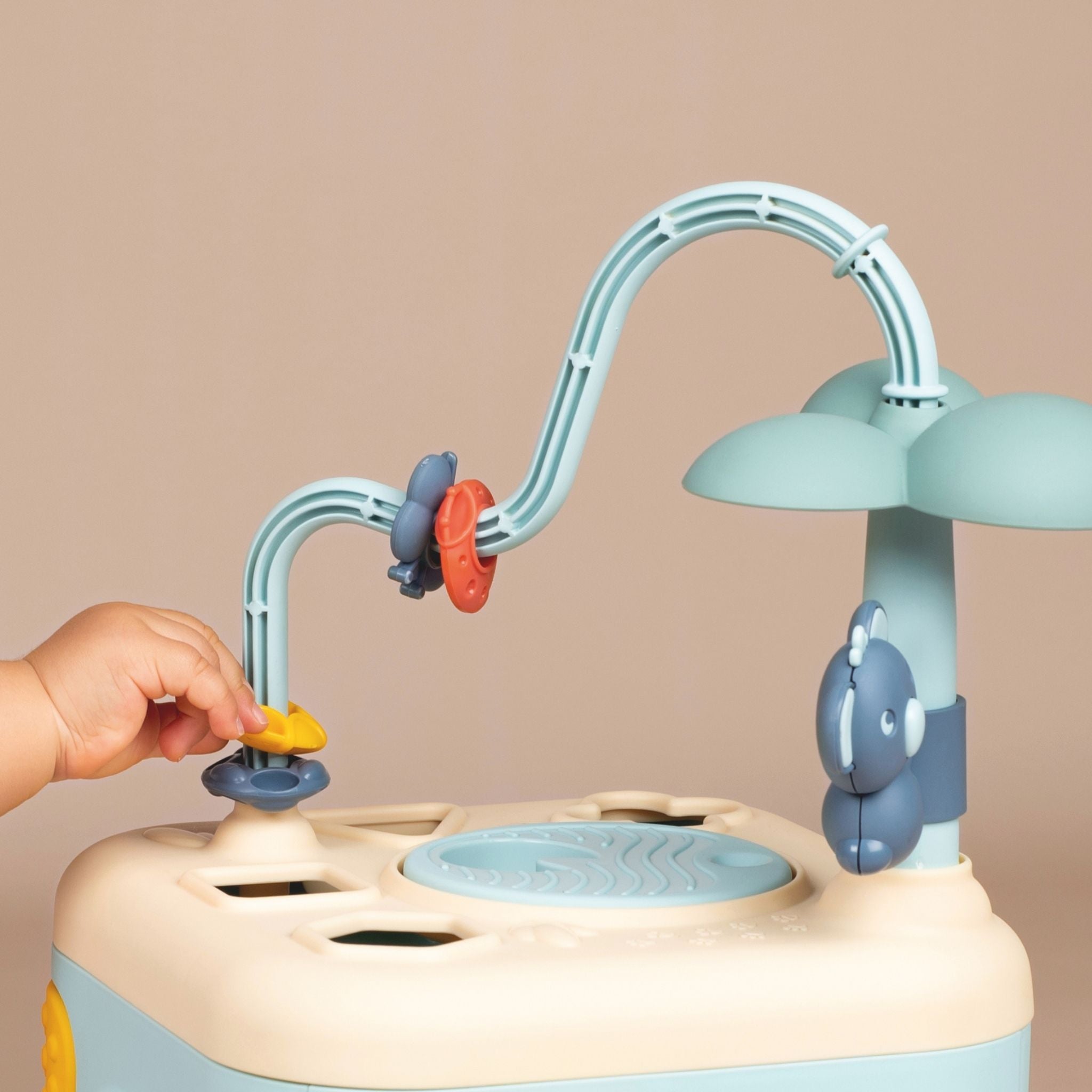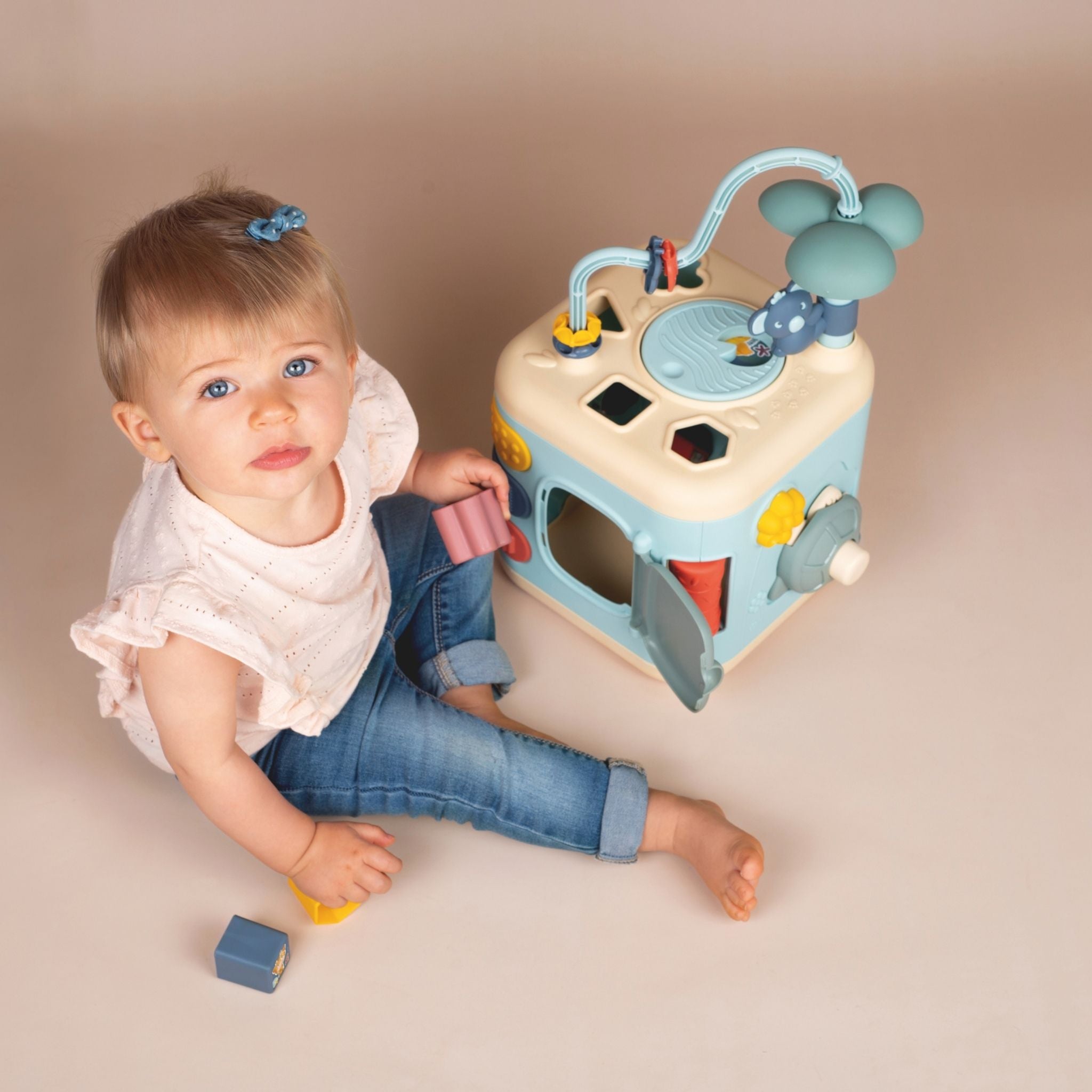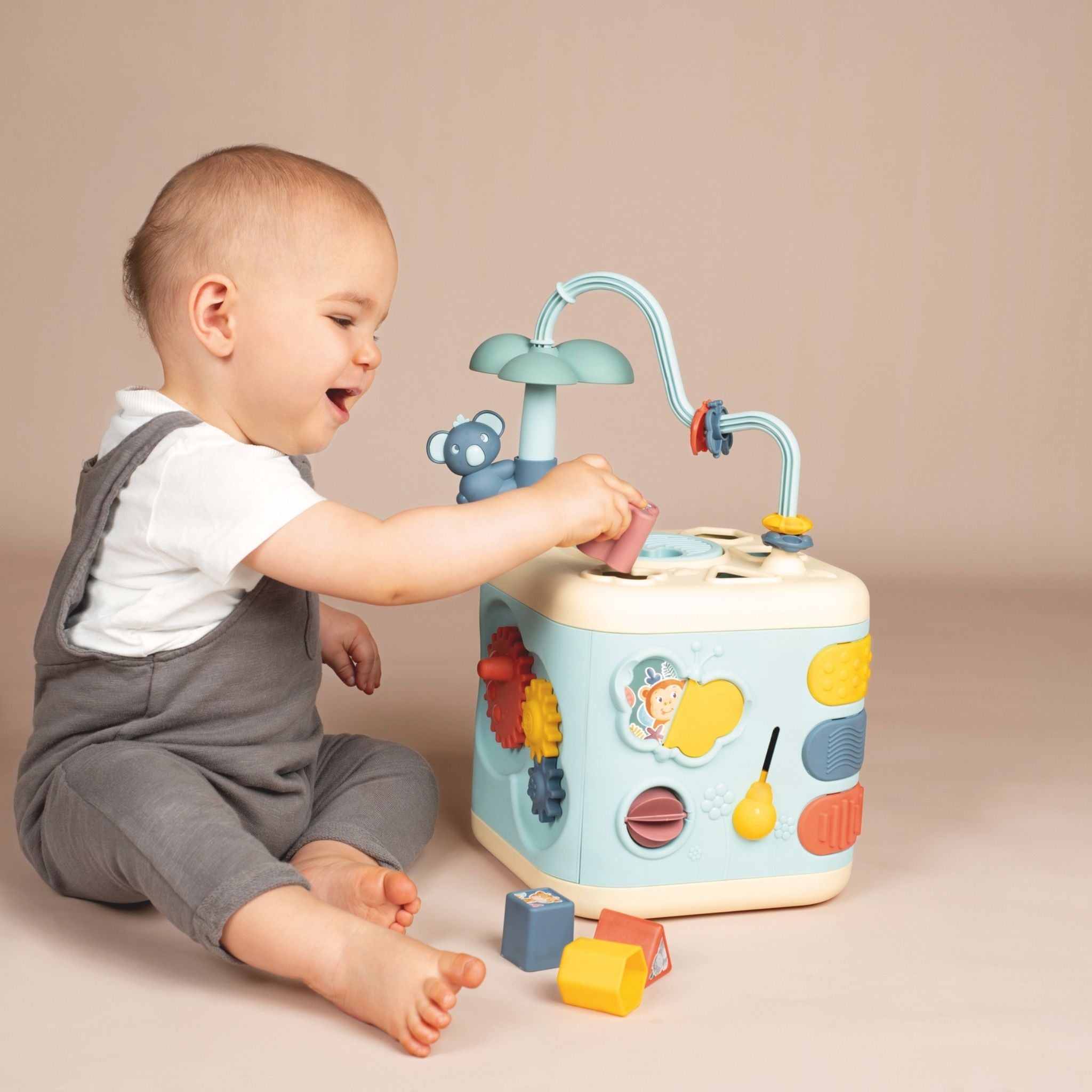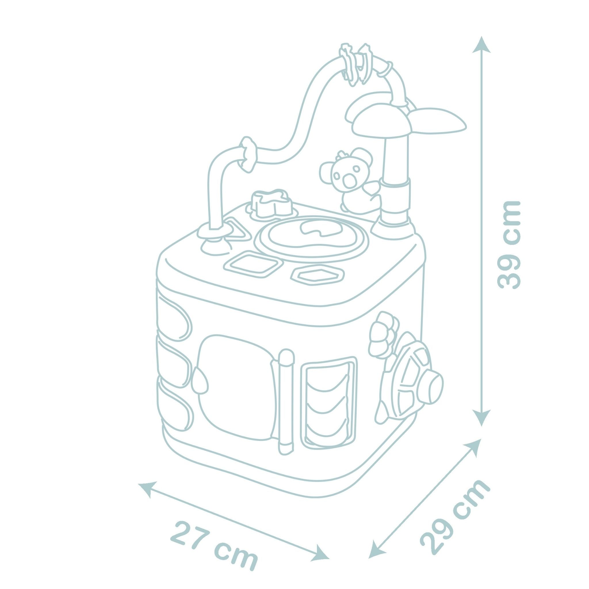 Little Smoby Keşif Küpü, bebeklerin motor becerilerini, dikkat gelişimini ve keşfetme duygusunu desteklemek için tasarlanmış çok yönlü bir aktivite oyuncağıdır. Beş farklı yüzeye sahip bu küp, çeşitli mekanik fonksiyonları sayesinde bebeklerin dokunma, kavrama, çevirme, sıralama ve keşfetme becerilerini güçlendirir. Her yüzeyde yer alan oyun aktiviteleri, hem eğitici hem de eğlenceli bir oyun deneyimi sunar. Küp üzerinde abaküs, dönebilen dişliler, kelebek şeklinde bir ayna, dokulu yüzeyler ve su çarkı benzeri hareketli parçalar bulunur. Ayrıca set, dört farklı şekil tanıma parçası içerir. Bebekler bu şekilleri uygun boşluklardan geçirerek hem el-göz koordinasyonunu hem de problem çözme becerilerini geliştirir. Kaplumbağa figürü, cric-crac ses çıkaran çiçek ve kabartma detaylar gibi özel dokunma aktiviteleri, duyusal gelişimi destekler. Dayanıklı yapısı sayesinde uzun yıllar güvenle kullanılabilir.