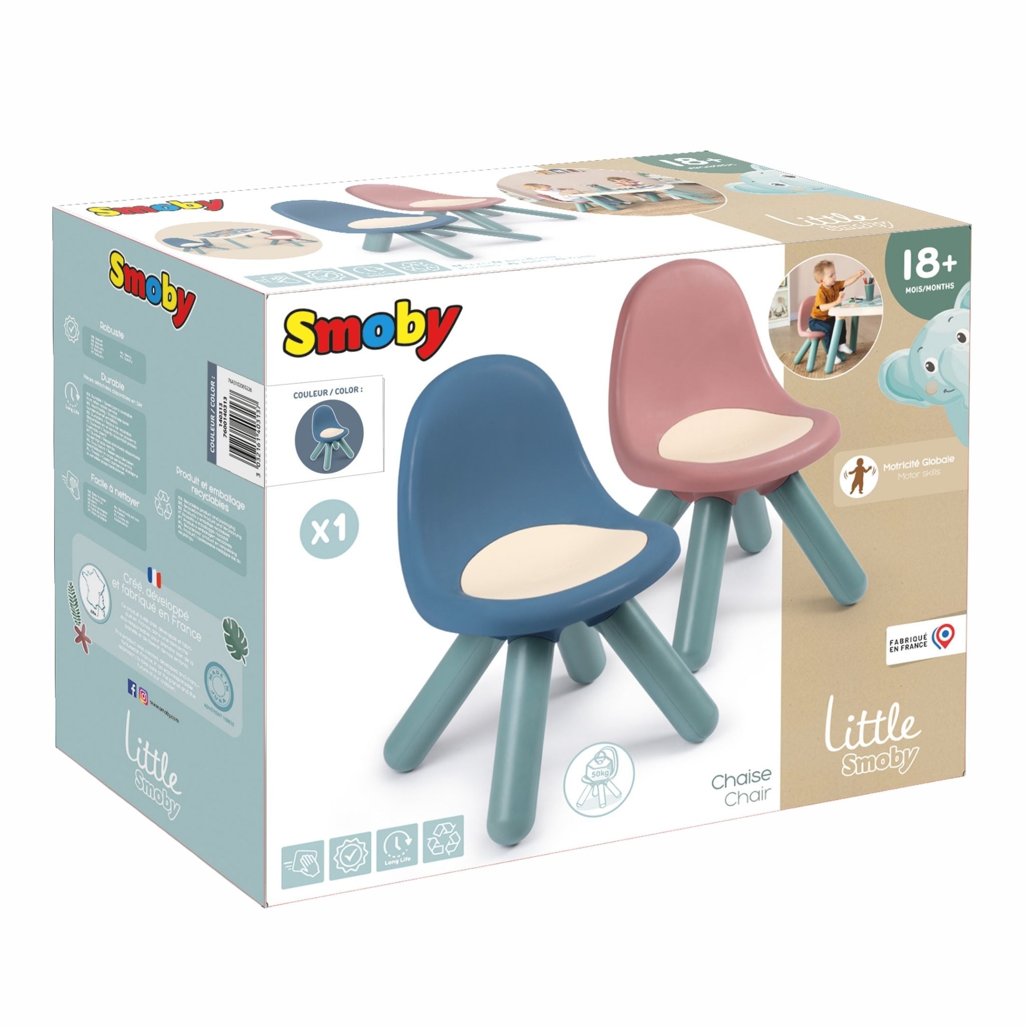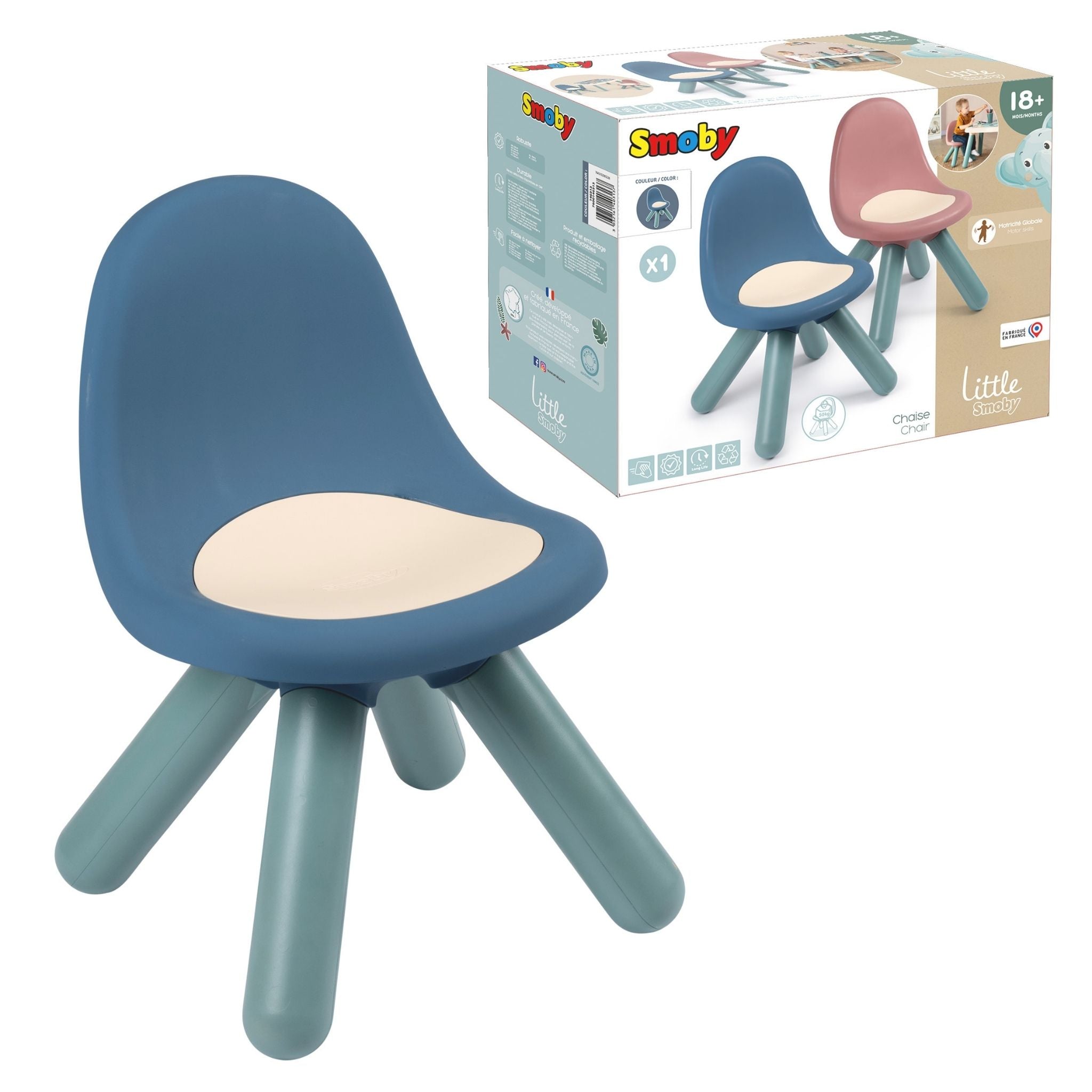 Smoby Lacivert Çocuk Sandalyesi, yeni yürümeye başlayan çocukların güvenli ve konforlu şekilde oturabilmesi için özel olarak tasarlanmış dayanıklı bir oturma çözümüdür. Ergonomik formu sayesinde çocukların sırtını doğru şekilde destekler ve uzun süreli kullanımlarda bile rahat bir oturuş sunar. Modern ve yumuşak renk tonu ile her türlü iç mekana uyum sağlayan ürün, hem oyun alanlarında hem çocuk odalarında hem de salon kullanımında estetik bir görünüm oluşturur. Sandalye Anti UV özelliğine sahiptir; bu sayede güneşe maruz kalsa bile rengini kaybetmez ve dış mekan kullanımlarında da dayanıklılığını korur. Sağlam yapısı sayesinde 50 kg’a kadar ağırlık taşıyabilir. Hafif gövde tasarımı ise çocukların sandalyeyi kolayca taşıyabilmesini ve istedikleri alana çekebilmesini sağlar. Yüksek kaliteli ve güvenli malzemeler kullanılarak Fransa’da üretilmiştir. 18 ay ve üzeri çocuklar için ideal bir oturma desteğidir.
