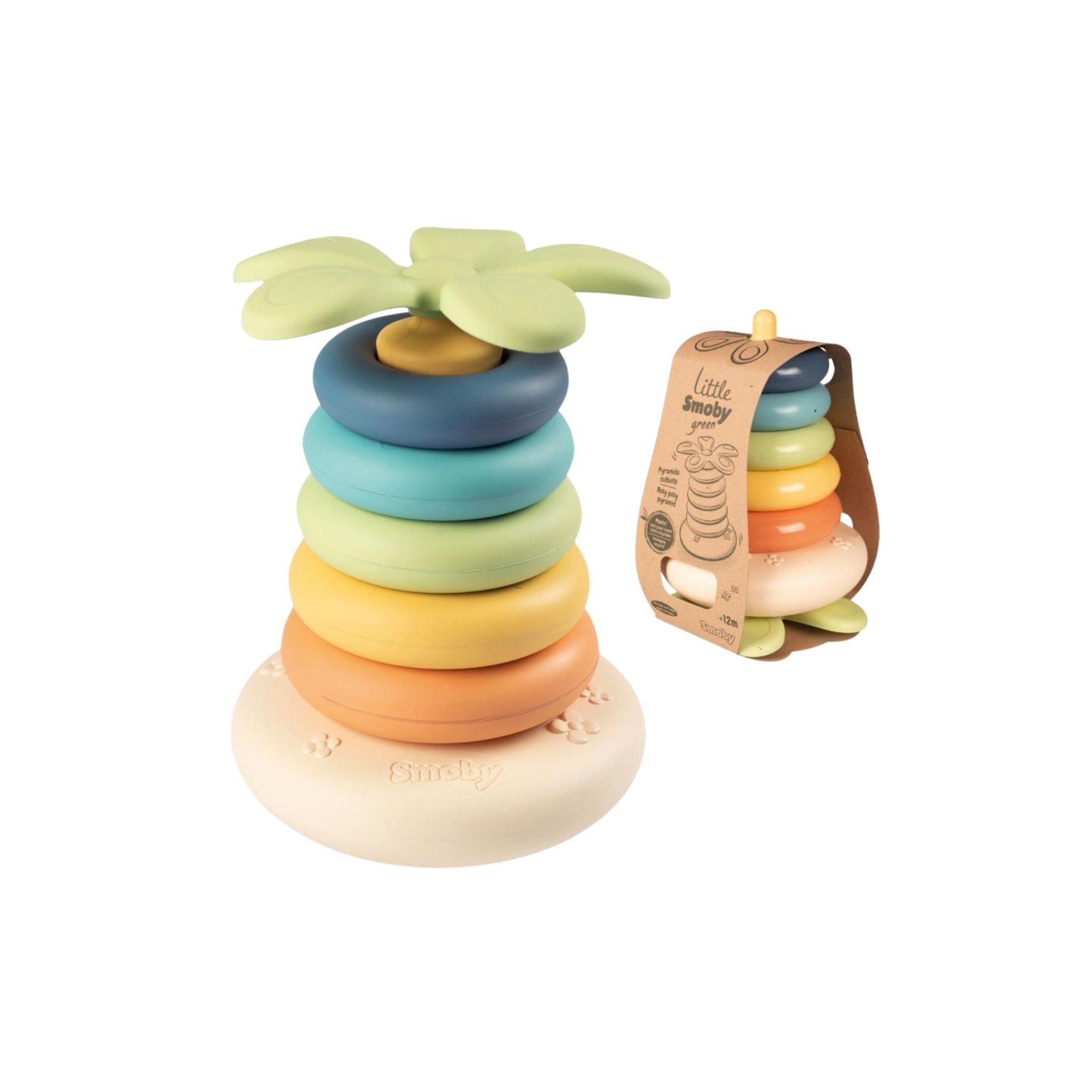 Little Smoby Halka Geçirmece Piramit Oyuncağı, bebeklerin hem eğlenirken hem de el-göz koordinasyonlarını geliştirmelerine yardımcı olan klasik bir eğitim oyuncağıdır. Çevre dostu özel malzemeden üretilen bu piramit, sürdürülebilir yapısıyla da dikkat çeker. Modern ve yumuşak renk tonlarıyla tasarlanan halka geçirme oyunu, çocuklara renkleri tanıma, sıralama ve motor becerilerini geliştirme imkânı sunar. Sallanan tabanı ve üst kısmındaki dönebilen çiçek detayı, oyuna ek eğlence katar.