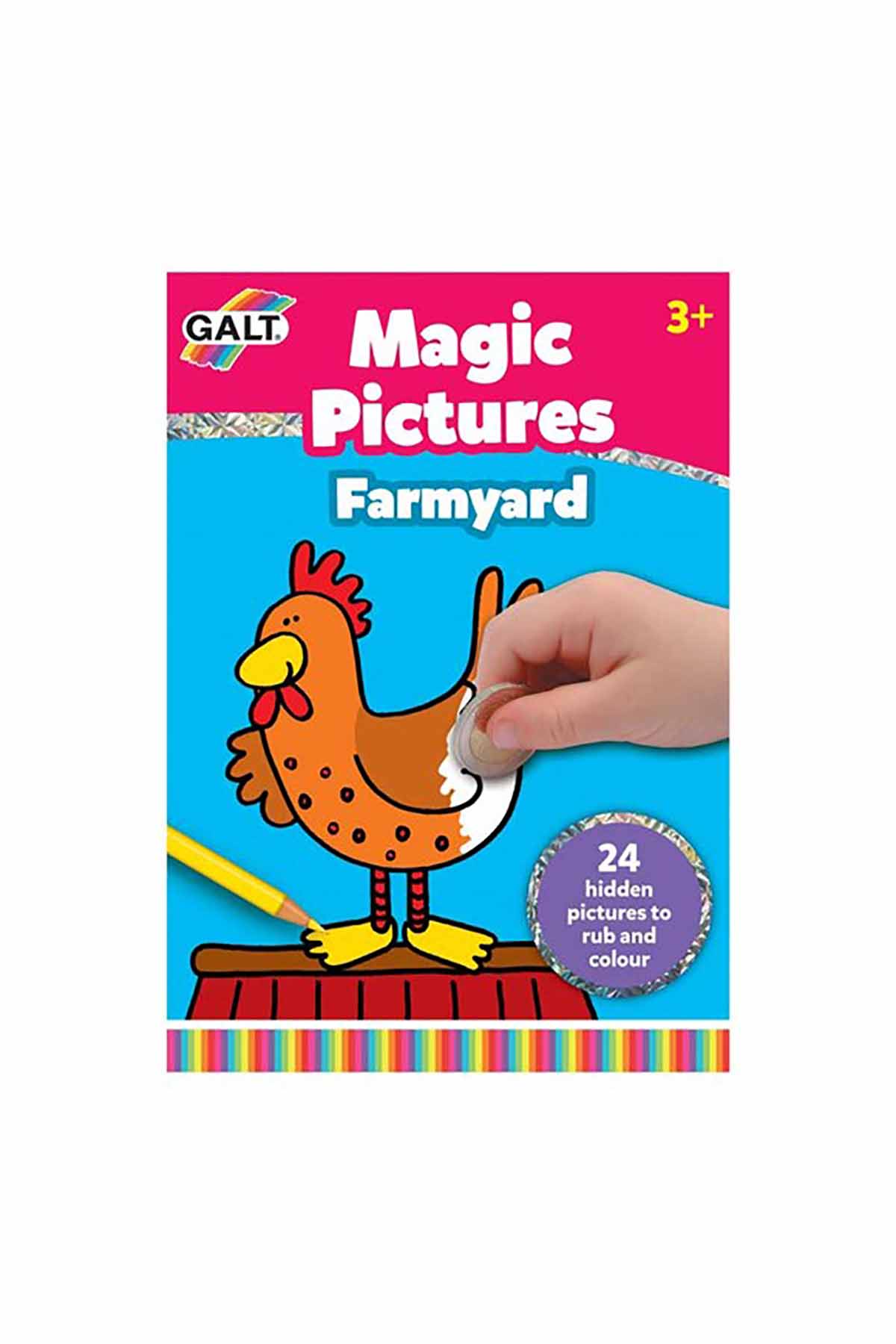 Galt Sihirli Resimler Çiftlik kitabı, çocukların keşfetme ve boyama becerilerini geliştirmesi için özel olarak tasarlanmıştır. Madeni para ile sayfalara sürtüldüğünde gizli resimler ortaya çıkar ve daha sonra boyanabilir.