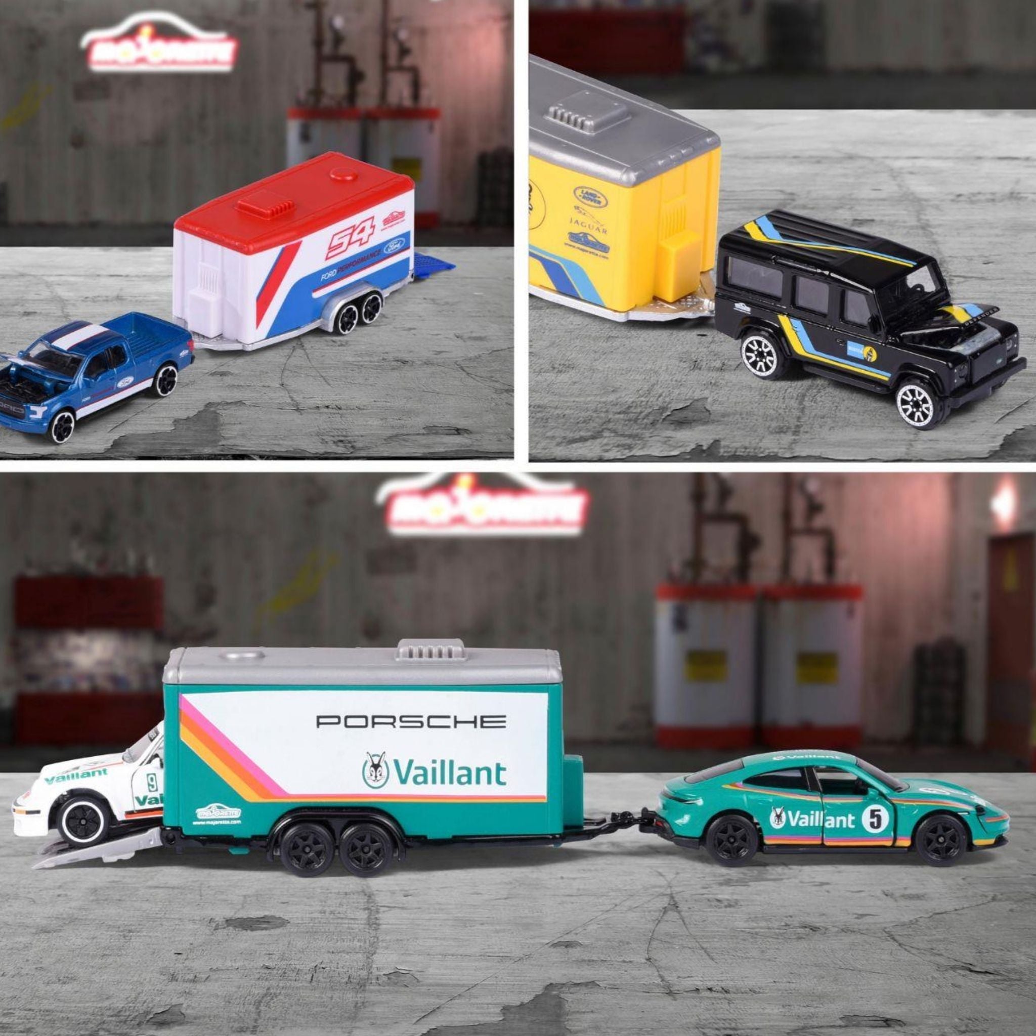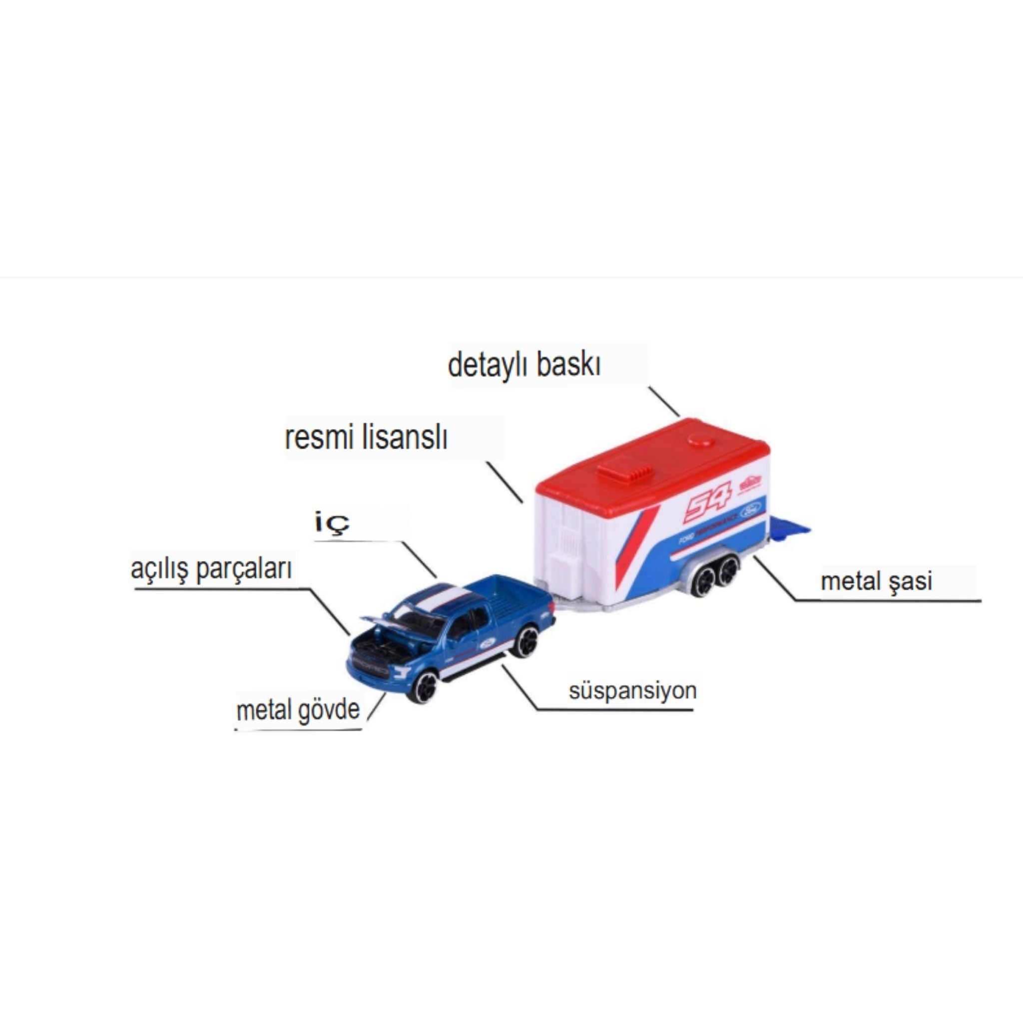 Majorette Yarış Römorku Seti, otomobil tutkunları ve koleksiyon sever çocuklar için tasarlanmış, yüksek kaliteli Die-Cast (metal) araç setidir. Her biri lisanslı tasarıma sahip olan bu set, serbest tekerlek sistemi, açılabilir parçalar ve hareketli römork mekanizması ile gerçekçi bir oyun deneyimi sunar. Set, toplamda 4 farklı asortiden oluşur ve her biri özenle modellenmiş iki araçtan meydana gelir: biri çekici, diğeri yarış aracı. Çocuklar bu setle hem eğlenceli oyunlar oynayabilir hem de yarış heyecanını kendi dünyalarına taşıyabilirler. Gerçek markalardan alınan lisanslı tasarımlar, Majorette kalitesiyle birleşerek koleksiyonluk bir değere dönüşür.