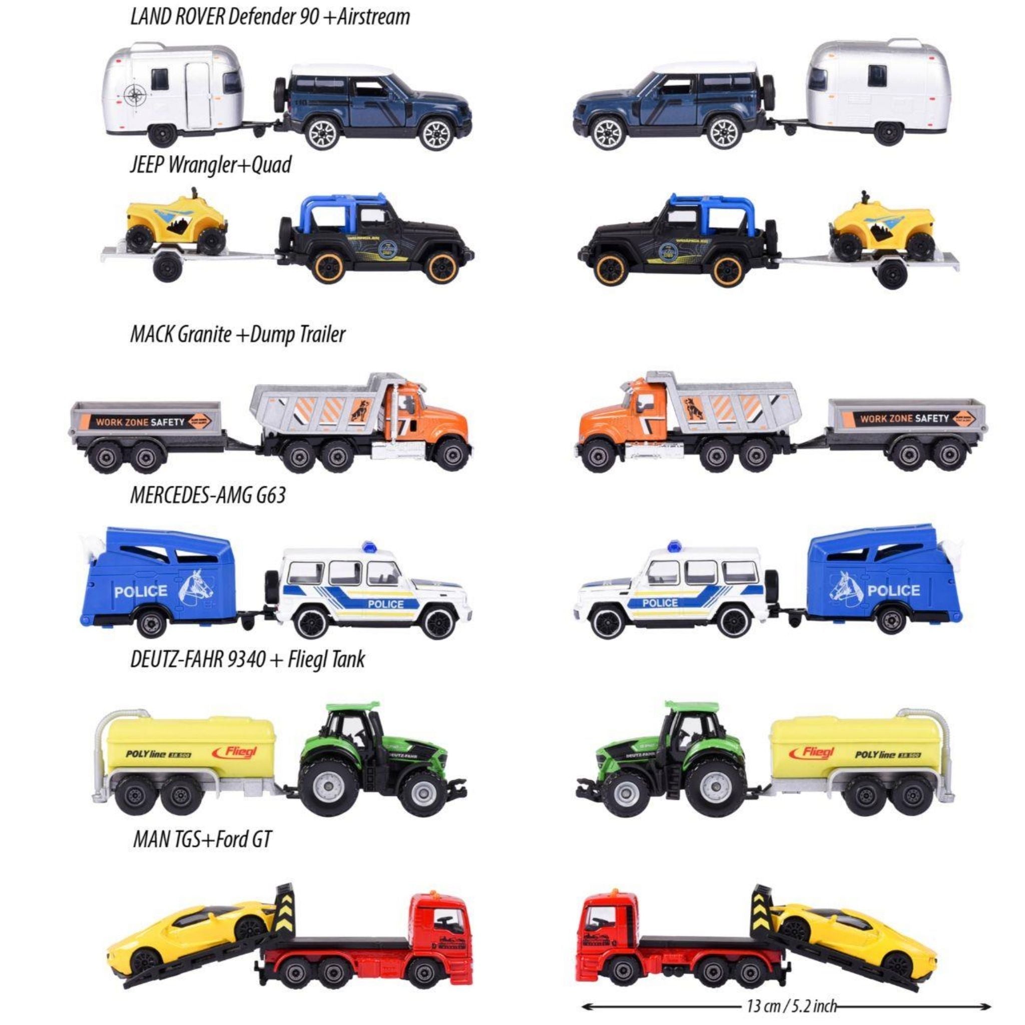 Gerçekçi tasarımı ve detaylı işçiliğiyle Majorette Römorklu Araçlar Serisi, küçük araç severlere hem eğlenceli hem de koleksiyonluk bir deneyim sunuyor. Her bir model, die-cast (metal) gövdeye, hareketli parçalara ve çıkarılabilir römork tasarımına sahiptir. Bu özellikleri sayesinde hem oyun hem de koleksiyon tutkunları için uzun ömürlü bir kullanım sağlar. Serideki modeller, Mercedes-Benz, Jeep, Deutz ve MAN gibi dünya çapında tanınmış markaların resmi lisanslı minyatür versiyonlarıdır. Gerçek araçların tasarımına sadık kalınarak üretilen bu modeller, hem görünüm hem de fonksiyon açısından yüksek kalite sunar.