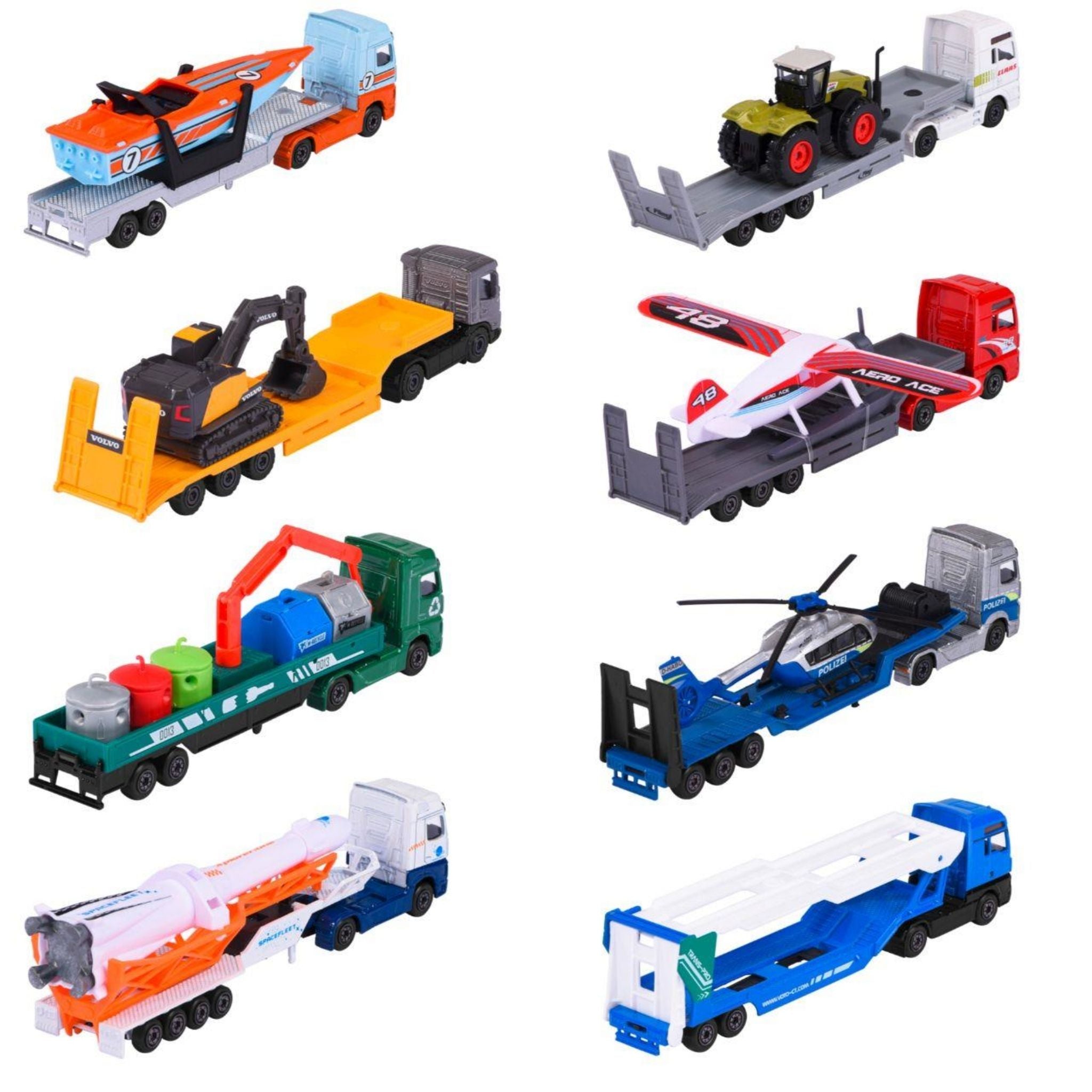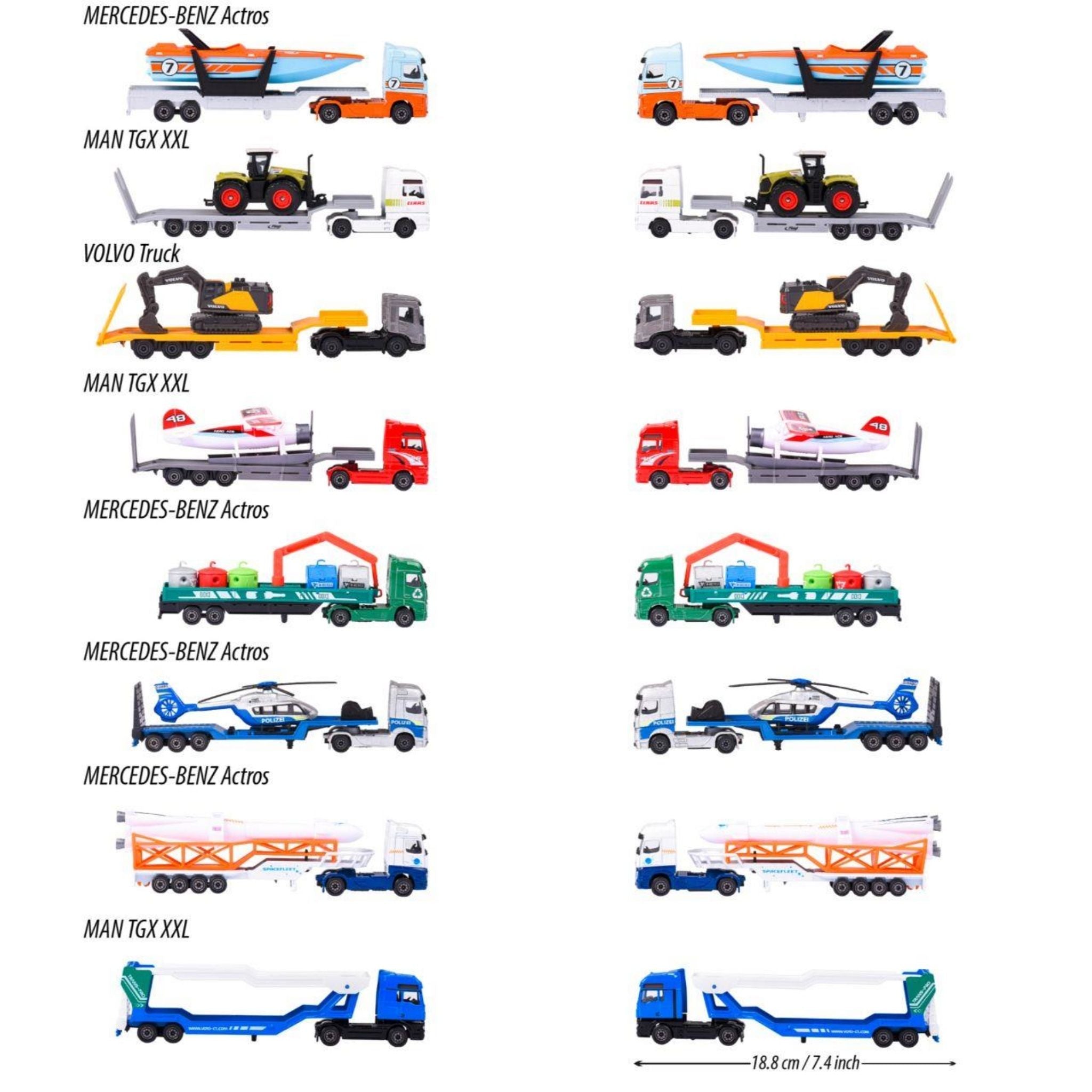 Majorette'nin yüksek kaliteli taşıyıcı serisiyle çocuklar, büyük yük taşıma operasyonlarını yönetmeye hazır! 20 cm uzunluğundaki bu etkileyici mafsallı kamyonlar ve juggernaut taşıyıcılar, farklı yük türleriyle birlikte sunularak oyuna gerçekçilik katıyor. Set içerisindeki modeller arasında helikopter taşıyıcılar, tekne nakliye araçları, şişe bankası taşıyan kamyonlar ve araba taşıyıcıları gibi birçok farklı seçenek bulunur. Dayanıklı metal gövde yapısı ve hareketli parçaları sayesinde her araç, hem dayanıklılık hem de işlevsellik sunar. Minik ellerin kolaylıkla kavrayabileceği ergonomik tasarımıyla oyun saatleri daha eğlenceli ve güvenli hale gelir. Araçlar, detaylı tasarımlarıyla yalnızca oyun değil, koleksiyon tutkunları için de harika bir seçimdir. Minik nakliyecilerin büyük hayalleri için tasarlanan Majorette taşıyıcı serisi, gerçek dünyayı oyun alanına taşıyor!