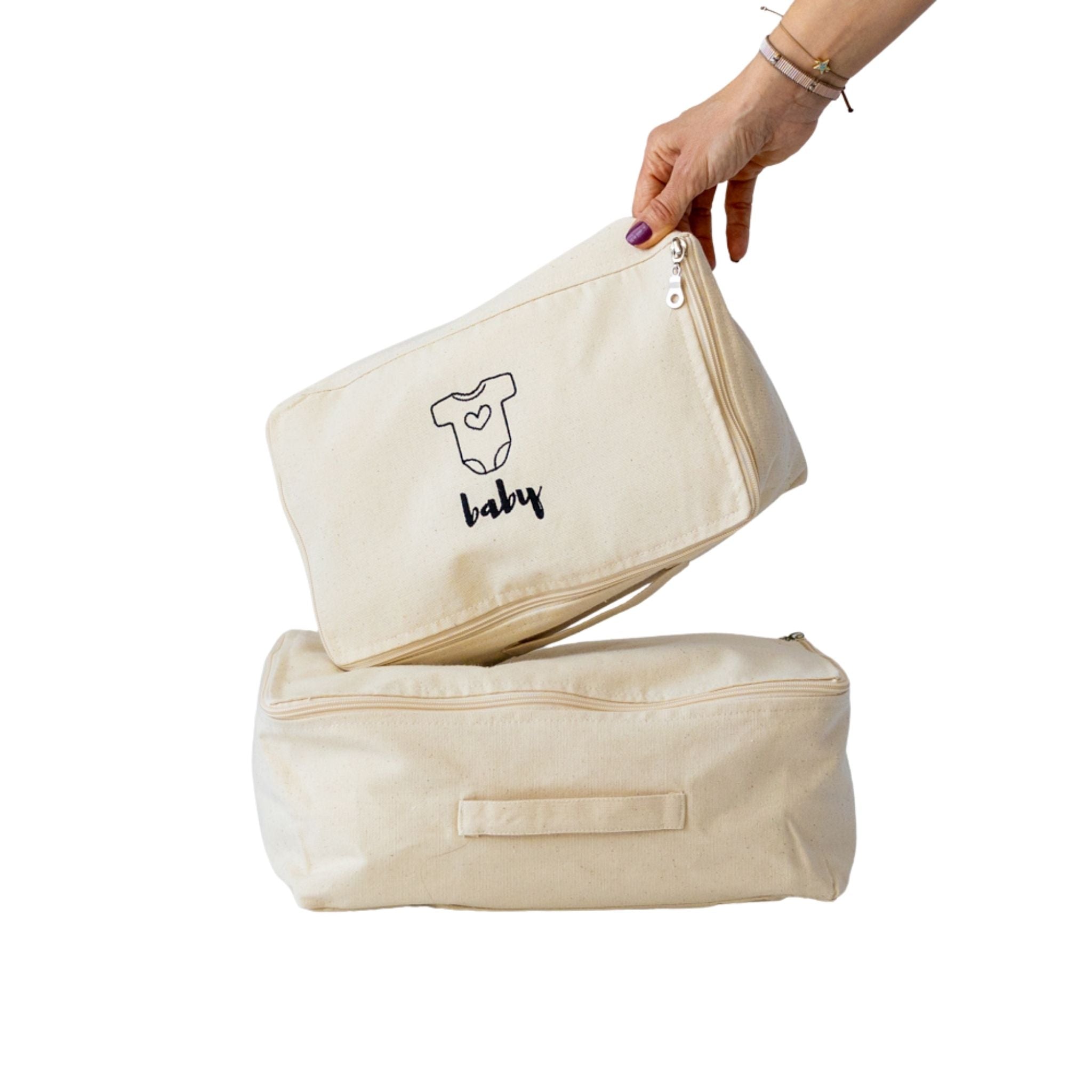 Mom Baby'nin nakışlı kanvas hurç seti, valiz içinde düzeni sağlamak isteyen anne ve babalar için özel olarak tasarlandı. Dayanıklı ve kaliteli kanvas kumaştan üretilen bu organizer set, sık seyahat eden ailelerin tüm ihtiyaçlarını karşılamak üzere uzun ömürlü kullanım sunar. Mom&Baby İkili Valiz İçi Düzenleyici Hurç Seti ile seyahatleriniz artık daha düzenli, pratik ve şık! Siz de bu organize setle yolculuk deneyiminizi kolaylaştırın.