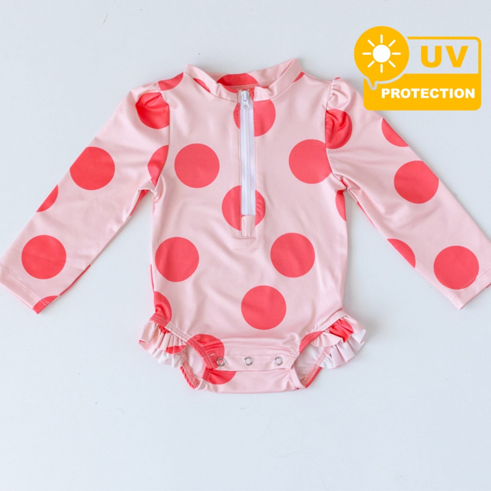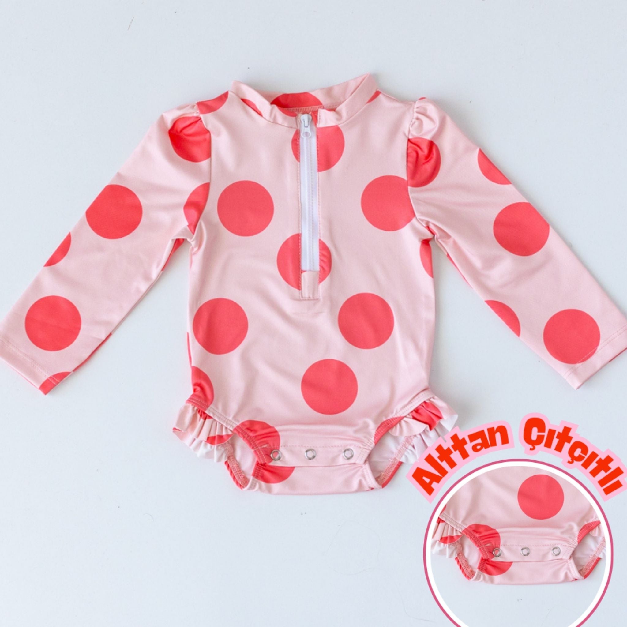 Yaz aylarının en eğlenceli desenlerinden biri olan büyük puantiyeler, Mama Yoyo’nun bu özel tasarımıyla bebek mayolarında hayat buluyor! Şıklığı ve konforu bir araya getiren Mama Yoyo büyük puantiye desenli mayo, bebeklerin cildini korurken stil sahibi bir görünüm sunar. Geniş puantiye desenleriyle göz alıcı bir tasarıma sahip olan bu mayo, %100 su itici özellikteki özel polyester kumaştan üretilmiştir. Uzun kollu yapısı ve yüksek koruma sağlayan UPF özellikli dokusuyla, bebeğinizi zararlı güneş ışınlarına karşı etkili biçimde korur. Pratik ön fermuarı sayesinde kolayca giydirilip çıkarılabilirken, alttan çıtçıtlı yapısıyla alt değiştirme işlemlerinde kullanım kolaylığı sağlar. Yumuşak dokusu ve esnek yapısı, hareket özgürlüğü sunarak bebeğinize konforlu bir yaz deneyimi kazandırır. Mama Yoyo puantiyeli mayo ile bebeğinizin yaz tatiline eğlence, koruma ve stil katın! Güneşin keyfini gönül rahatlığıyla çıkarın.