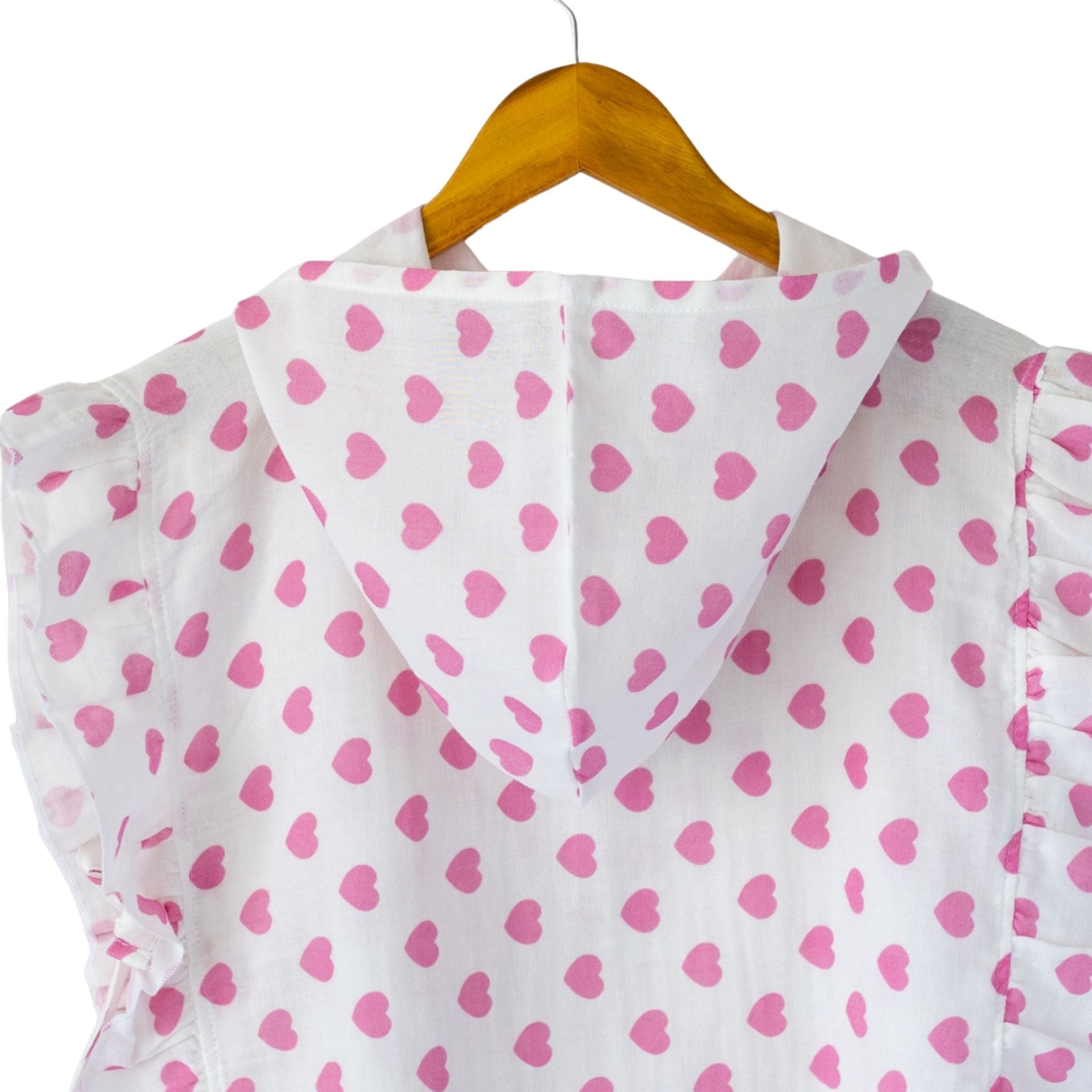Mama Yoyo fırfırlı kalp desenli müslin panço, yaz mevsiminde çocuklarınızın rahatlığı ve korunması için özel olarak tasarlanmıştır. %100 pamuklu 4 kat müslin kumaştan üretilen bu panço, yumuşak dokusu ve nefes alabilen yapısıyla bebek ve çocuk cildine nazik davranır. Fırfır detayları ise şıklığı tamamlar, sevimli kalp deseniyle yaz stillerine zarif bir dokunuş katar. Plajda, havuz sonrası ya da banyo sonrasında pratik bir şekilde kullanılabilen bu müslin panço, yüksek emiciliği sayesinde çocukları hızla kurular. Kapüşonlu yapısı, baş ve omuz bölgesini koruyarak tam bir kullanım kolaylığı sunar. Hafif yapısı sayesinde çantada taşınması son derece kolaydır. Mama Yoyo kalp desenli müslin panço, annelerin çanta hazırlığında ilk tercih edeceği pratik, şık ve fonksiyonel bir üründür. Çocuğunuzun konforu ve tarzı bir arada!